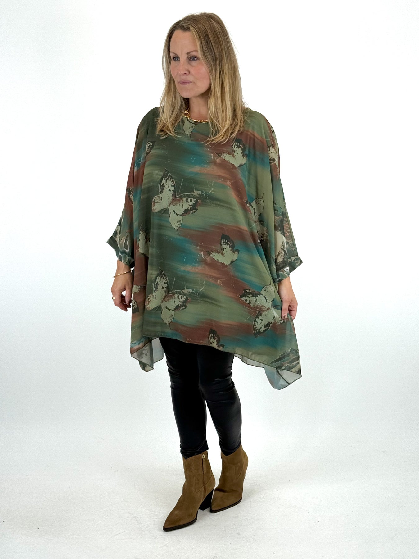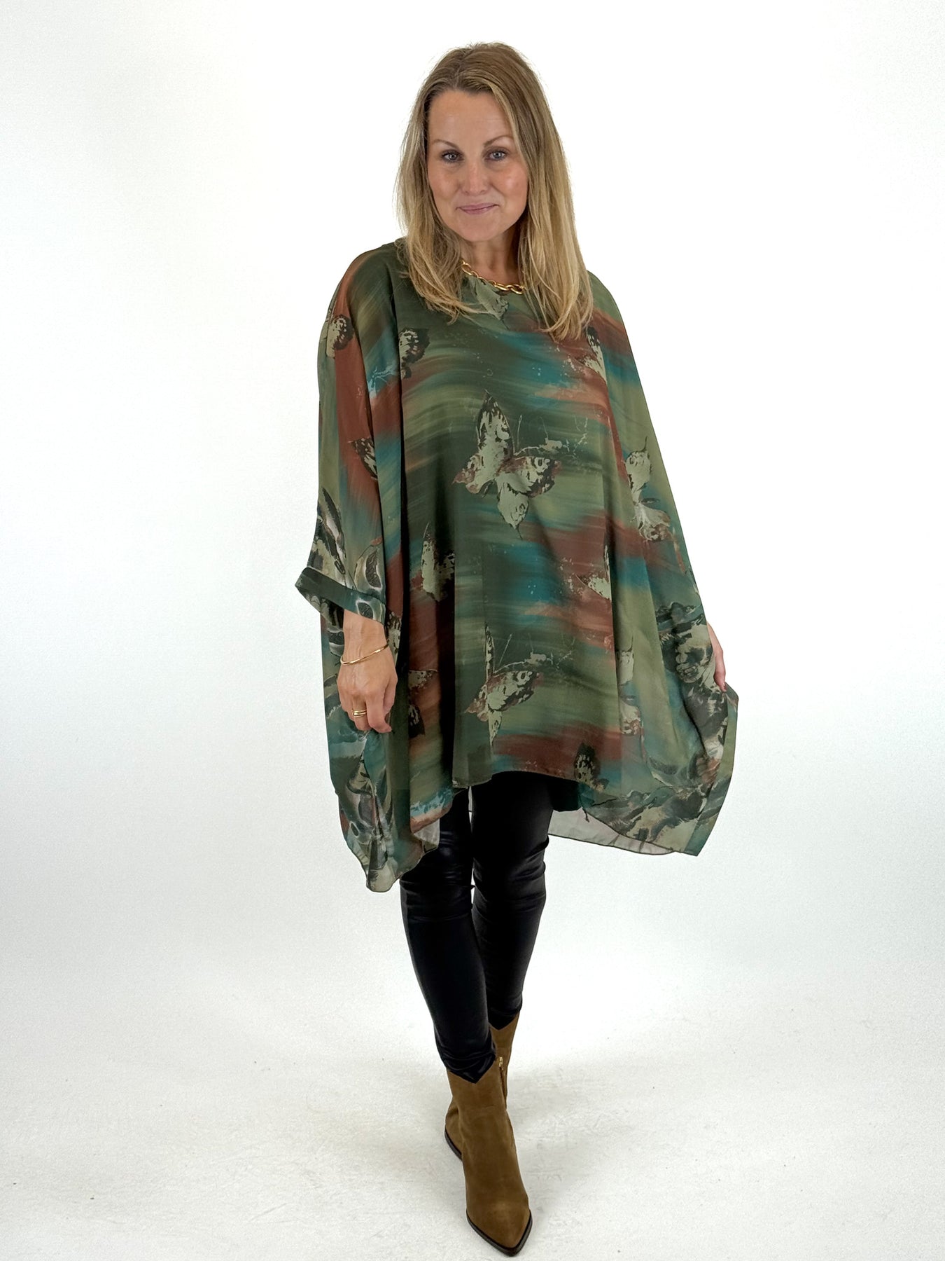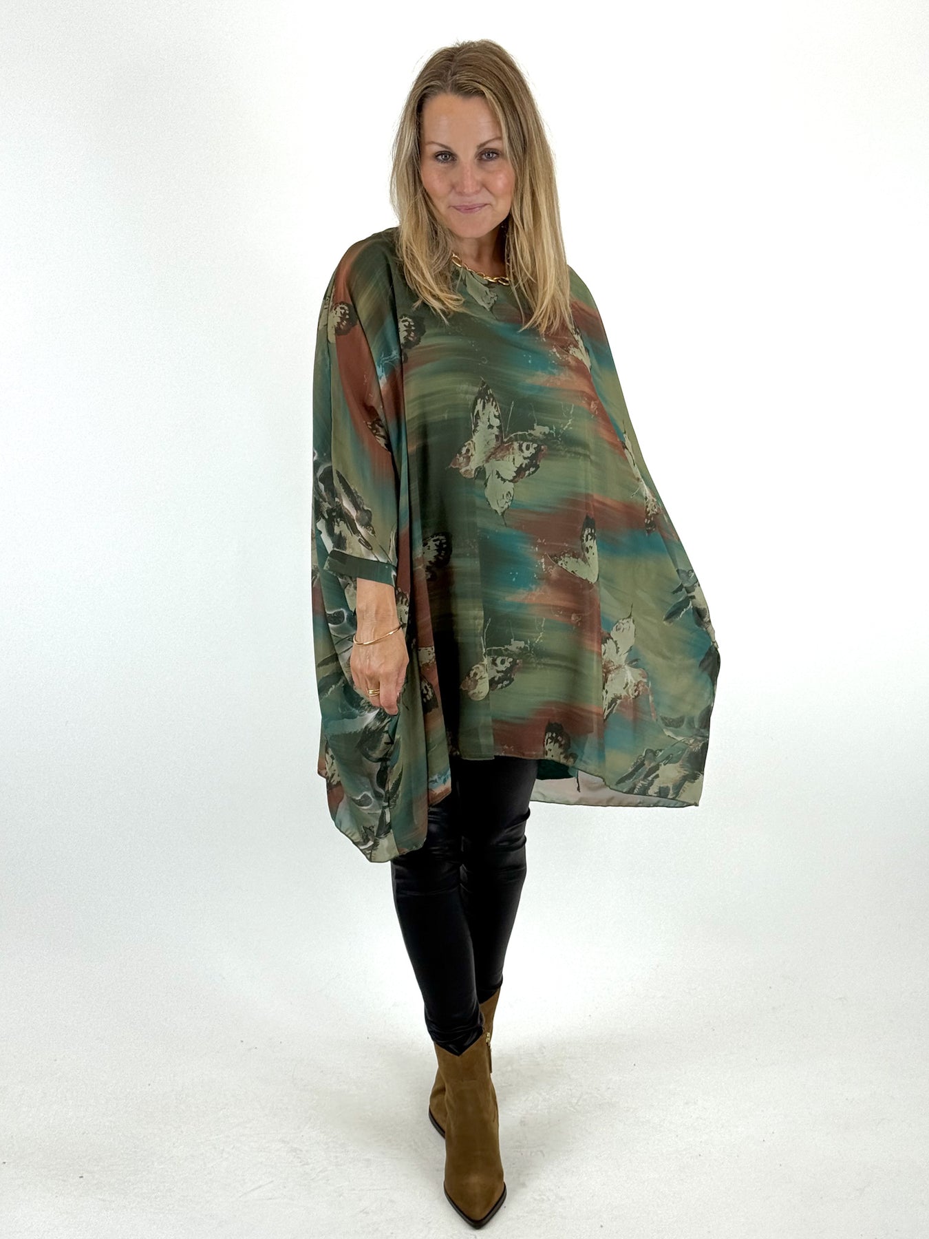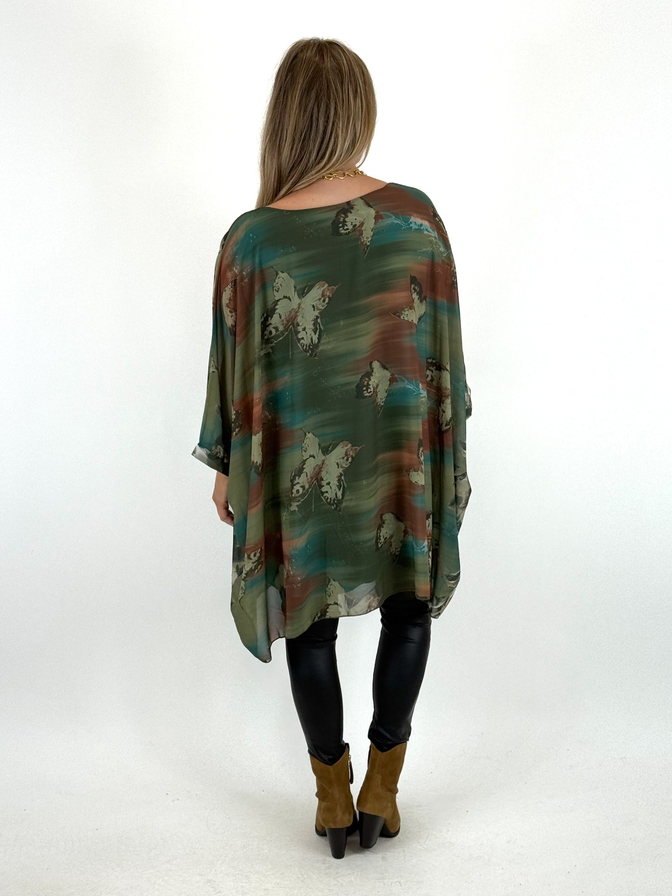 - Made in Italy Lagenlook Free Spirit Butterfly Top in Forest Green. code 1071