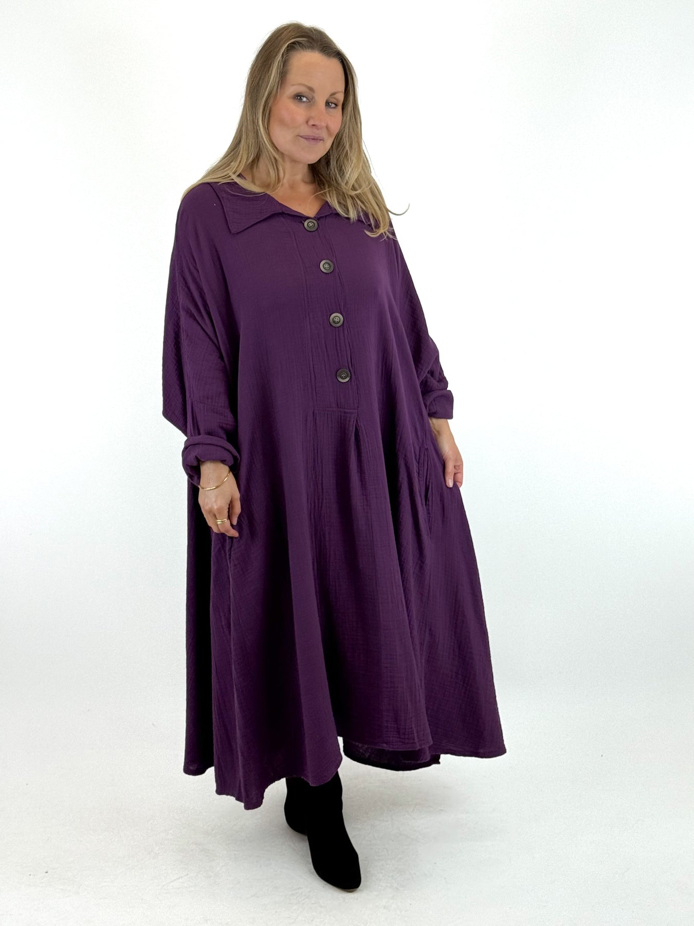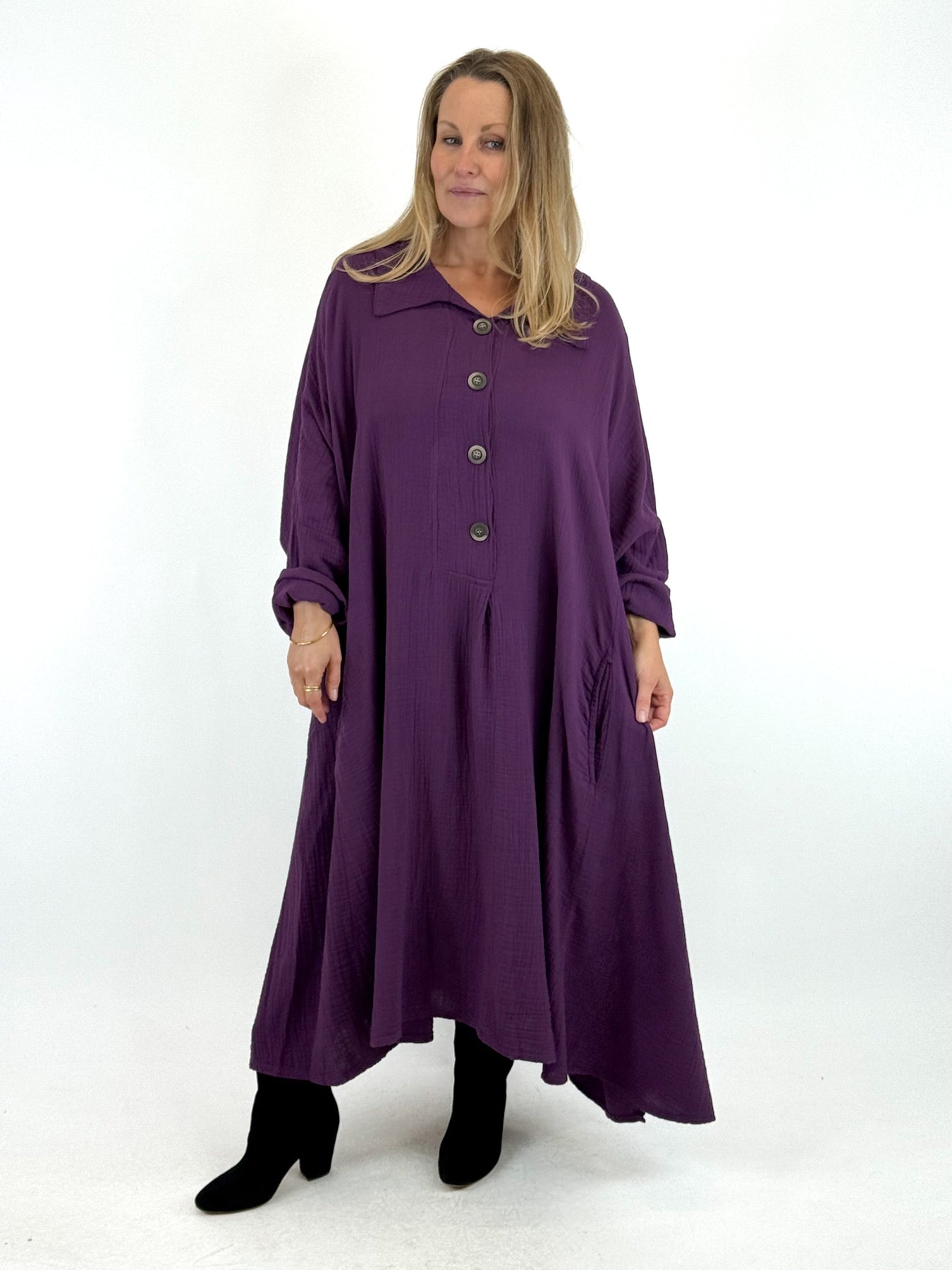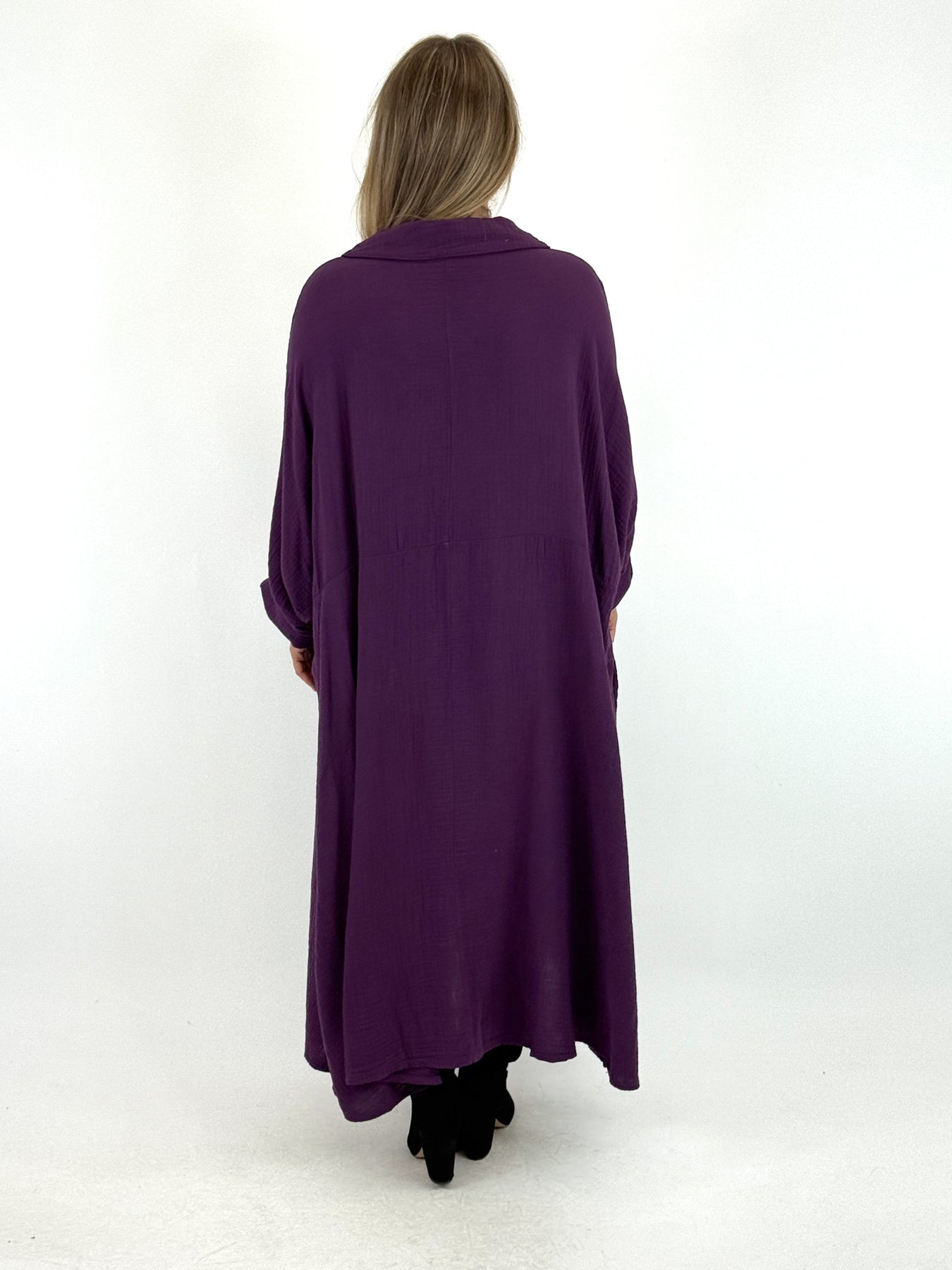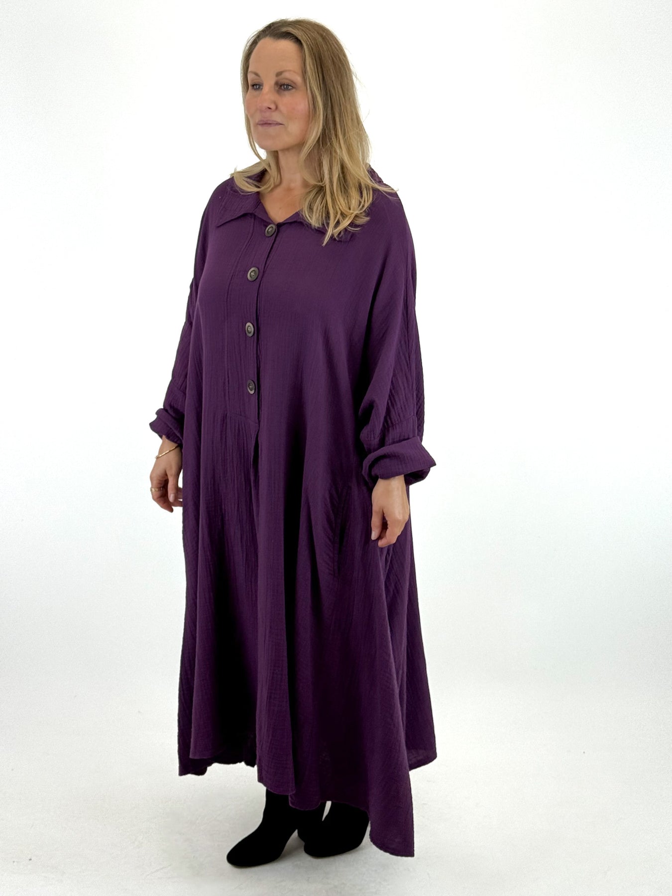 - Made in Italy Lagenlook Lester Cotton Crinkle Shirt in Plum. 92121