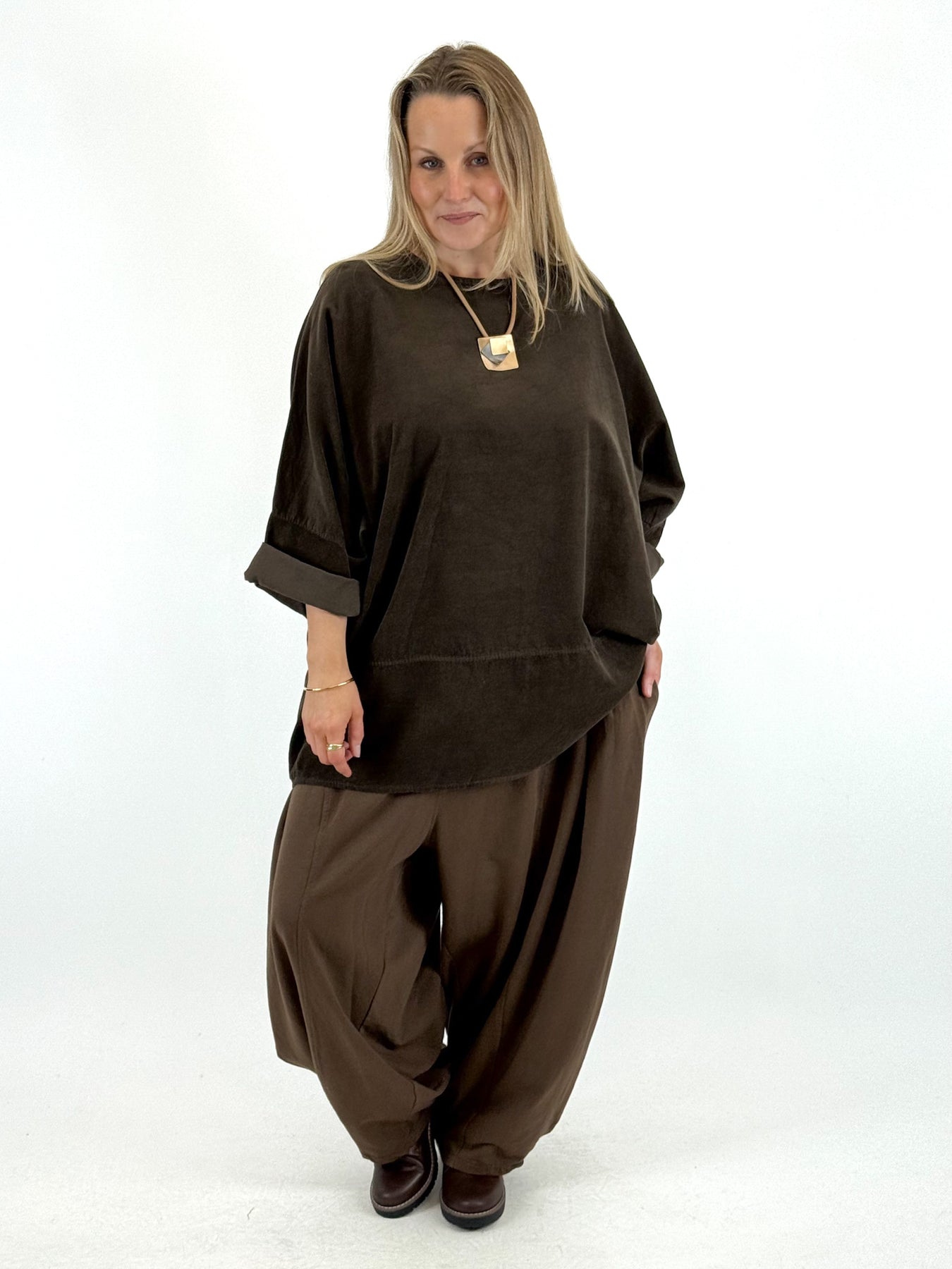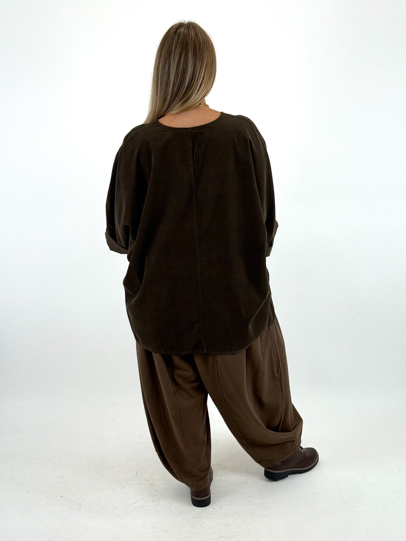 Made in Italy Lagenlook Morgan Corduroy Top Dark Chocolate. 58487