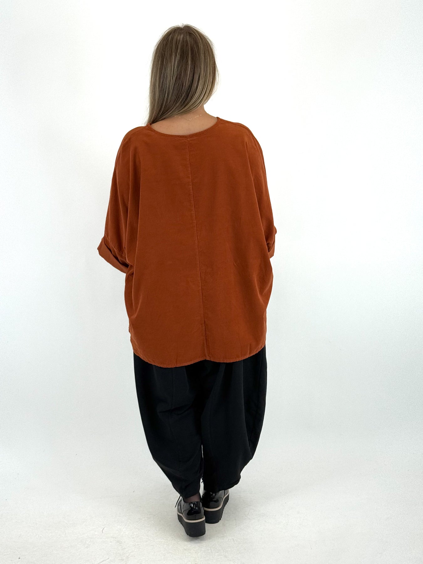 Made in Italy Lagenlook Morgan Corduroy Top Rust. 58487