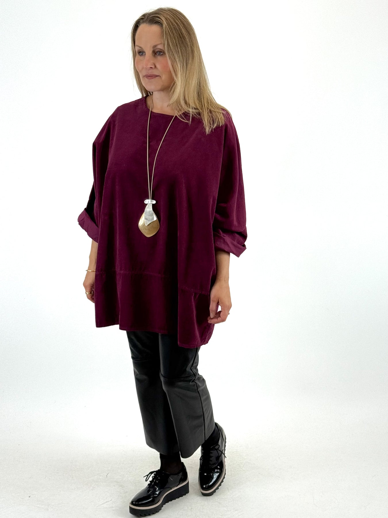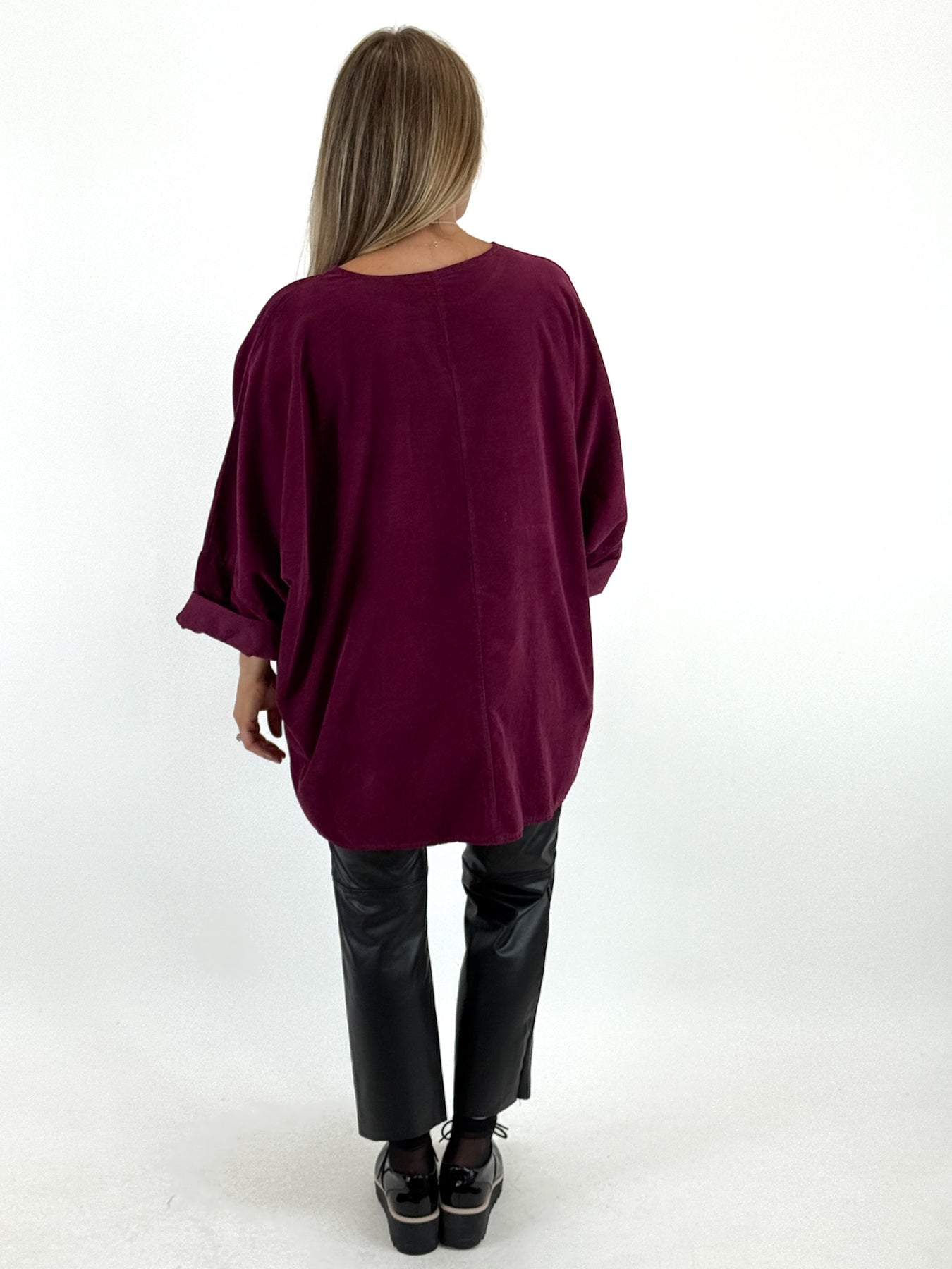 Made in Italy Lagenlook Morgan Corduroy Top Wine. 58487