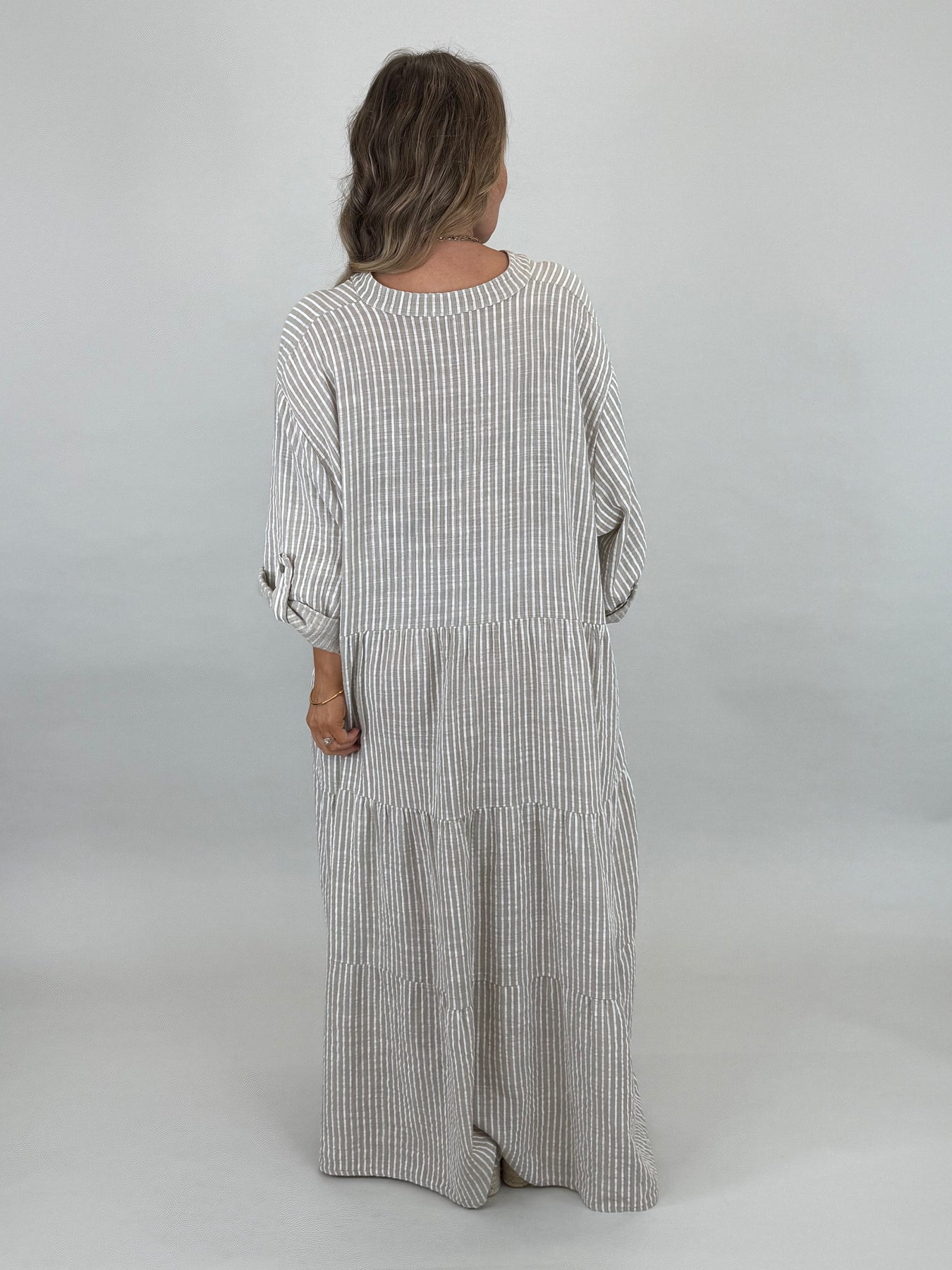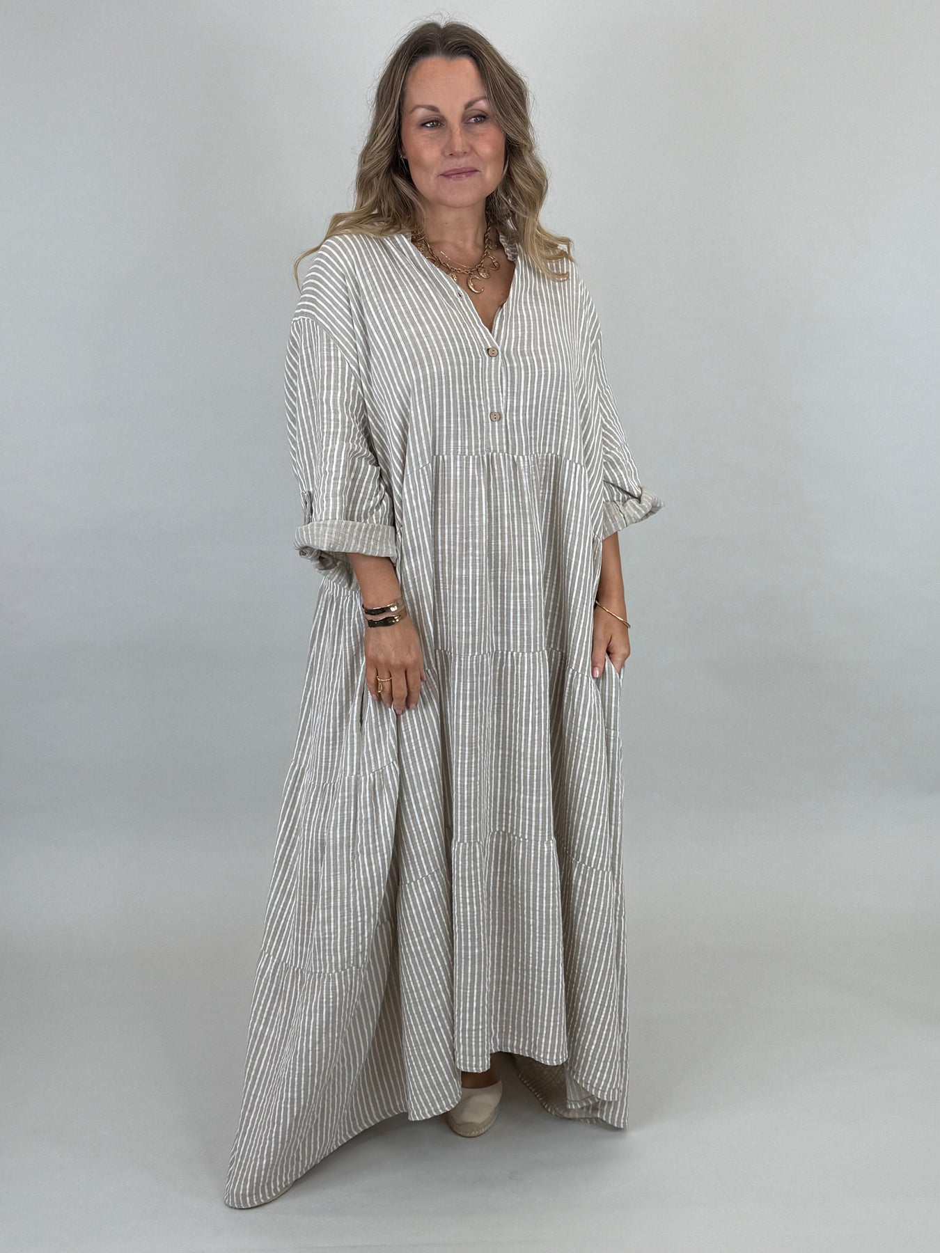 Made in italy Lagenlook Sarita Stripe Cotton Dress |Cotswold Cream