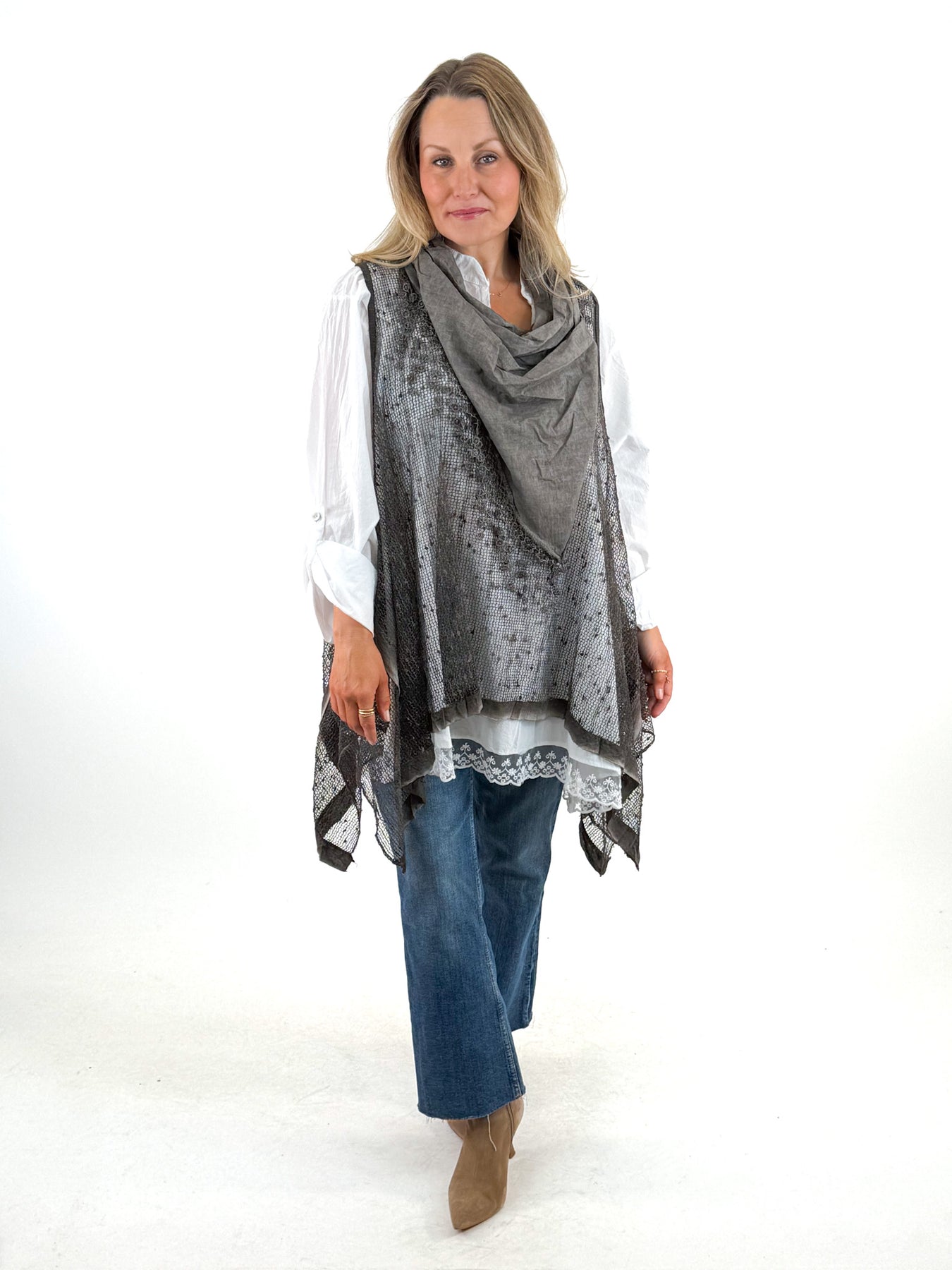 - Our beautiful Made In Italy Scarf Popcorn Bib Shirt comb is a must have easy go to for day or night.