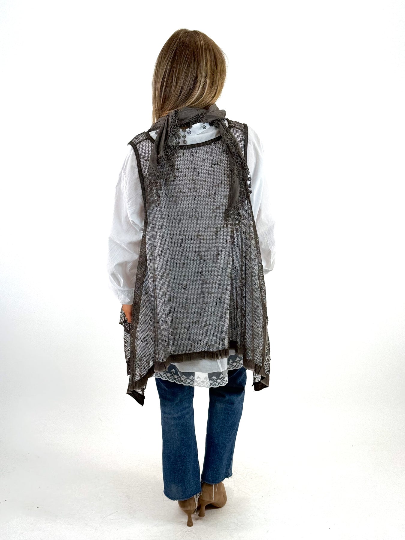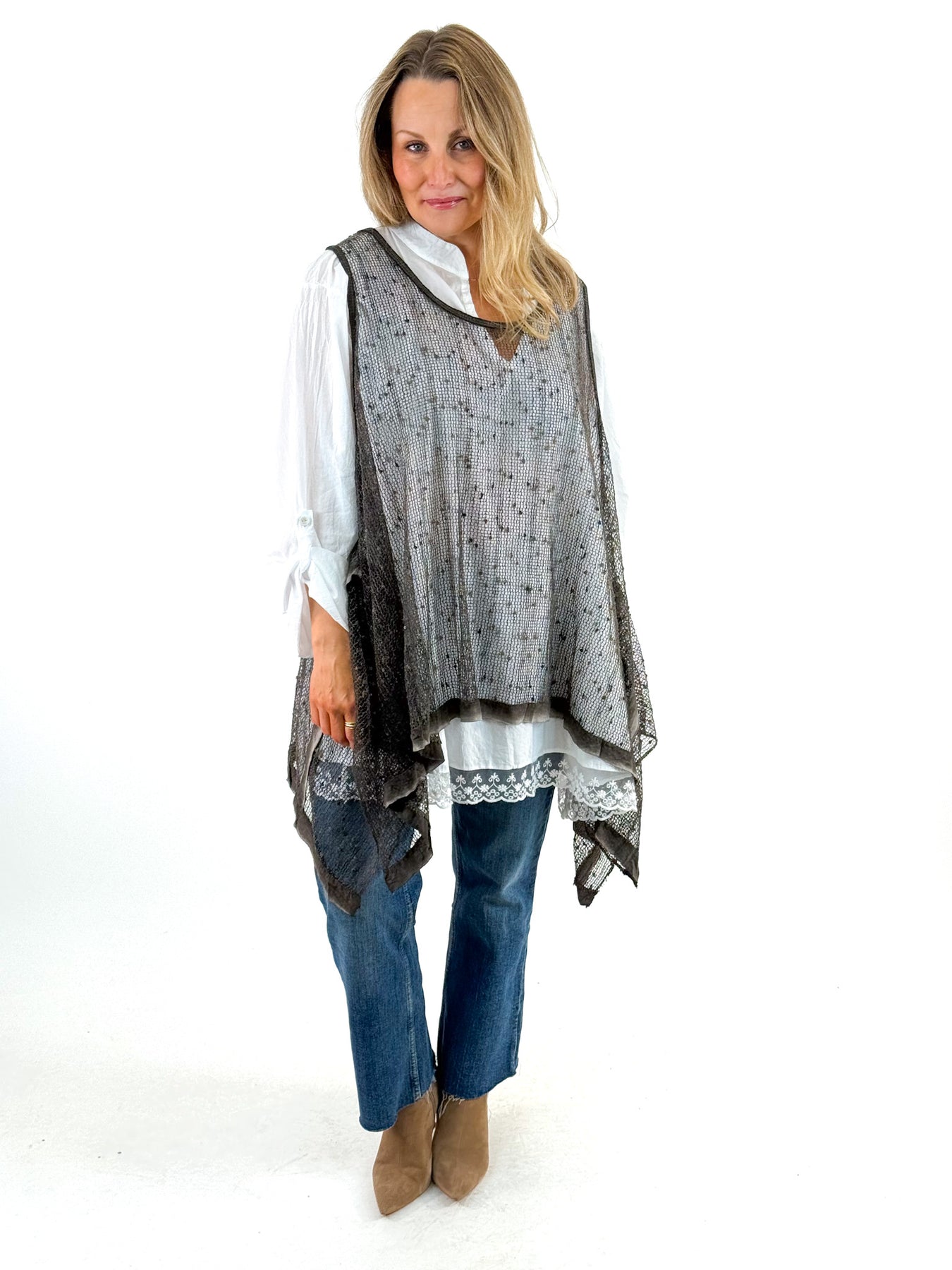 - Made in Italy Lagenlook Scarf Popcorn Shirt Top in Brown. 7990