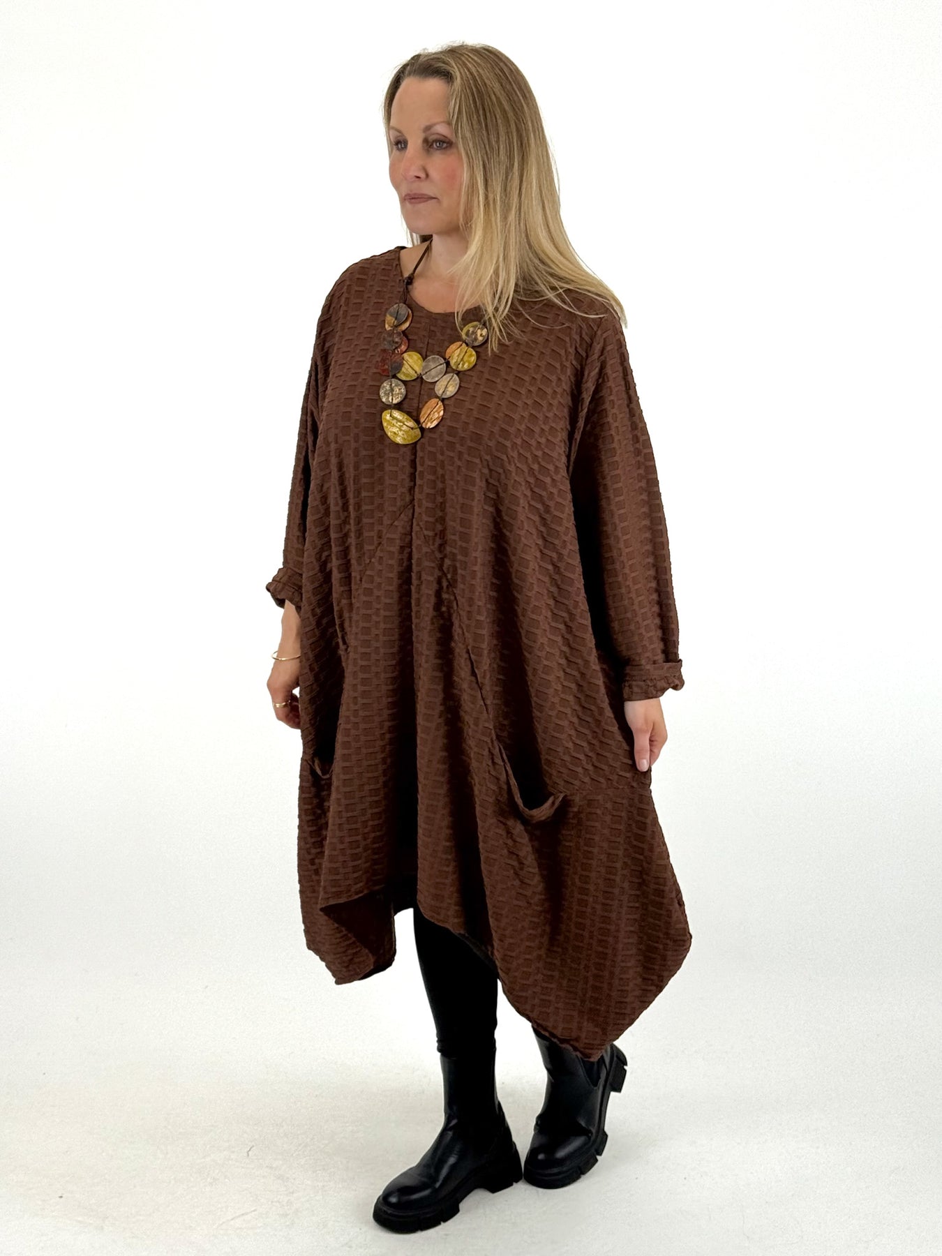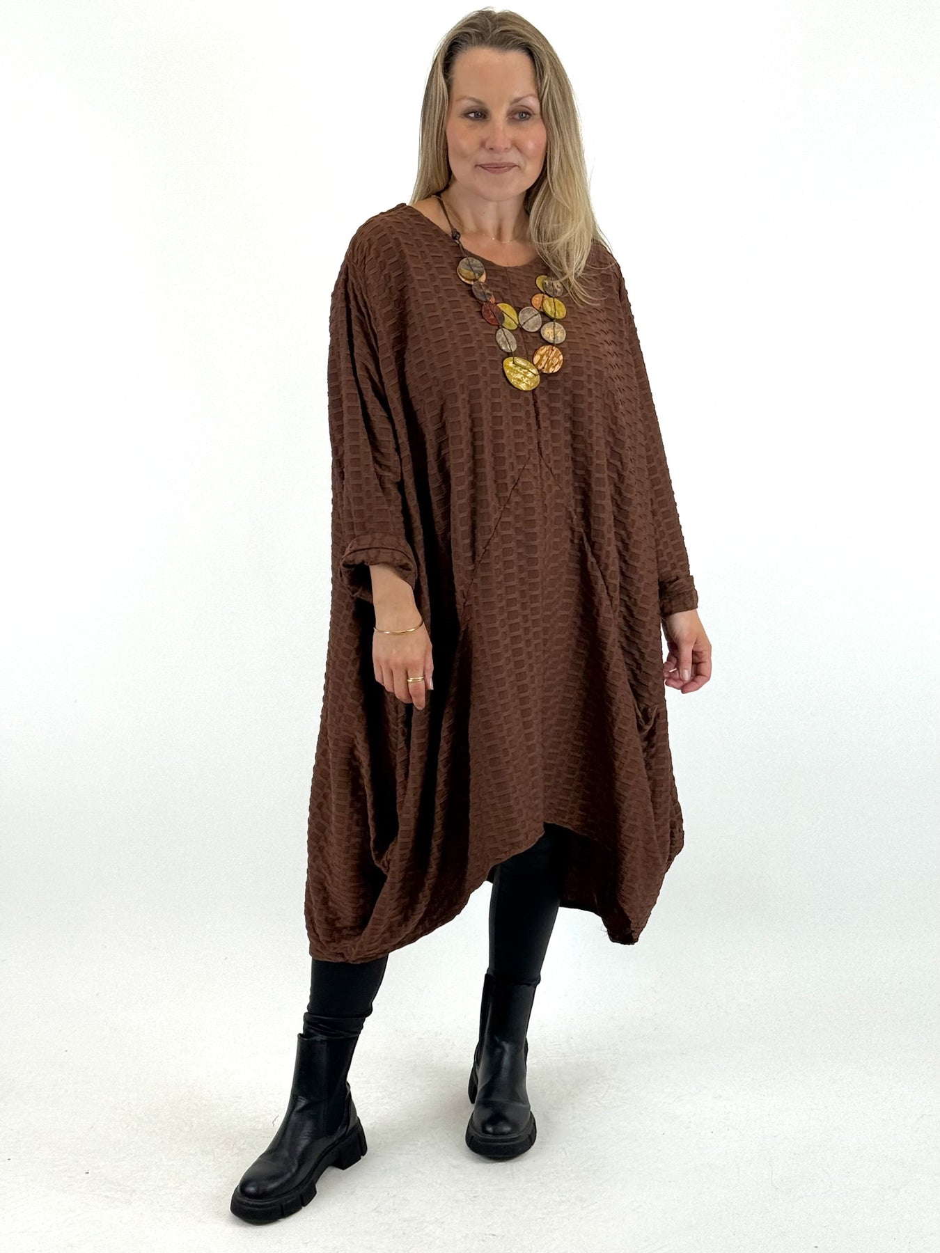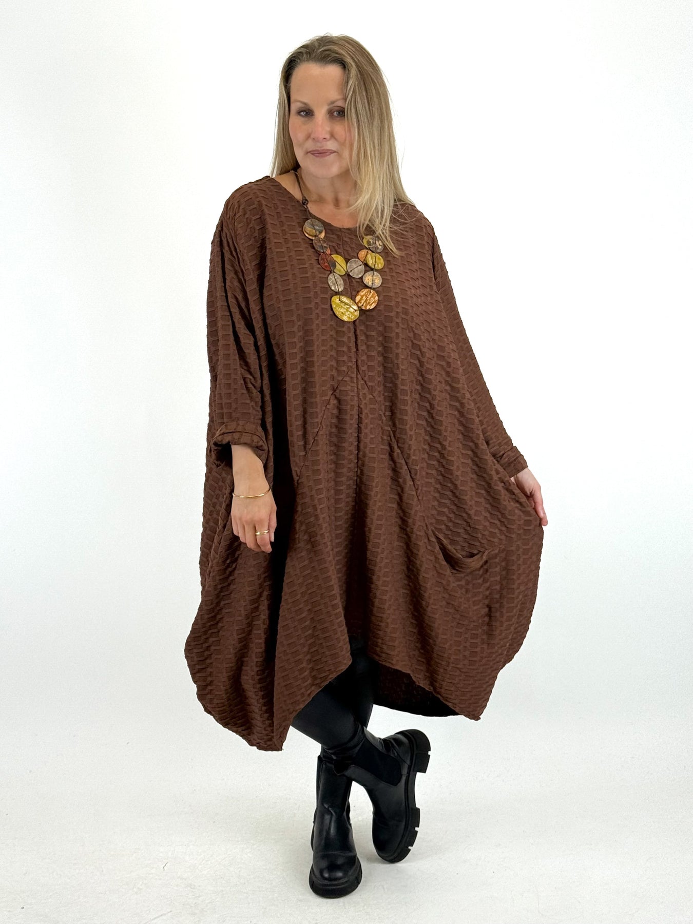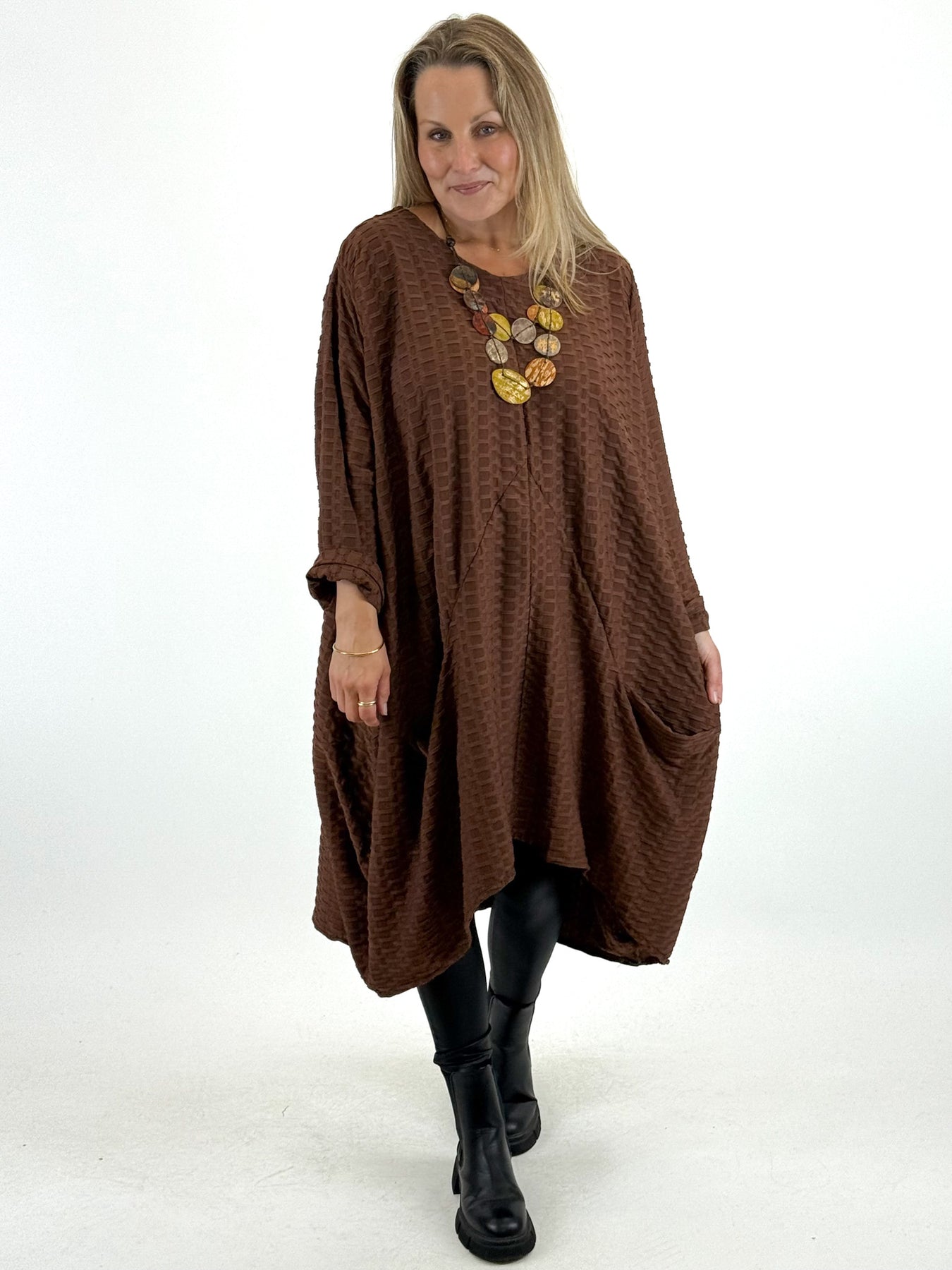 Made in Italy Lagenlook Waffle Parachute Hem Tunic In Chocolate. code 413
