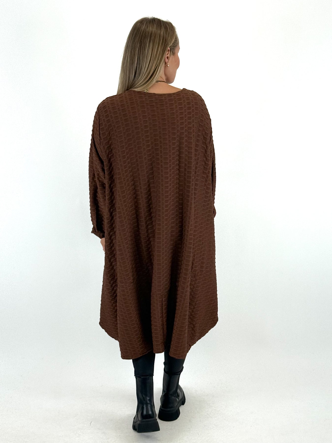 • Made in Italy Lagenlook Waffle Parachute Hem Tunic In Chocolate. code 413