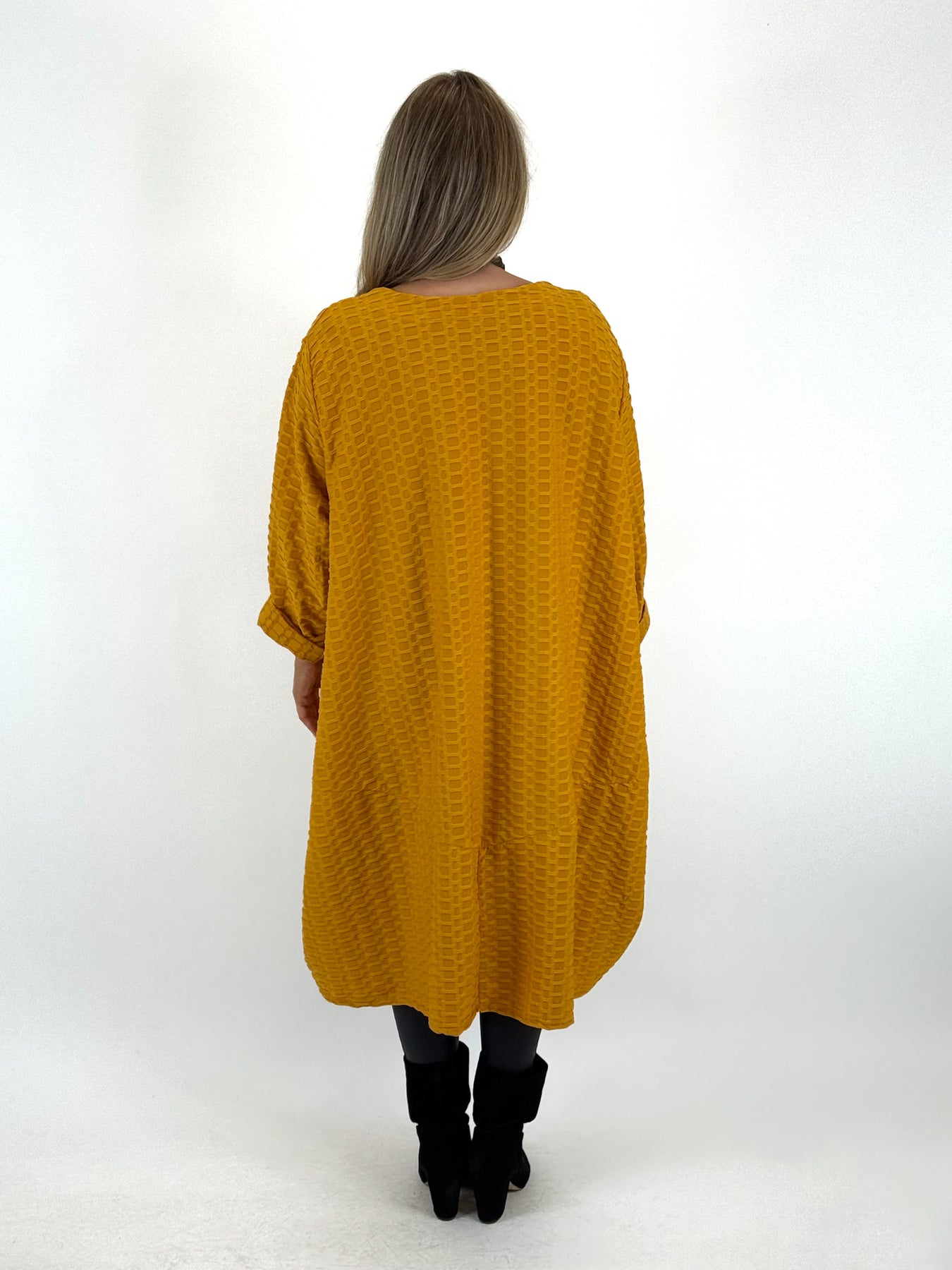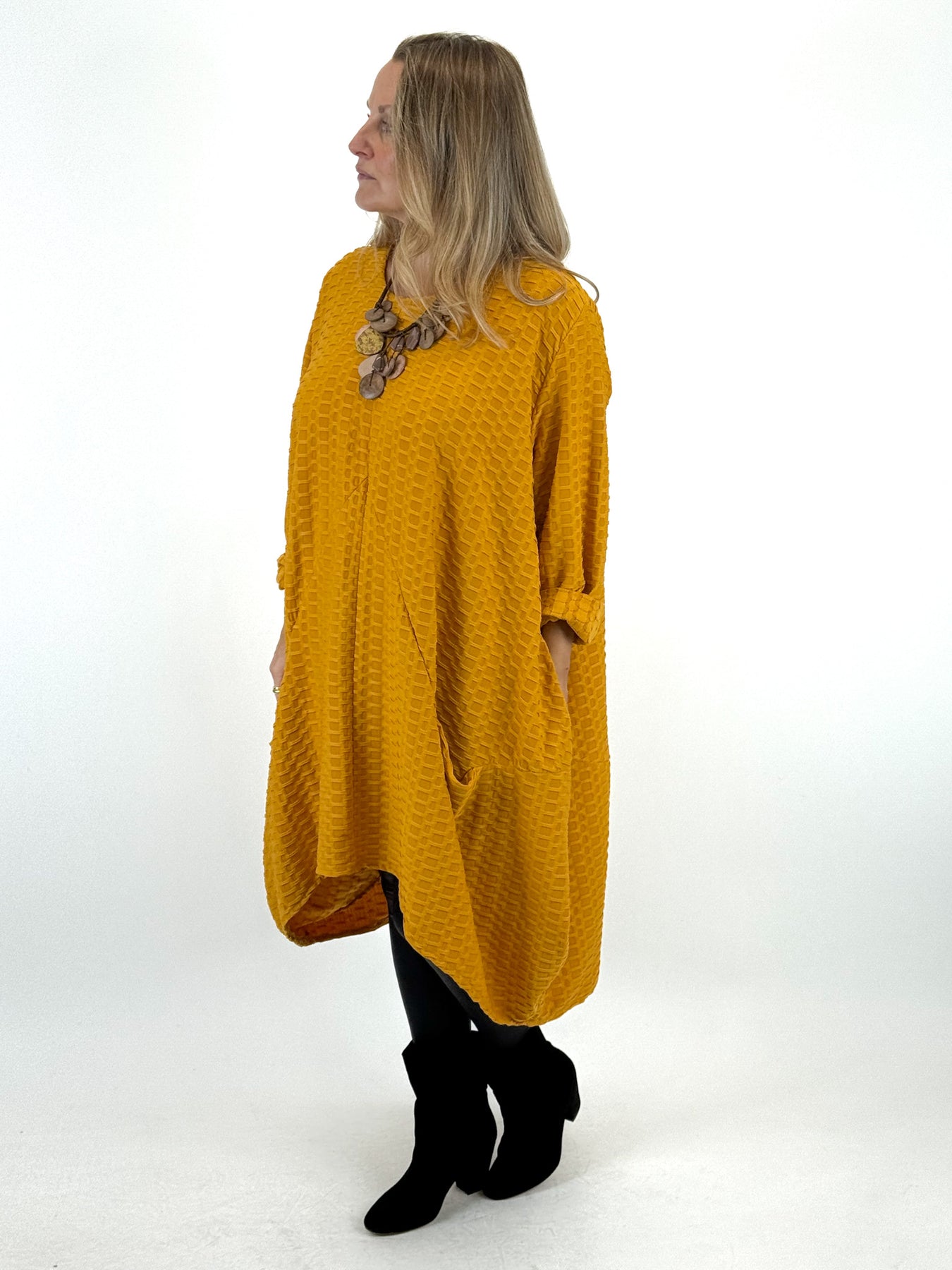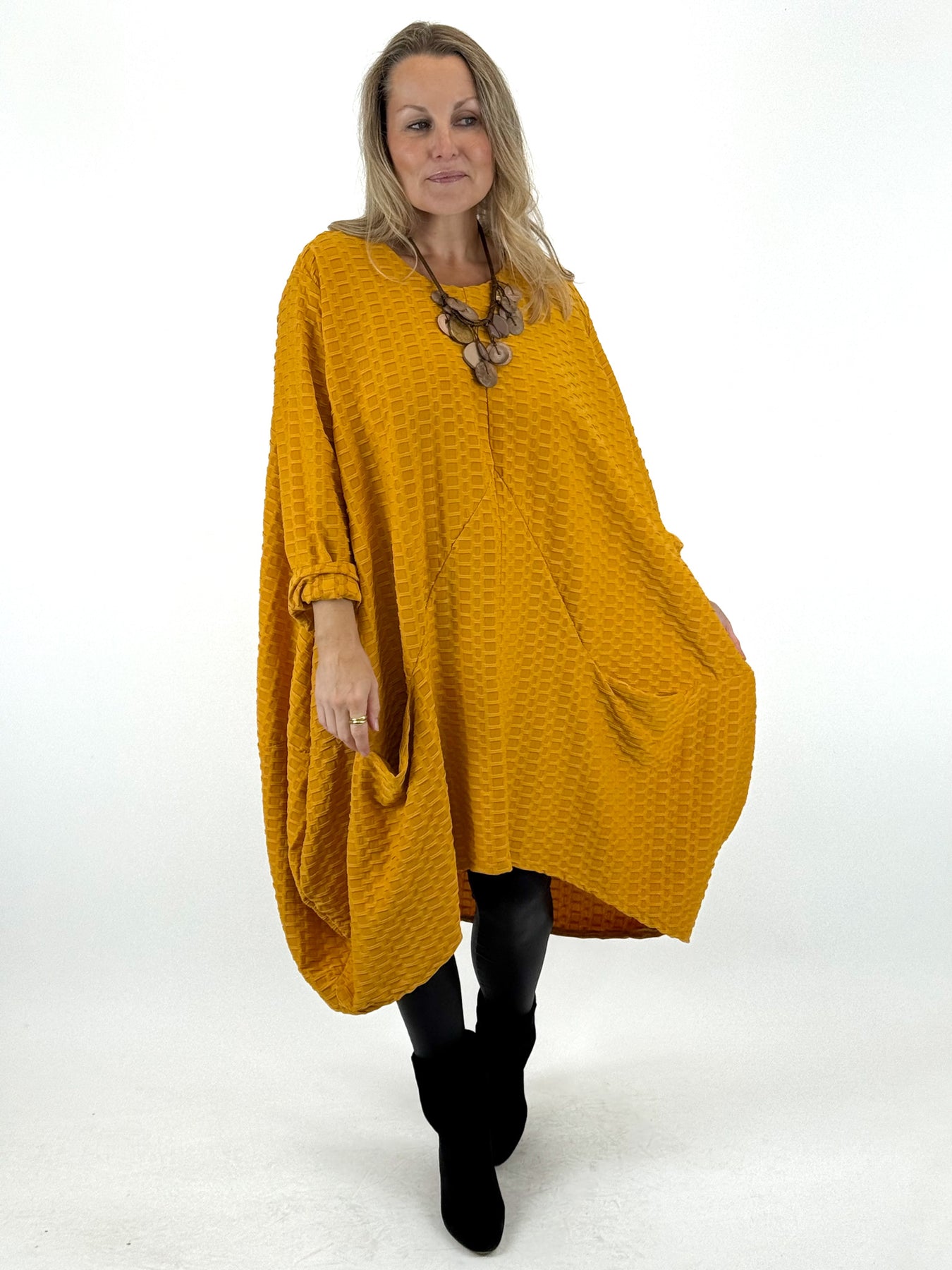 - Made in Italy Lagenlook Waffle Parachute Hem Tunic In Mustard. code 413