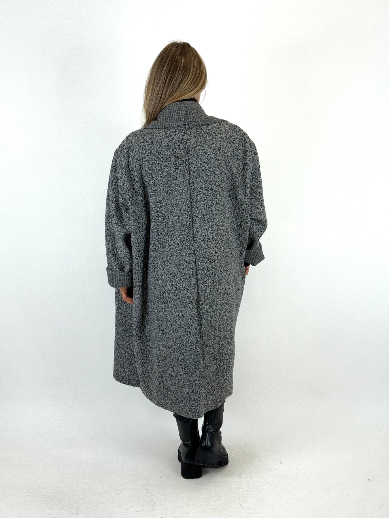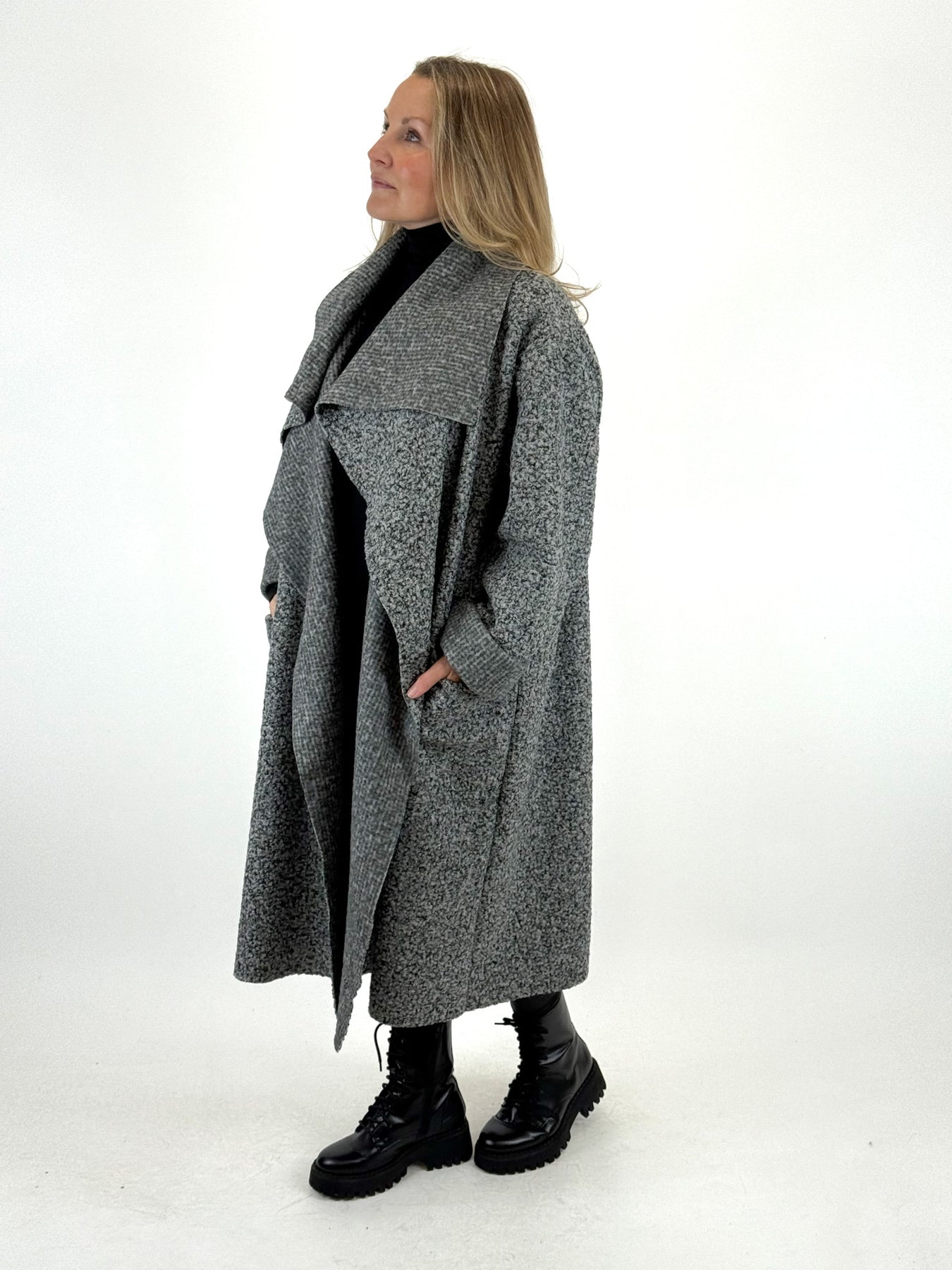 - Made in Italy Lagenlook Waterfall Boucle Coat in Charcoal Fleck. 6360