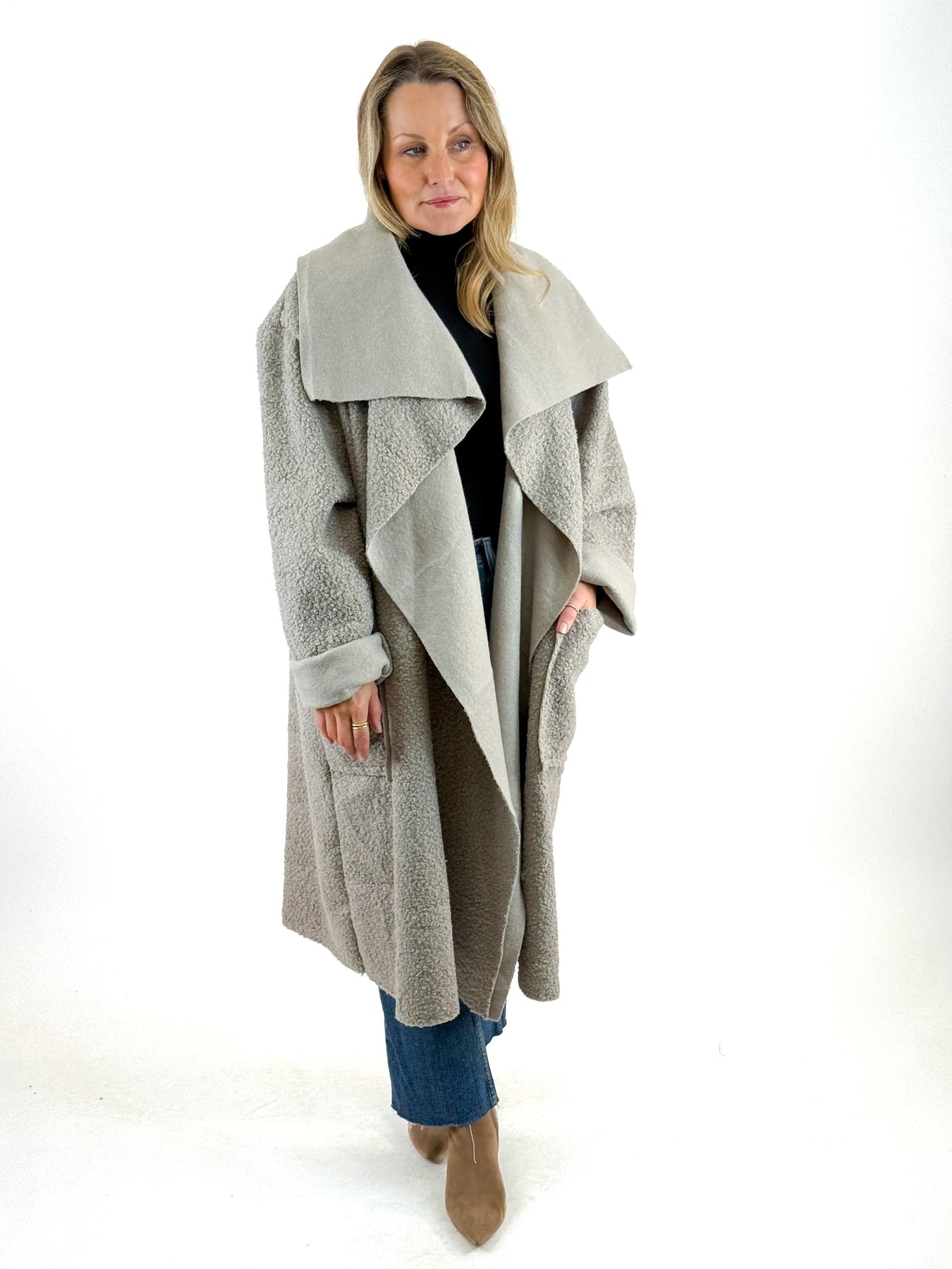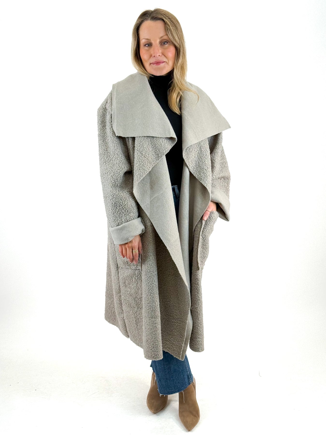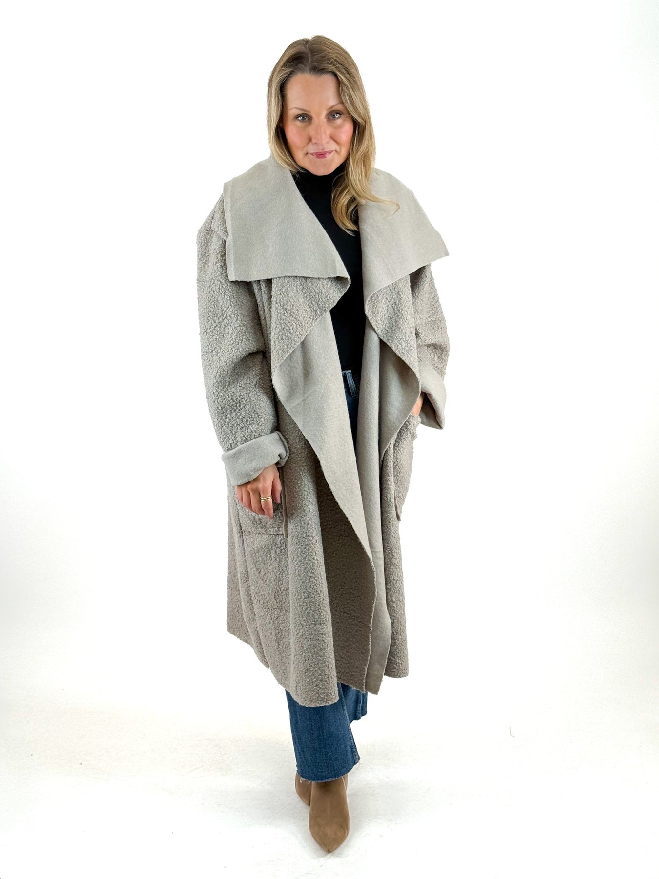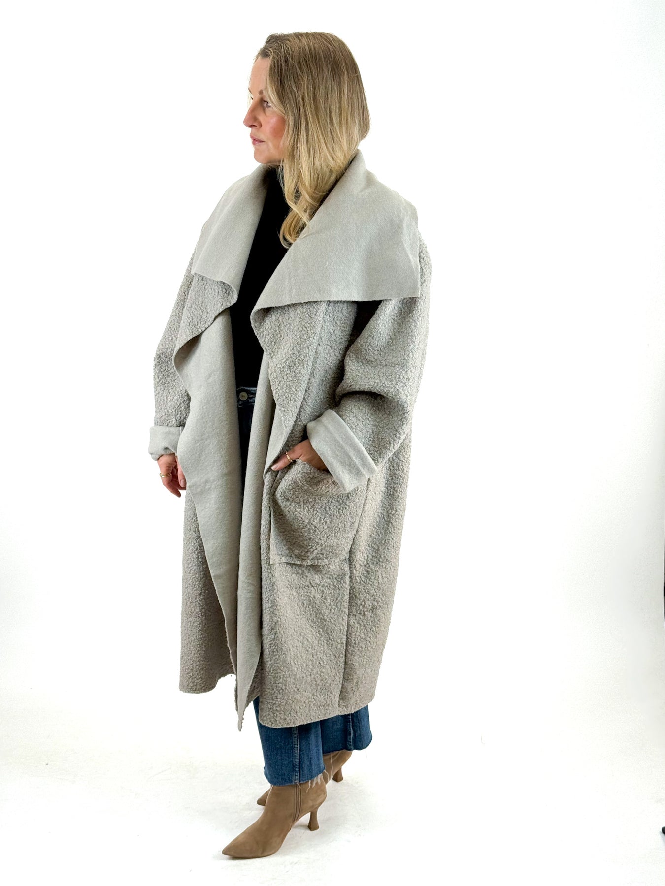 • Made in italy Lagenlook Waterfall Boucle Coat in Cream Stone 6360