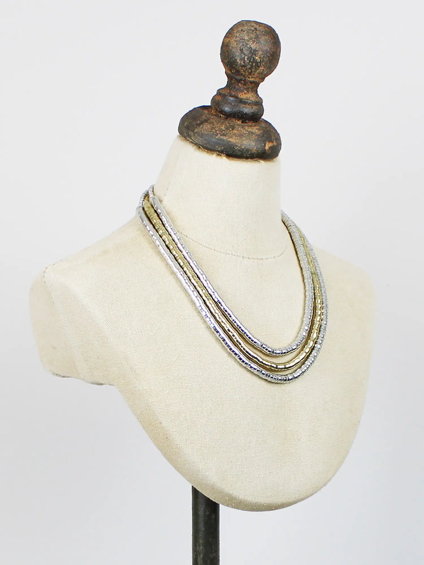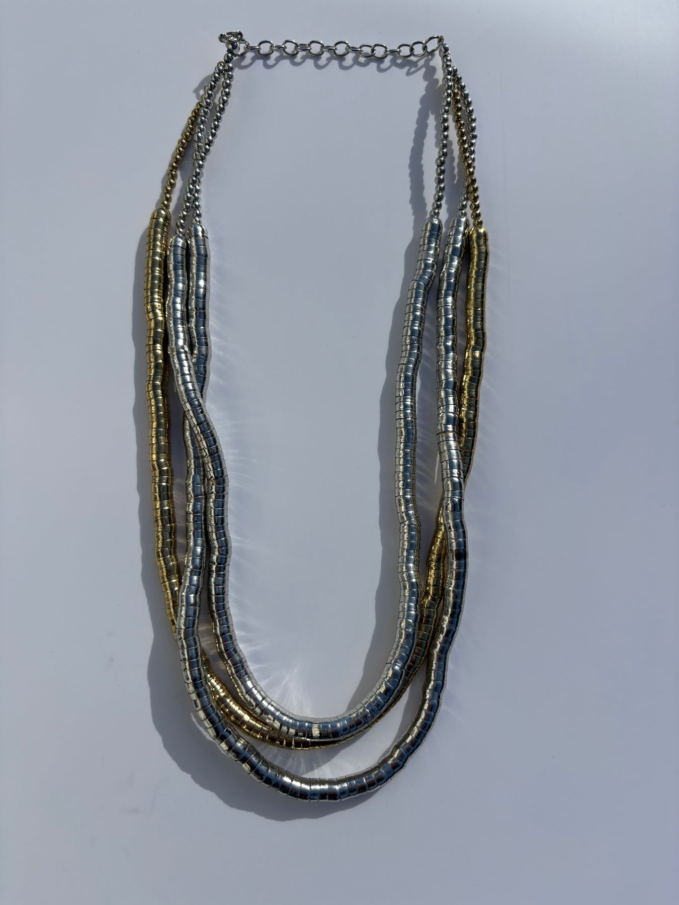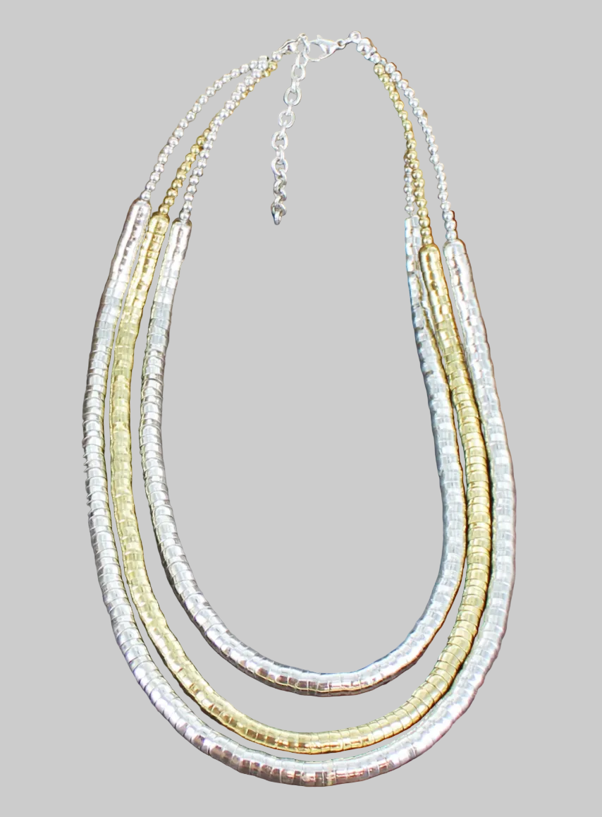 Lagenlook 3 Strand Snake Necklace| Gold Silver