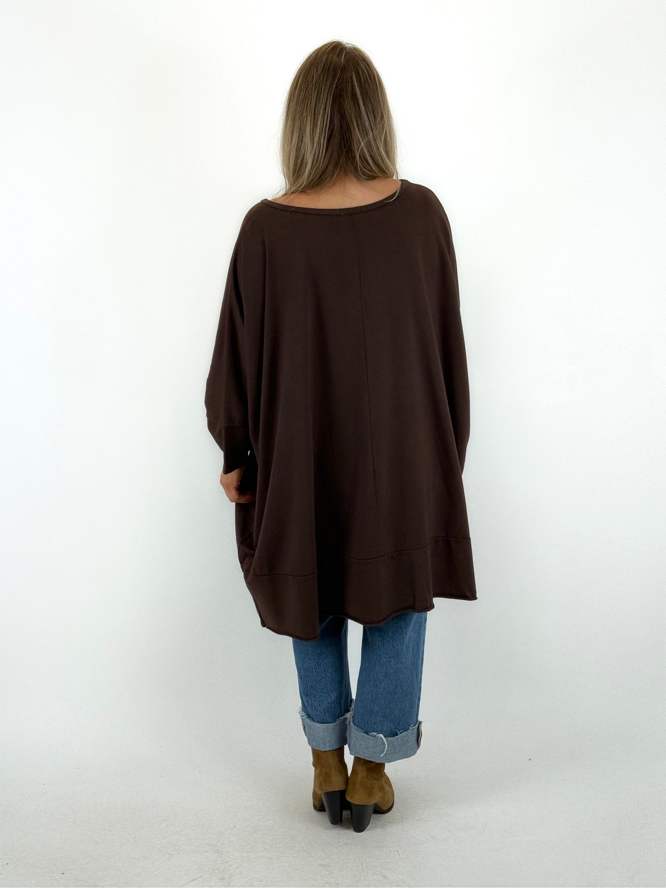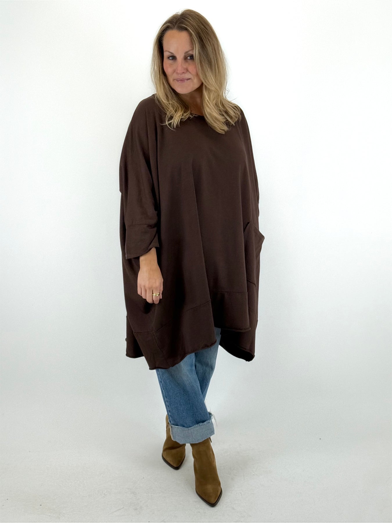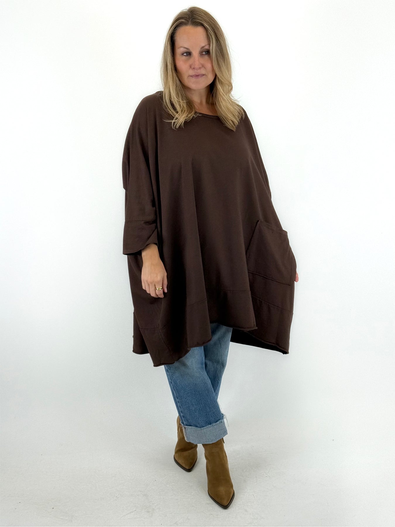- Made in Italy Lagenlook Emily Oversized Pocket Sweatshirt in Chocolate. 00238