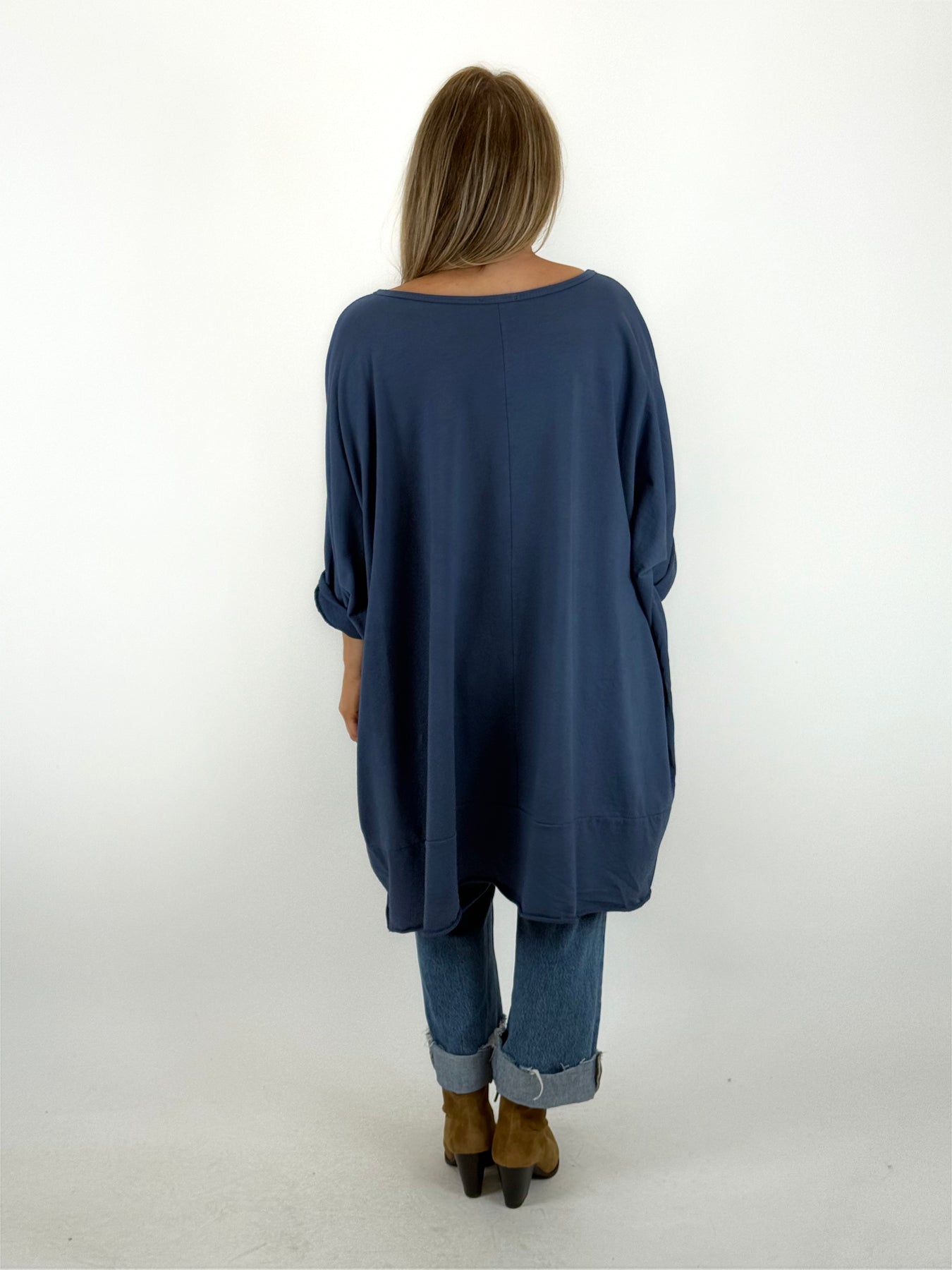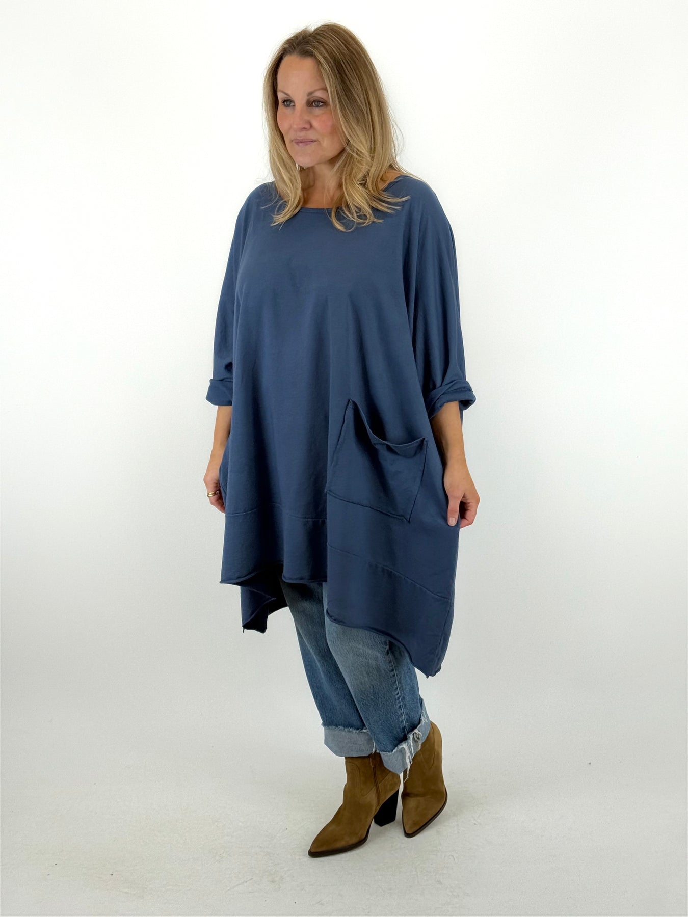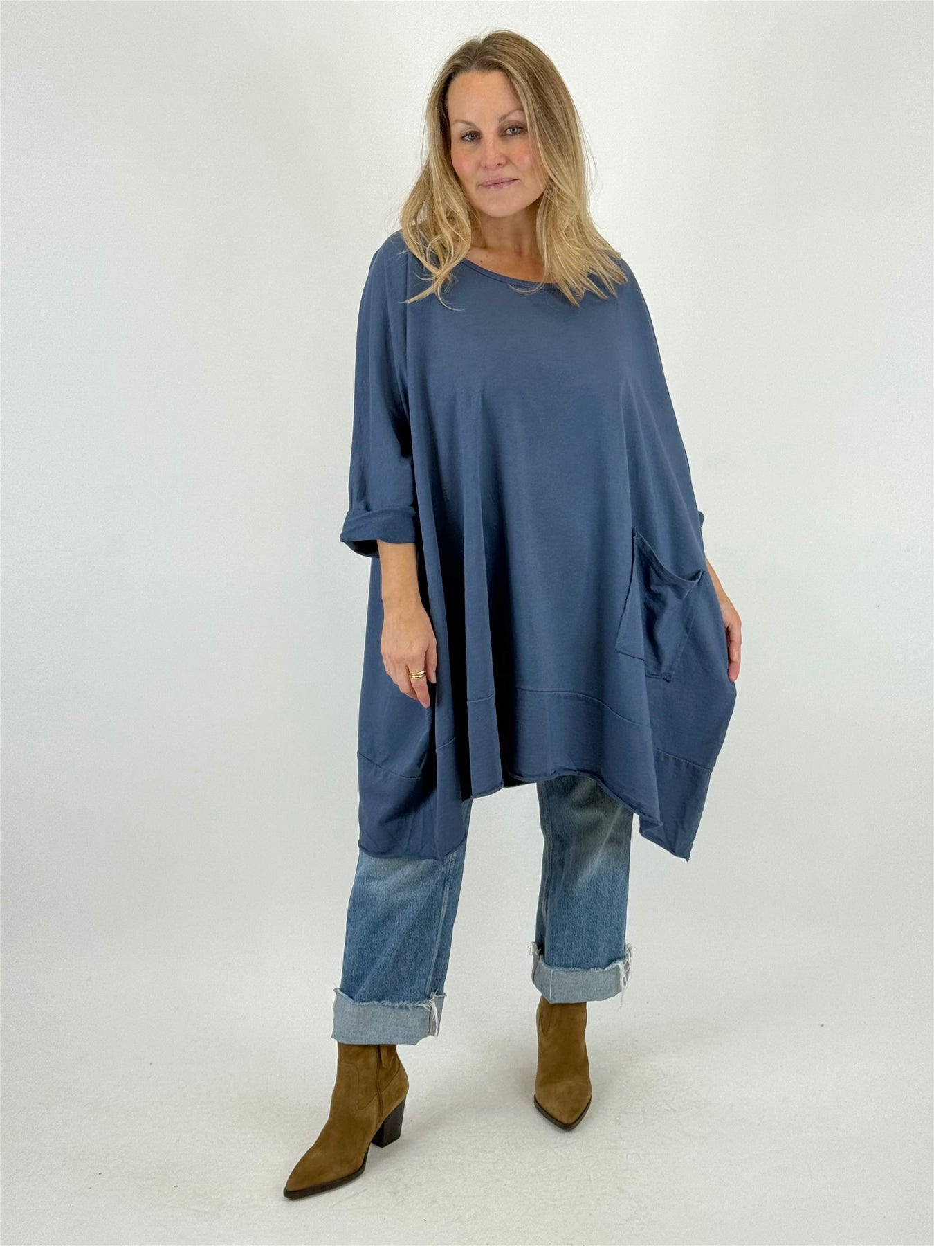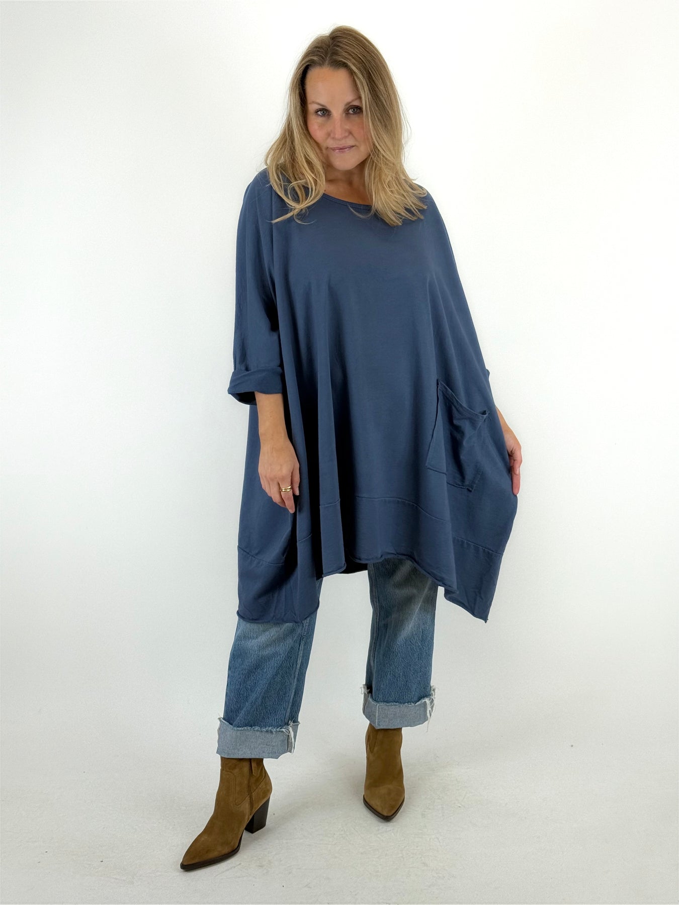 - Made in Italy Lagenlook Emily Oversized Pocket Sweatshirt in New Denim. 00238