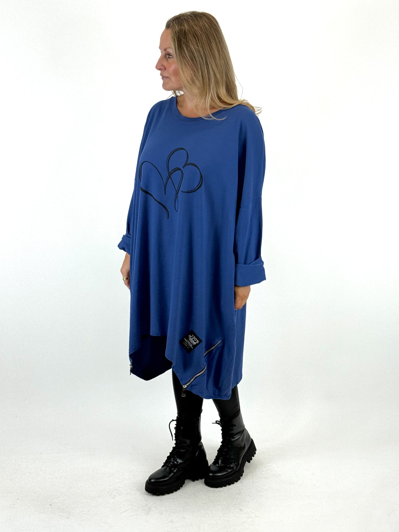 - Made in Italy Lagenlook Heart Sweatshirt in Oxford Blue. code 91206