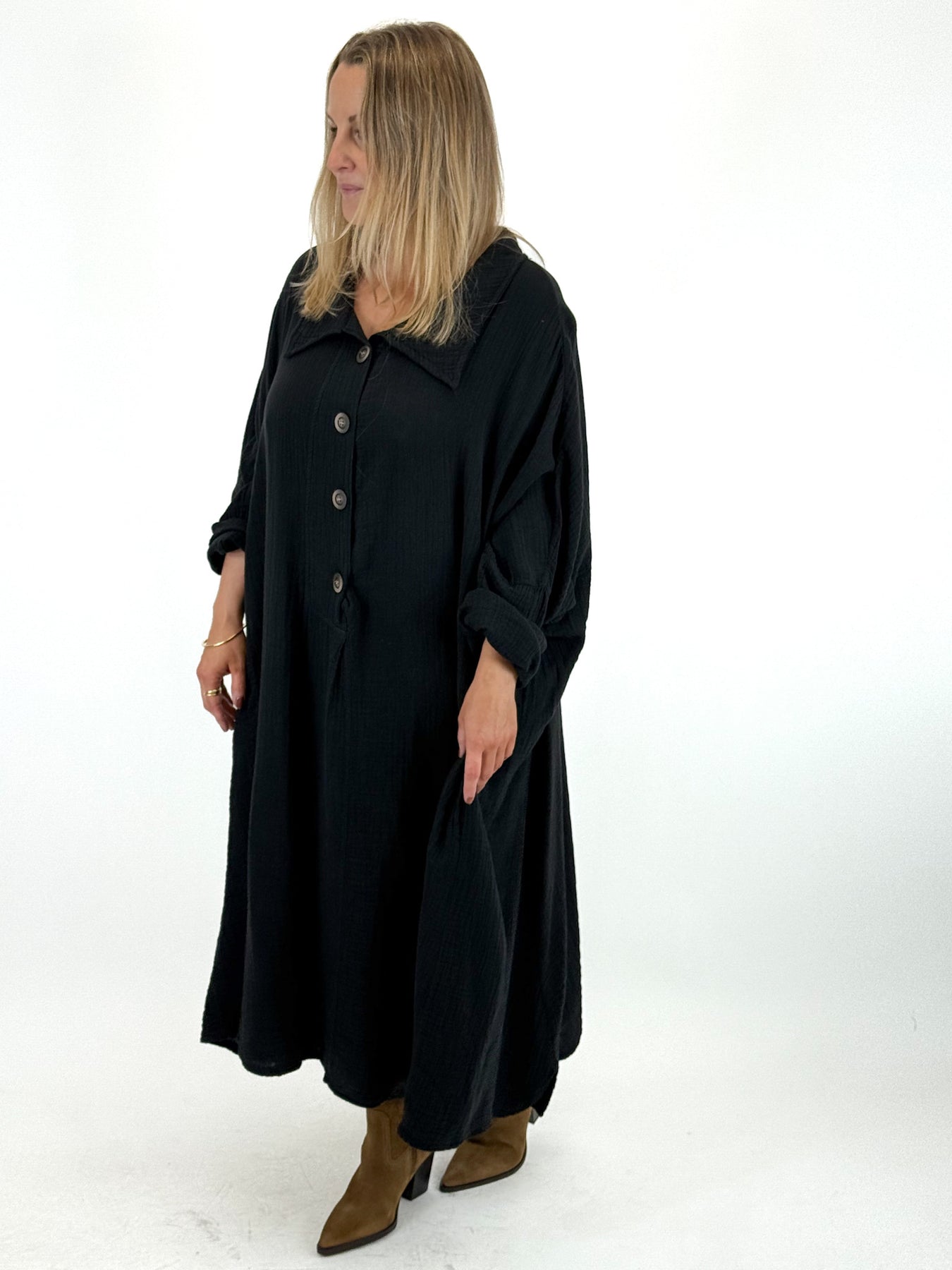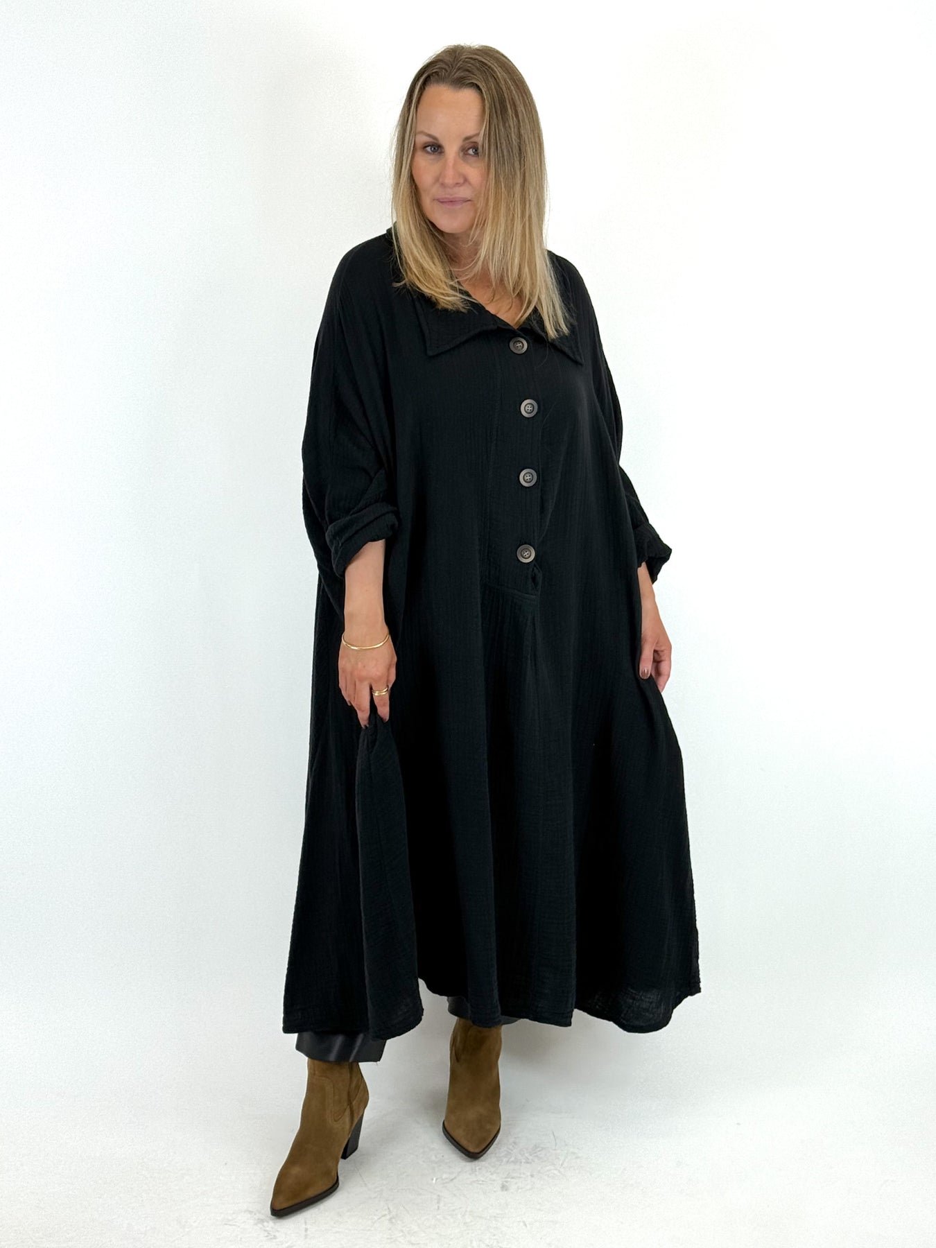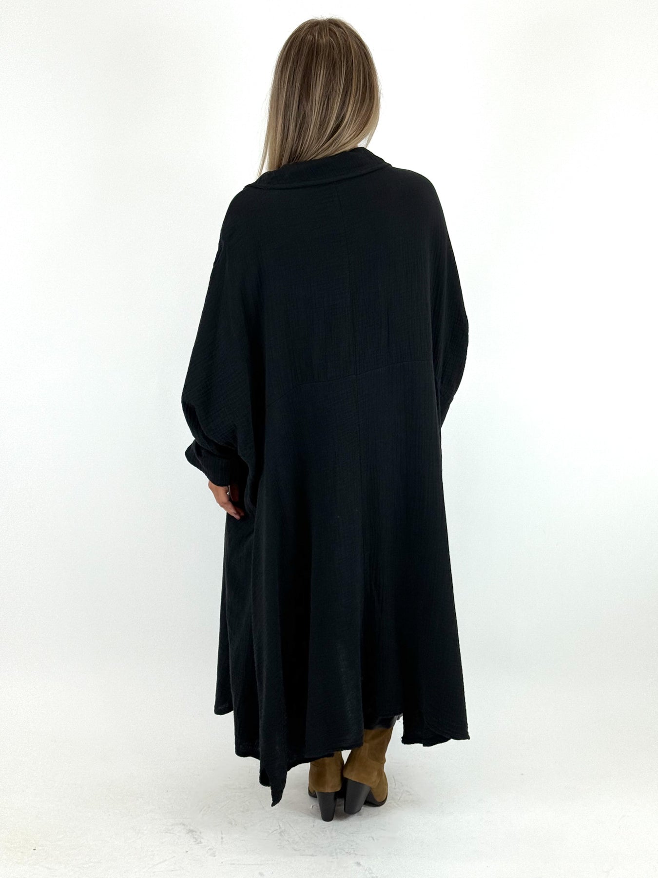 - Made in Italy Lagenlook Lester Cotton Crinkle Shirt in Black. 92121