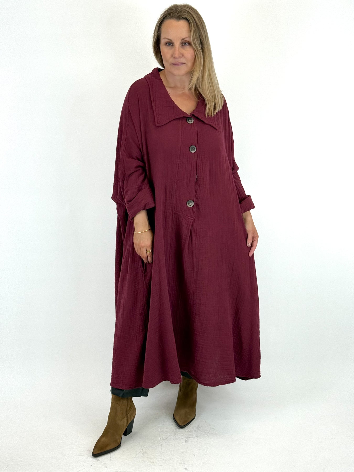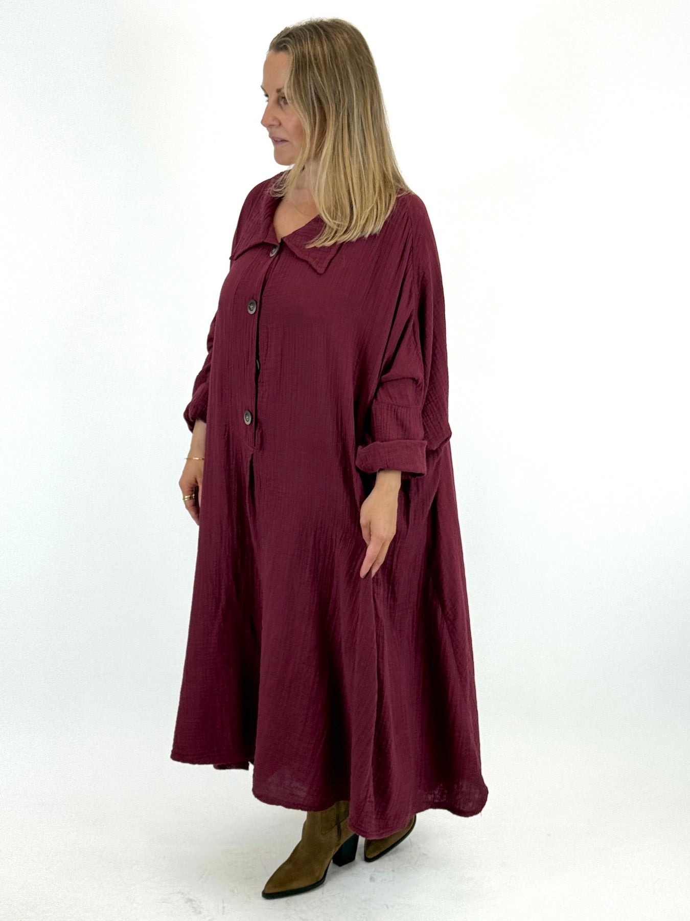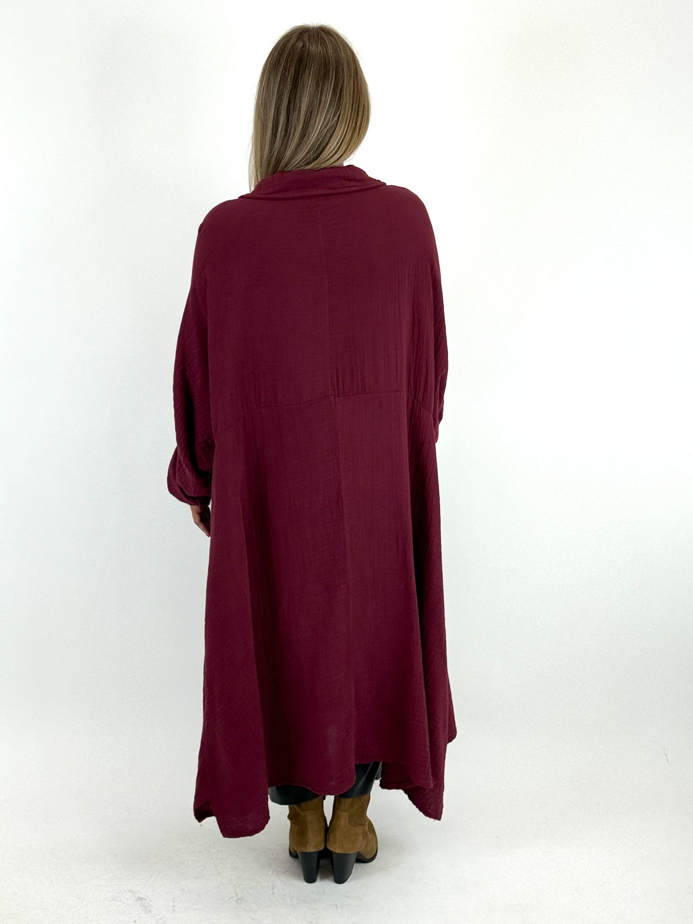 - Made in Italy Lagenlook Lester Cotton Crinkle Shirt in Wine. 92121