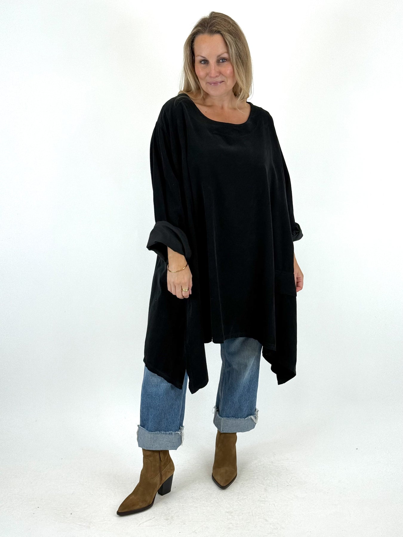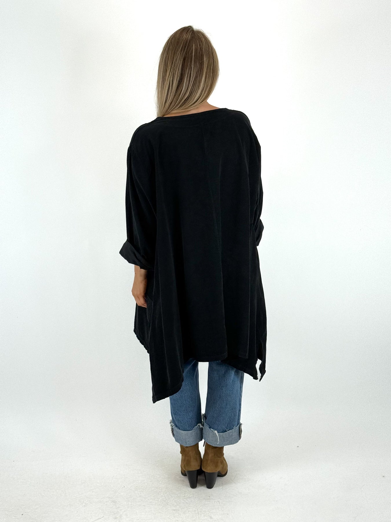 Made in Italy Lagenlook Toni Corduroy Top Black. 91817