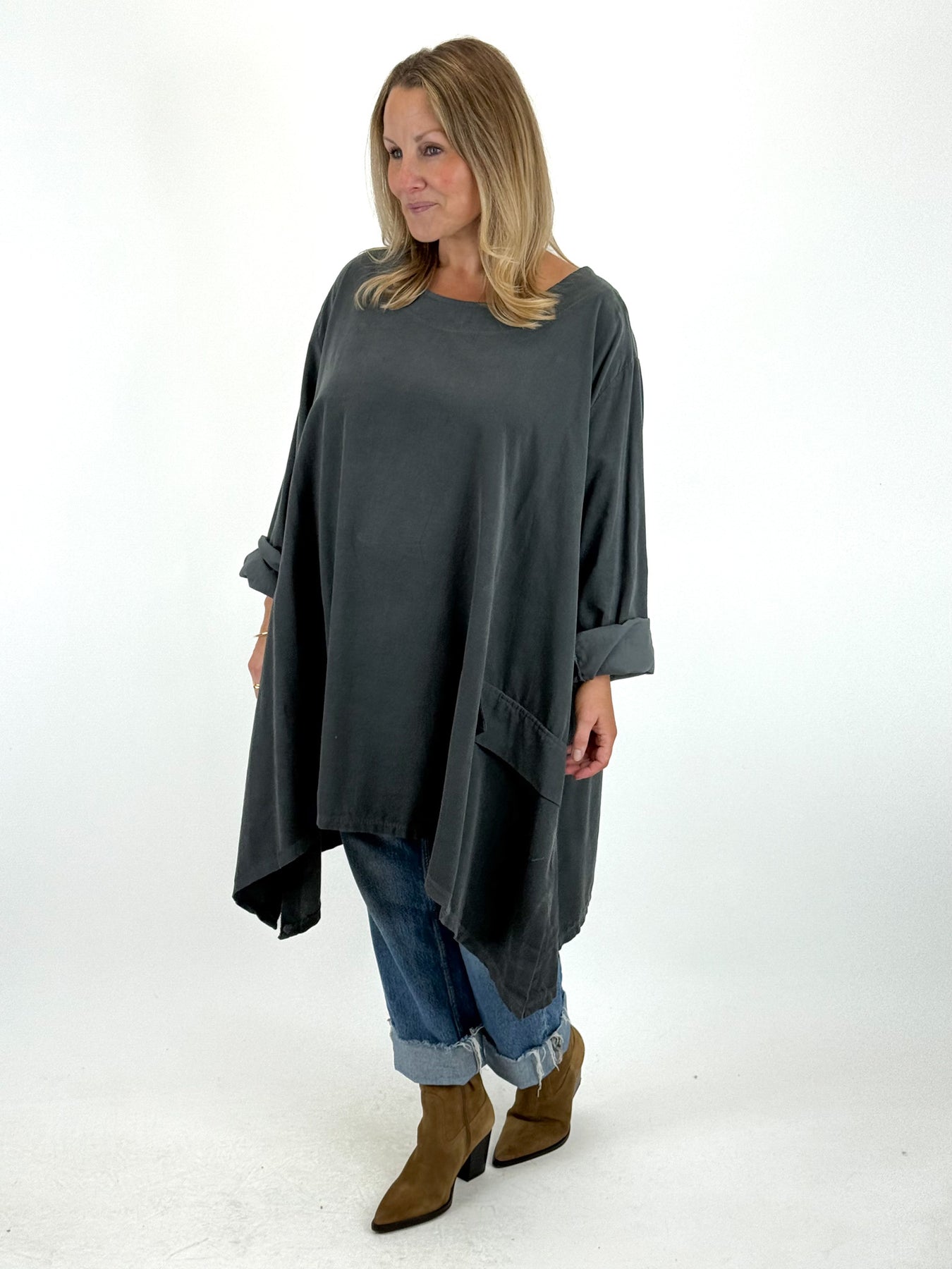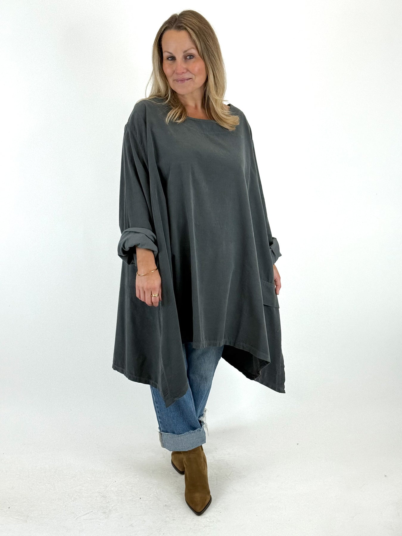 • Made in Italy Lagenlook Toni Corduroy Top Charcoal. 91817