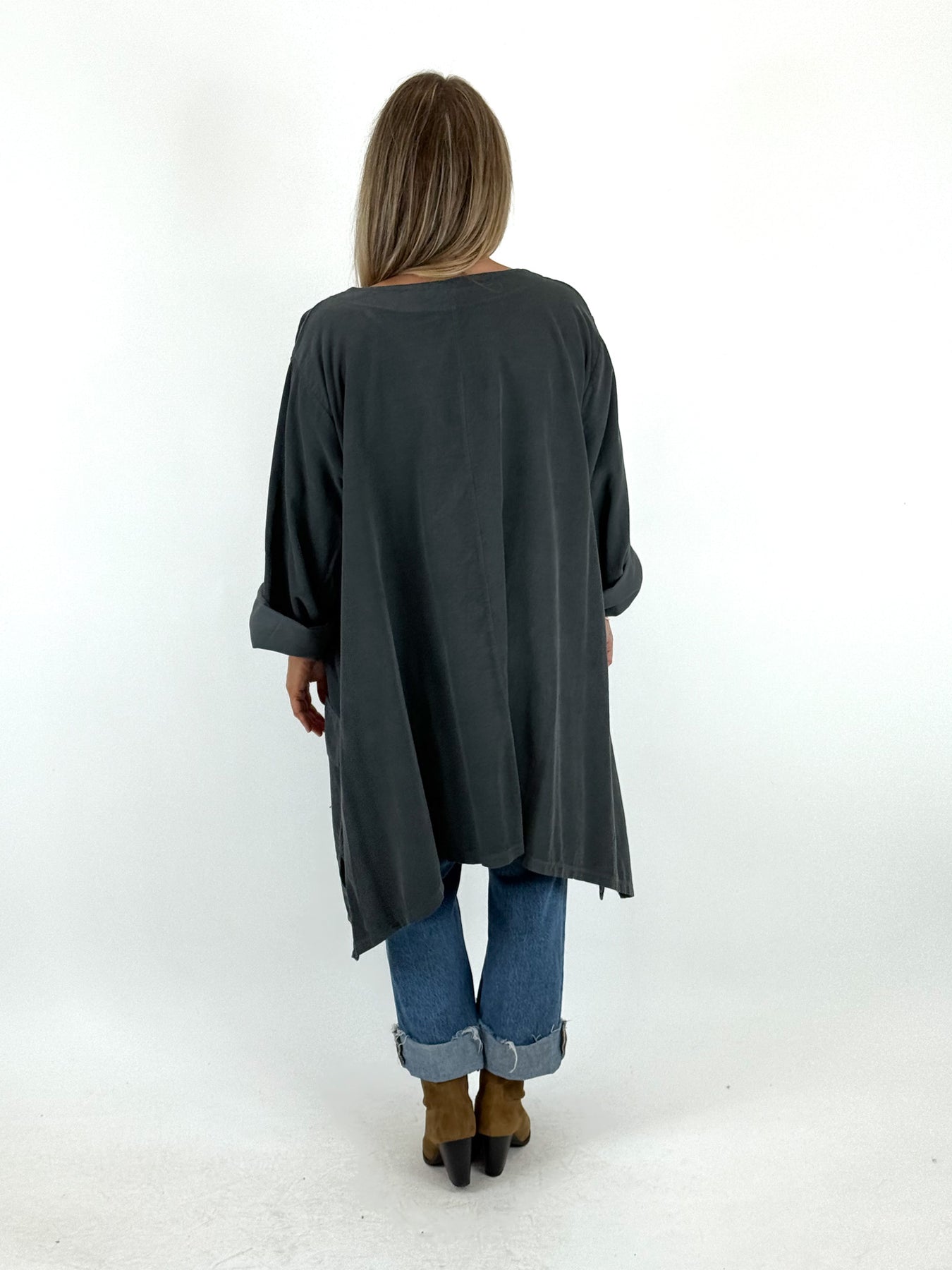 Made in Italy Lagenlook Toni Corduroy Top Charcoal. 91817