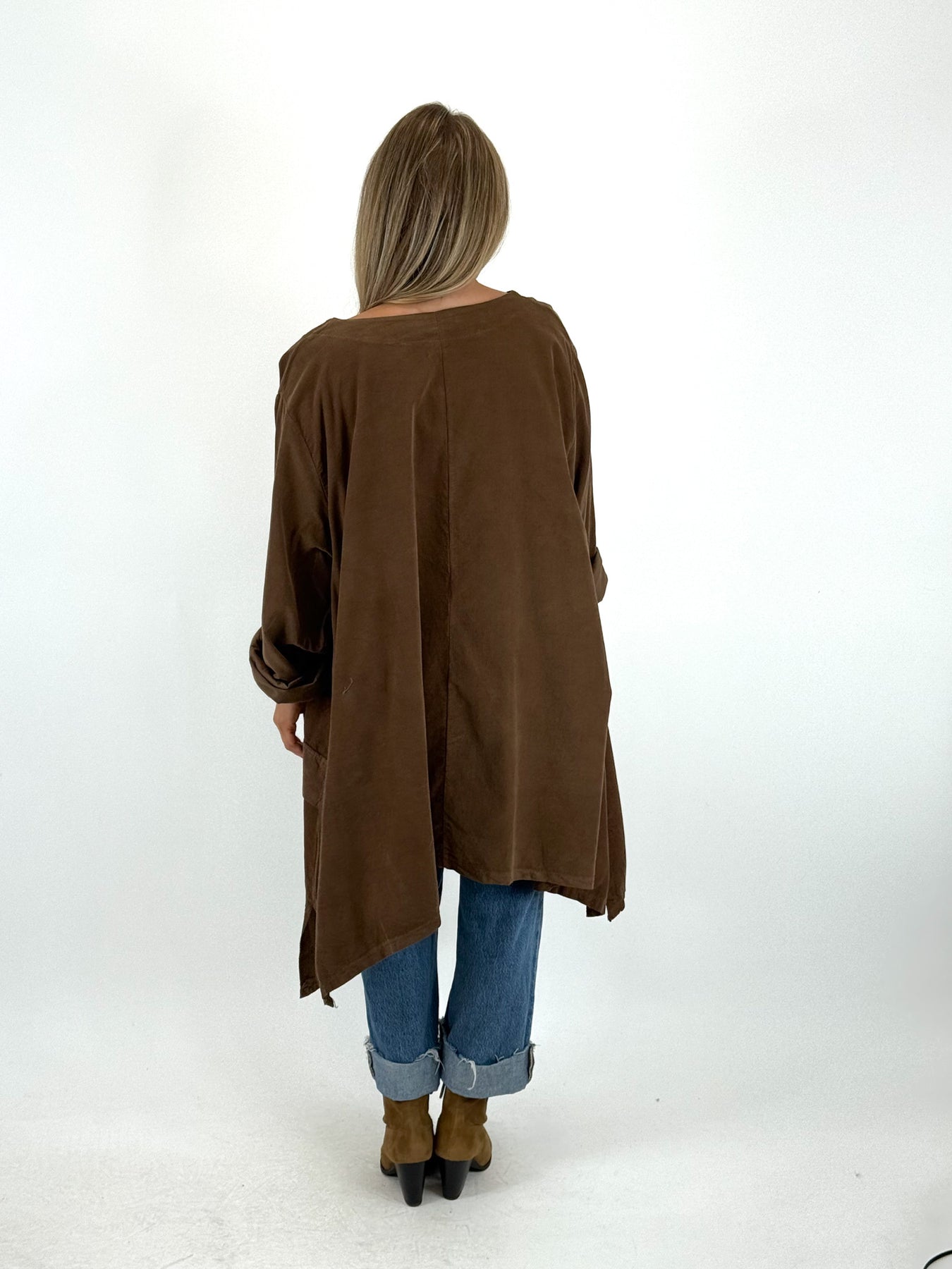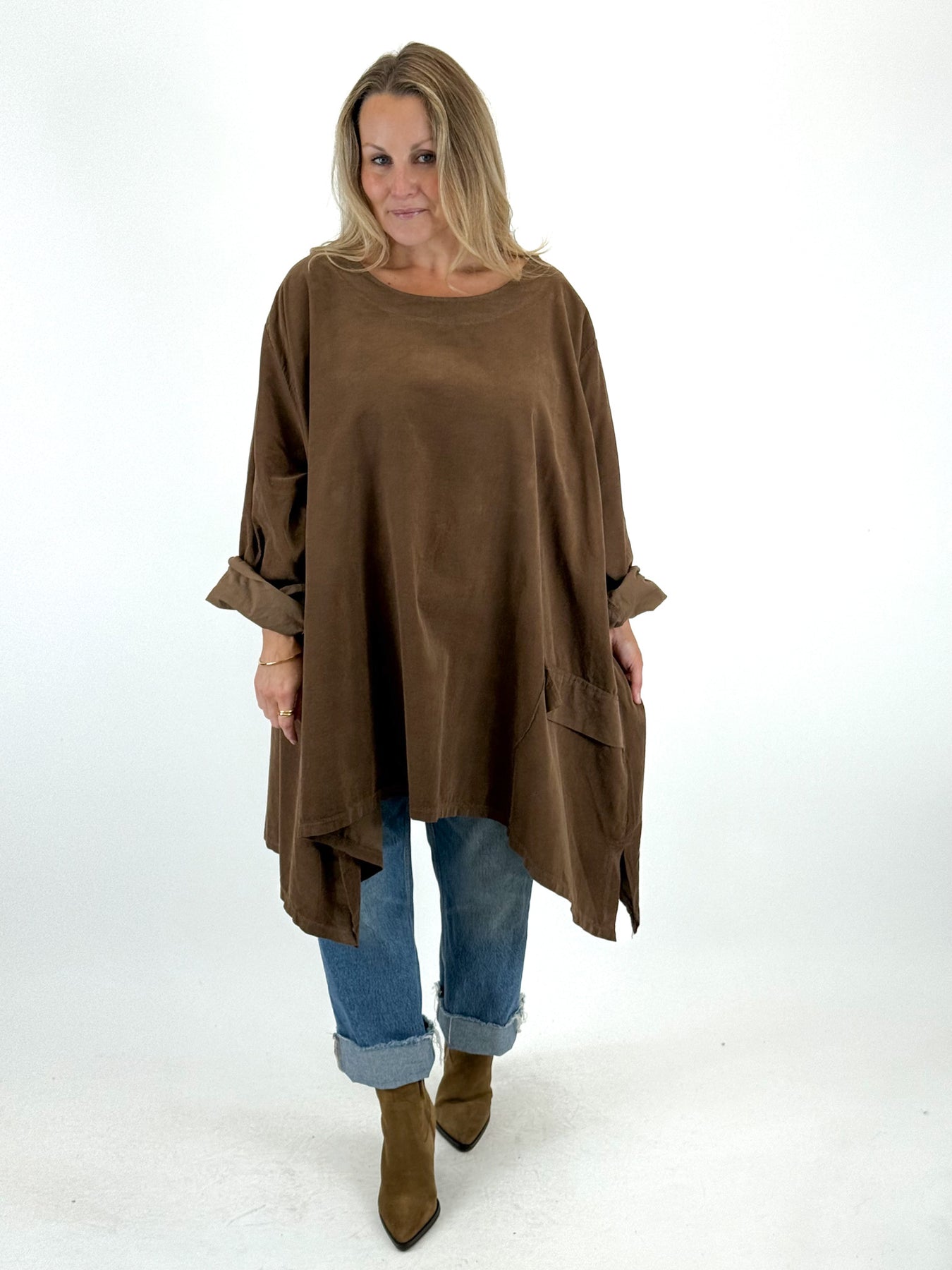 Made in Italy Lagenlook Toni Corduroy Top Chocolate. 91817
