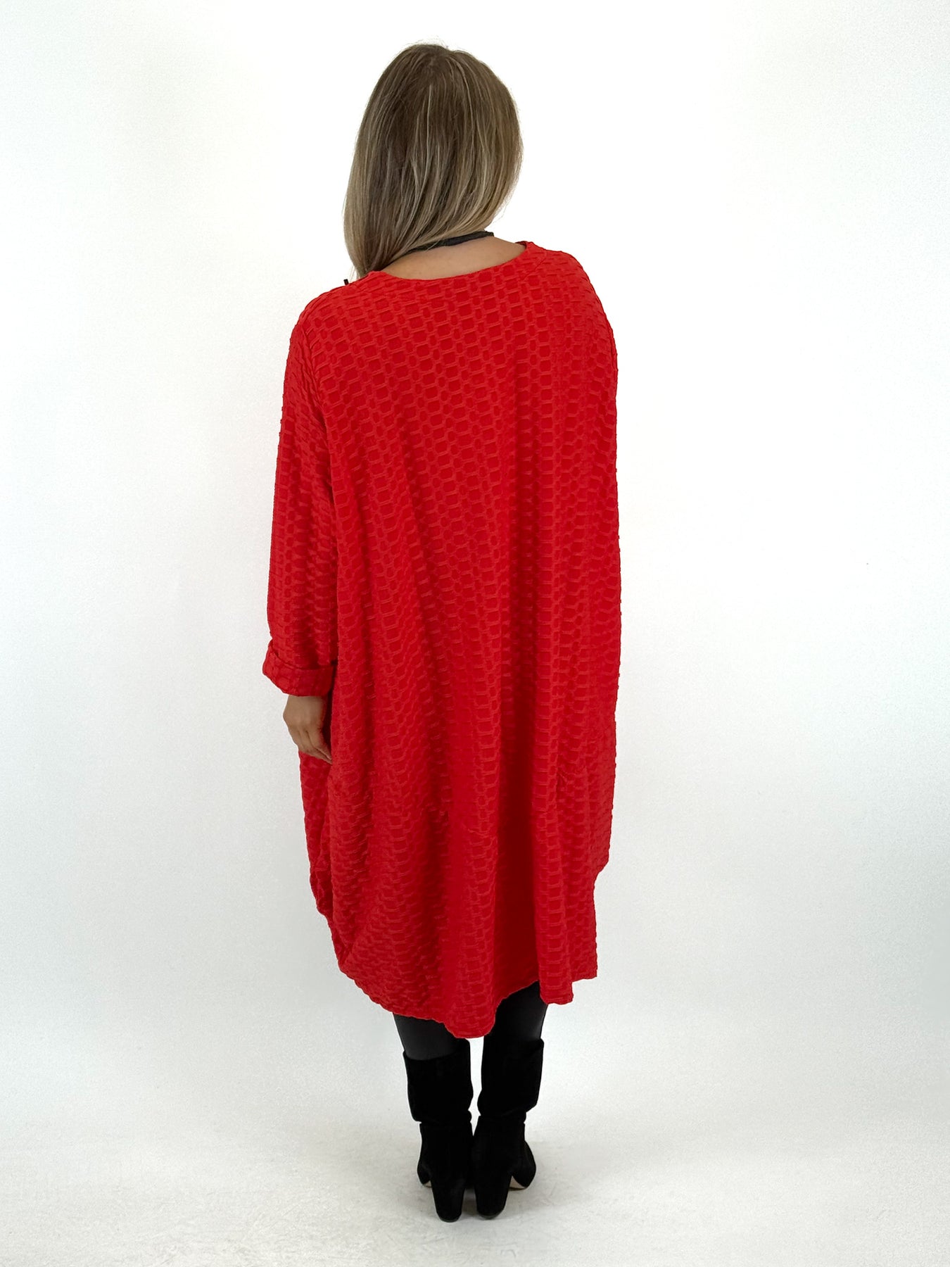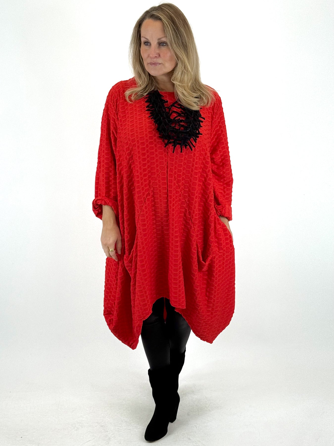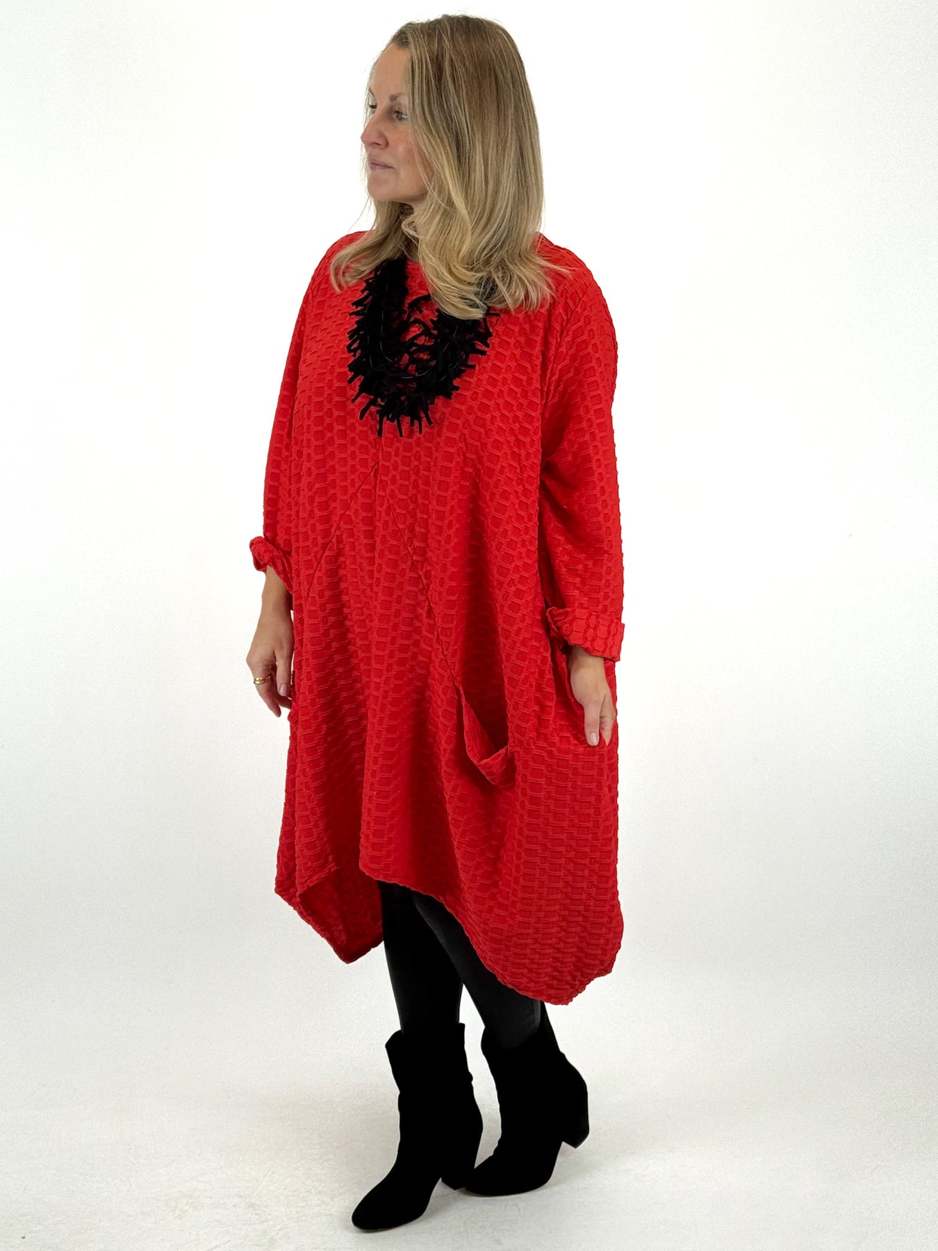 - Made in Italy Lagenlook Waffle Parachute Hem Tunic In Red. code 413