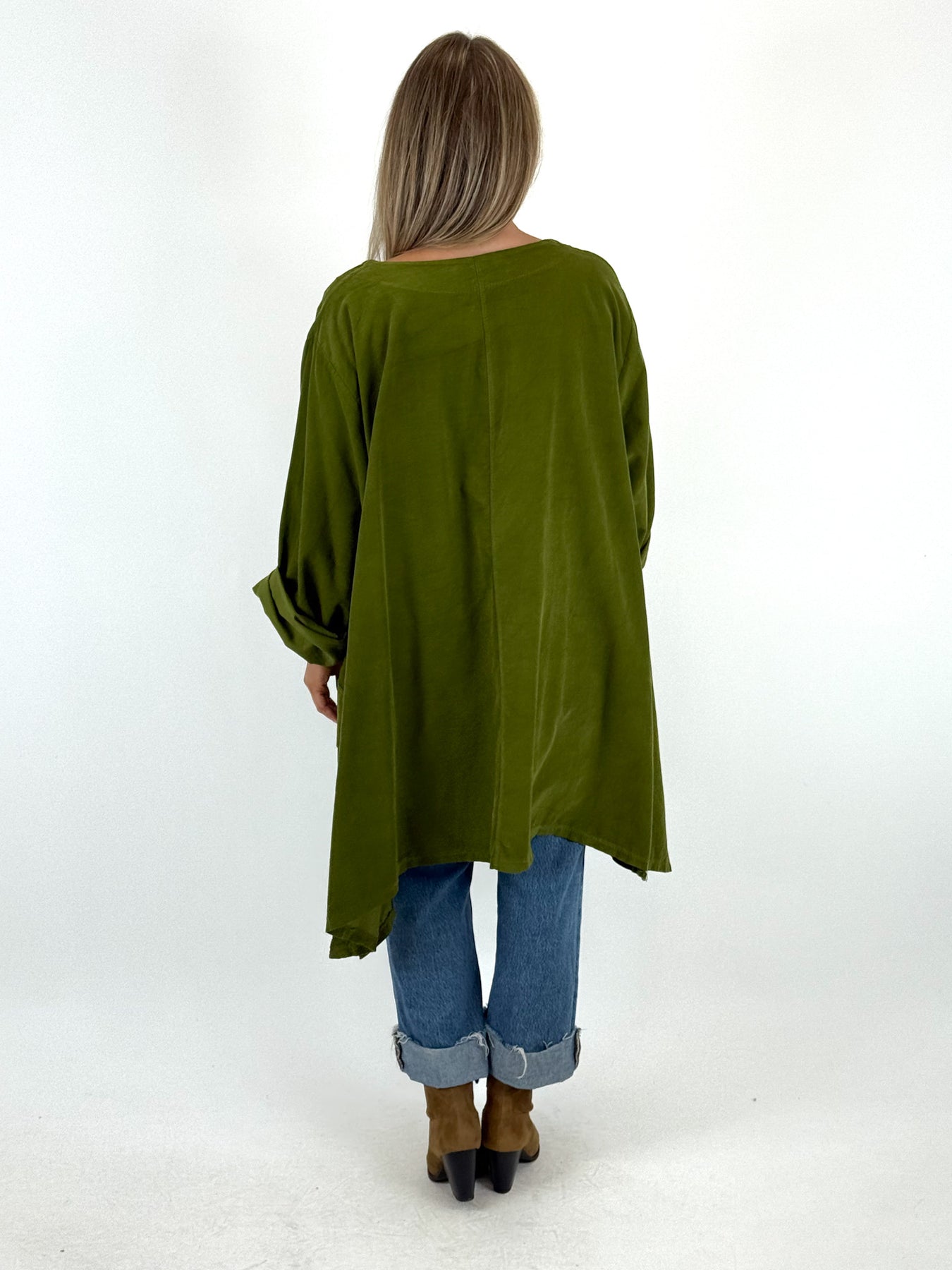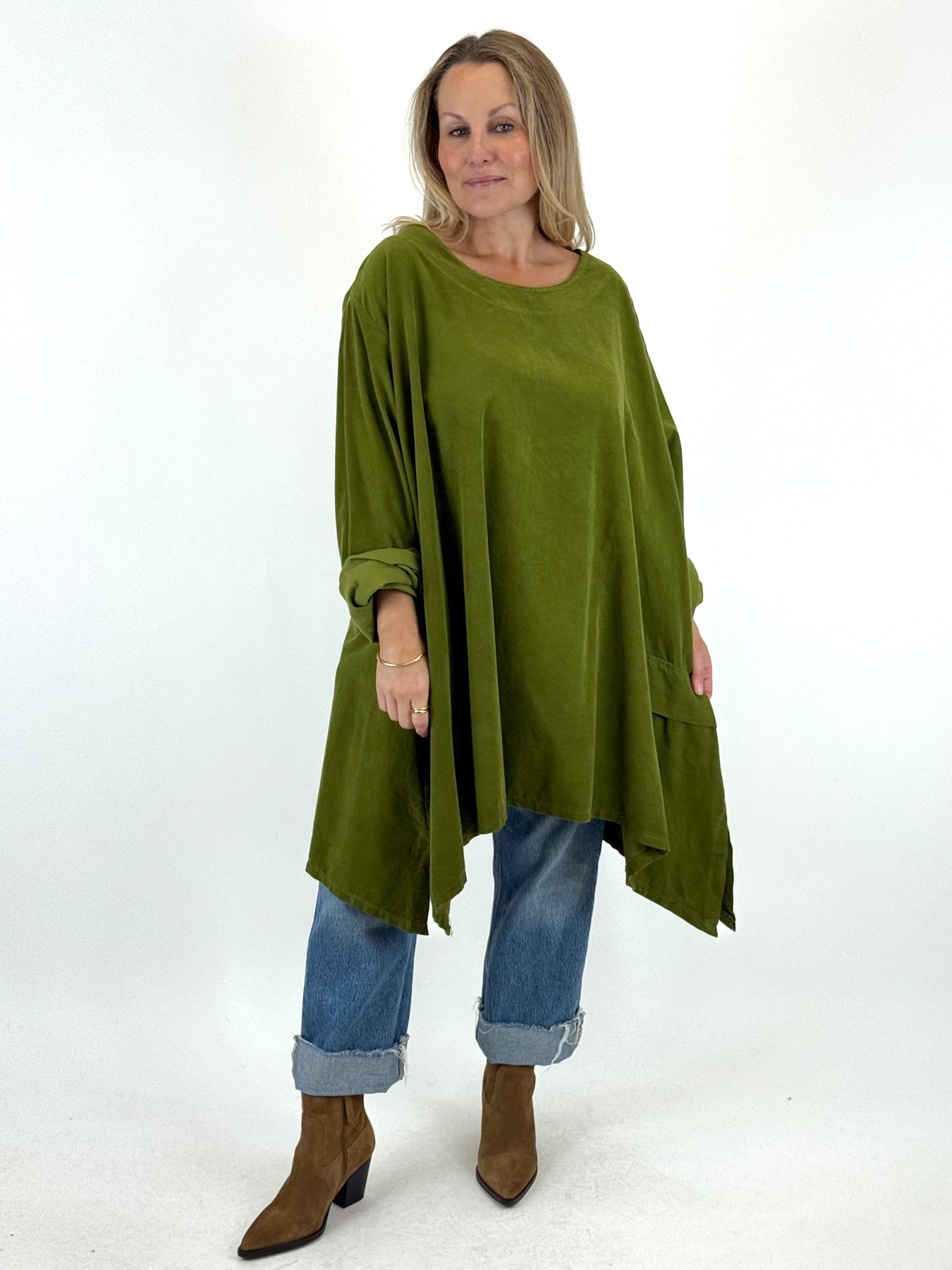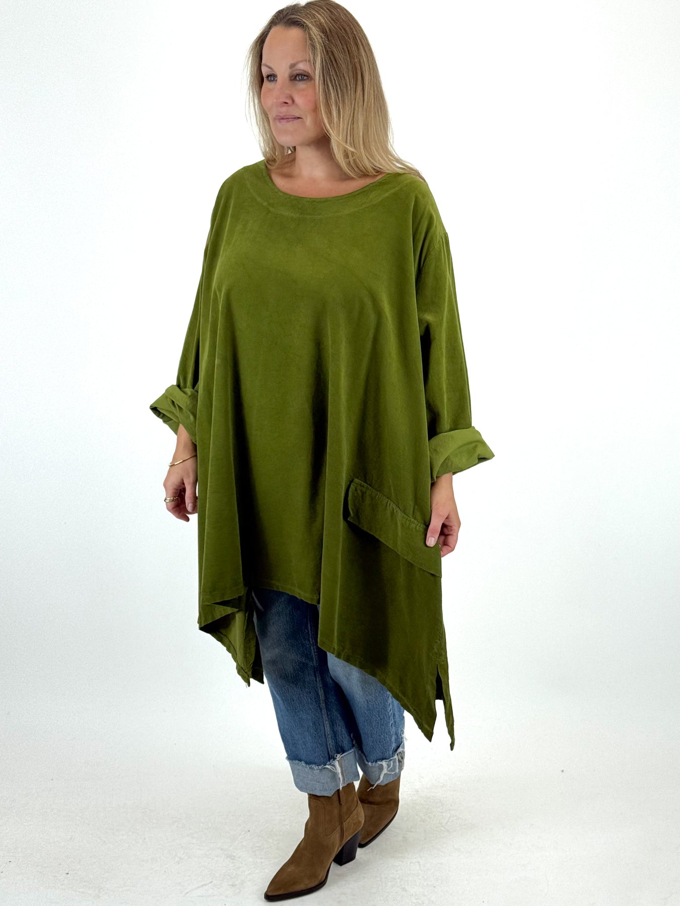 Made in Italy Lagenlook Toni Corduroy Top Olive. 91817