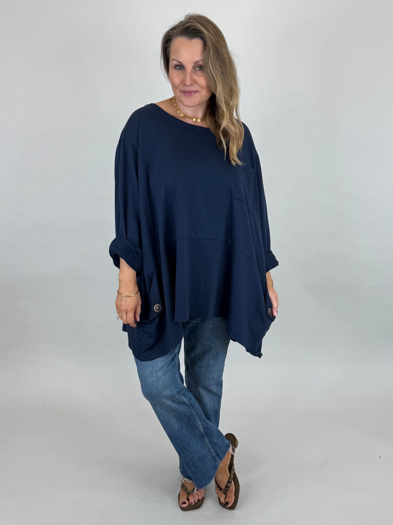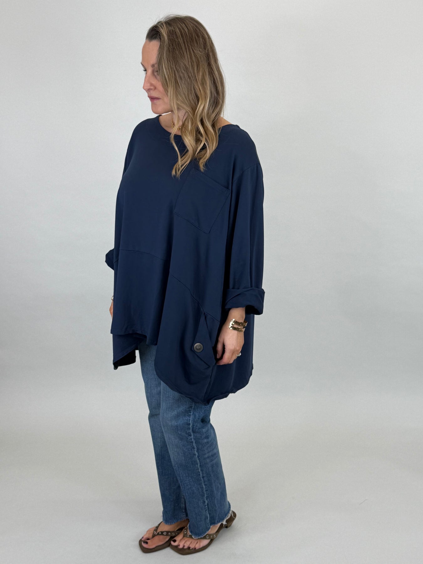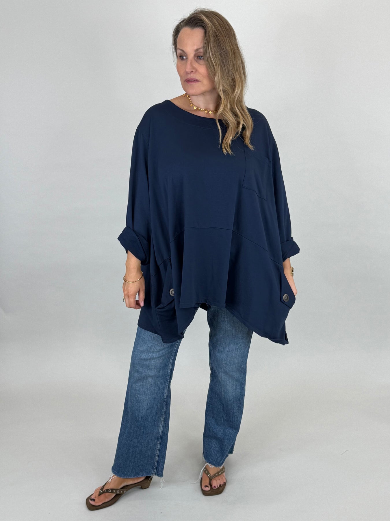 • Made in Italy Lagenlook Lydia Pocket top Top Navy. 92196