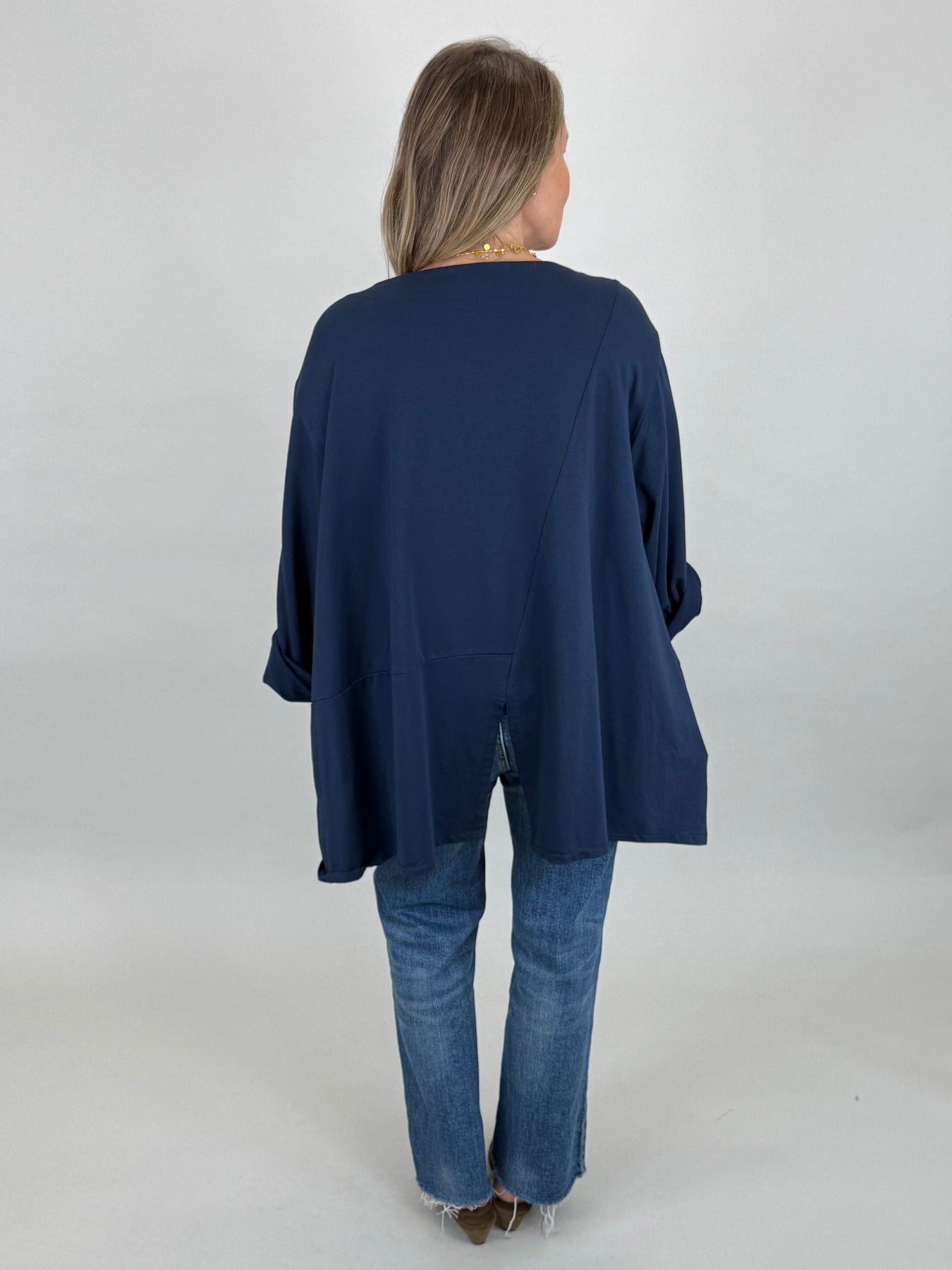 Italian Cotton Lydia Pocket Top – Navy
