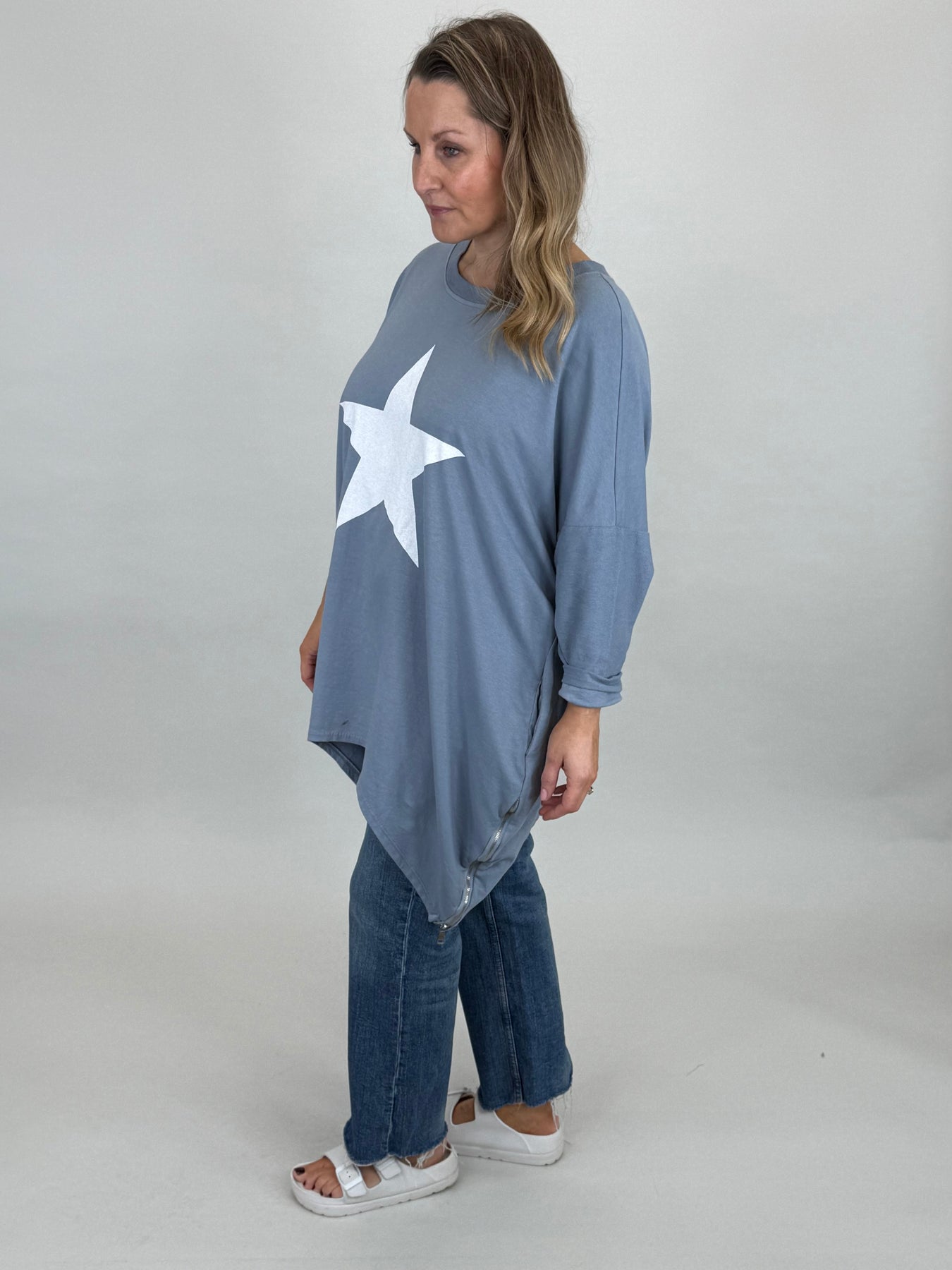 • MADE IN ITALY | Cotton Star Top – Denim | One Size 10–26UK