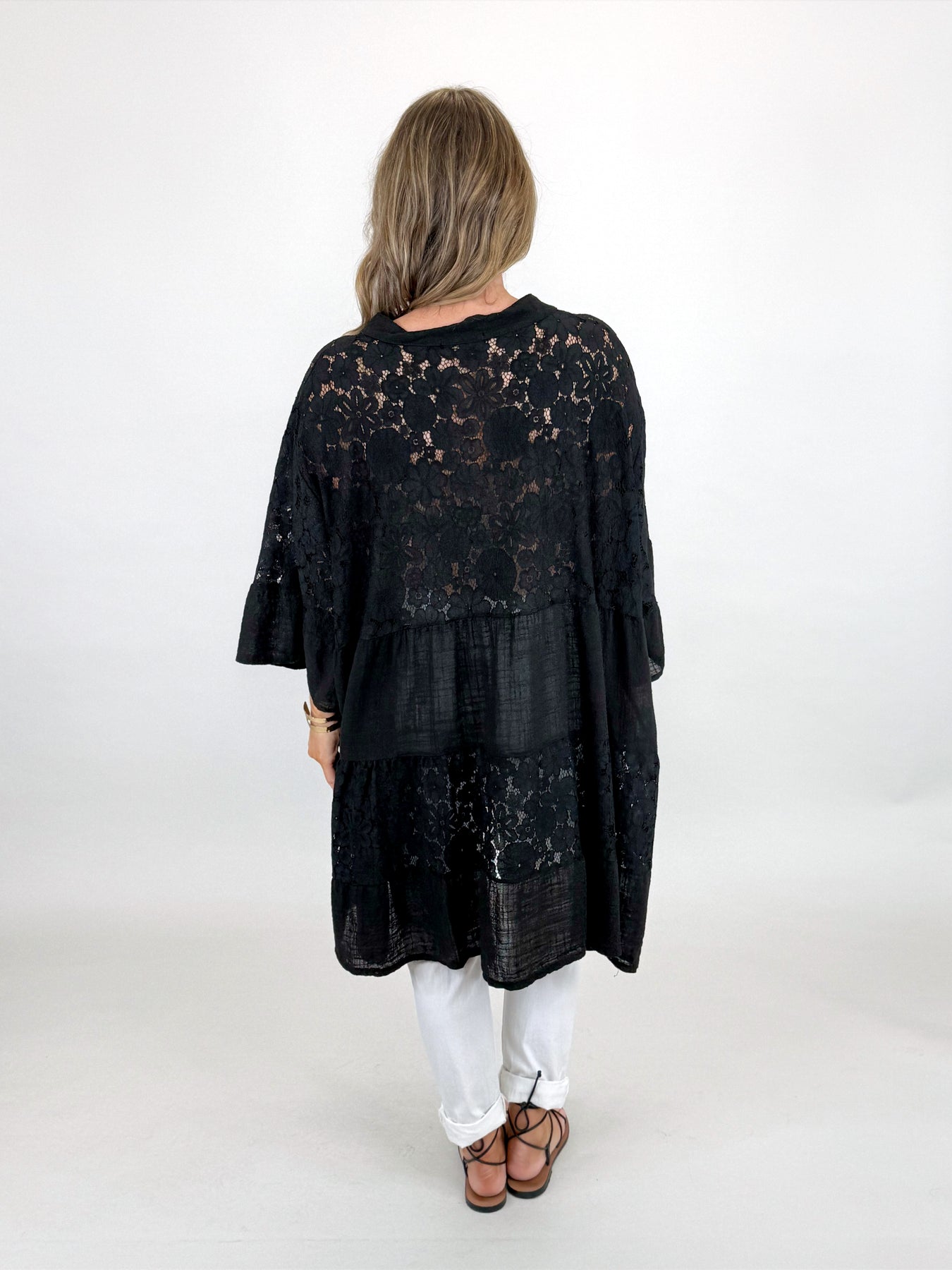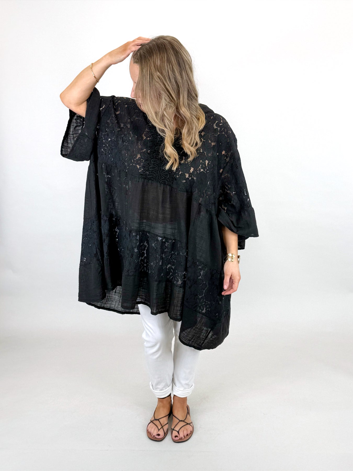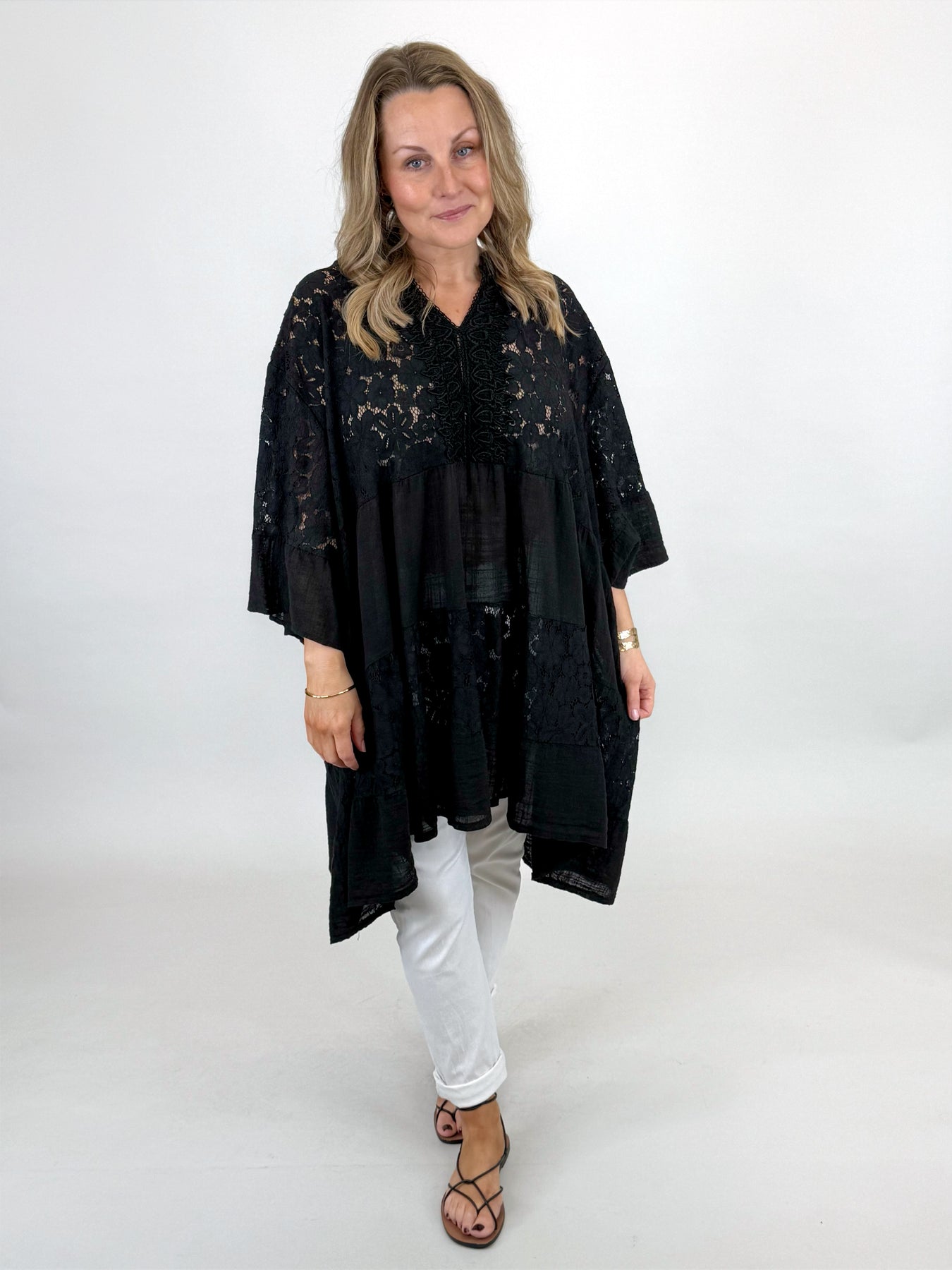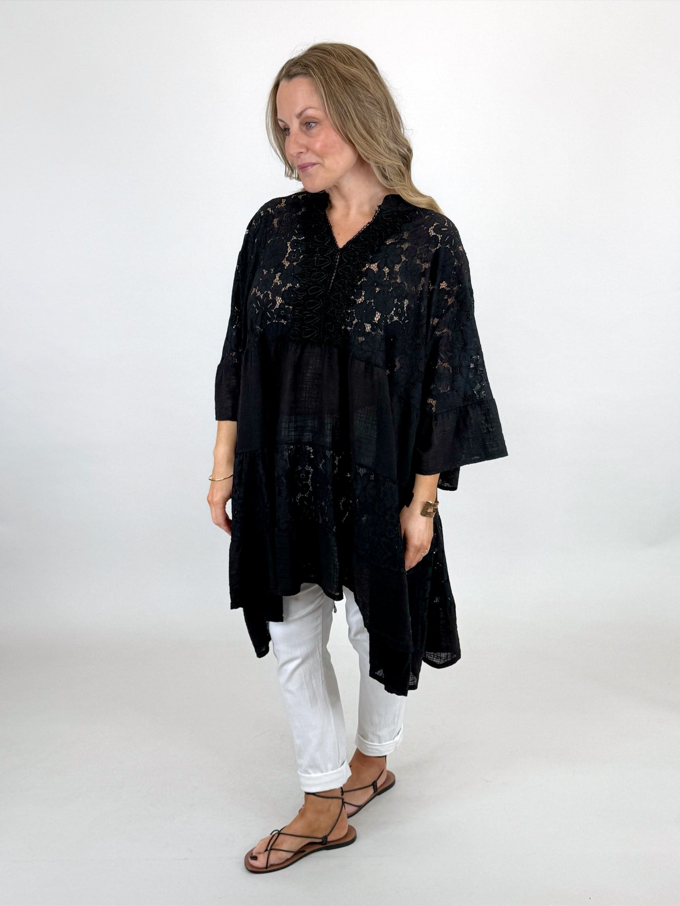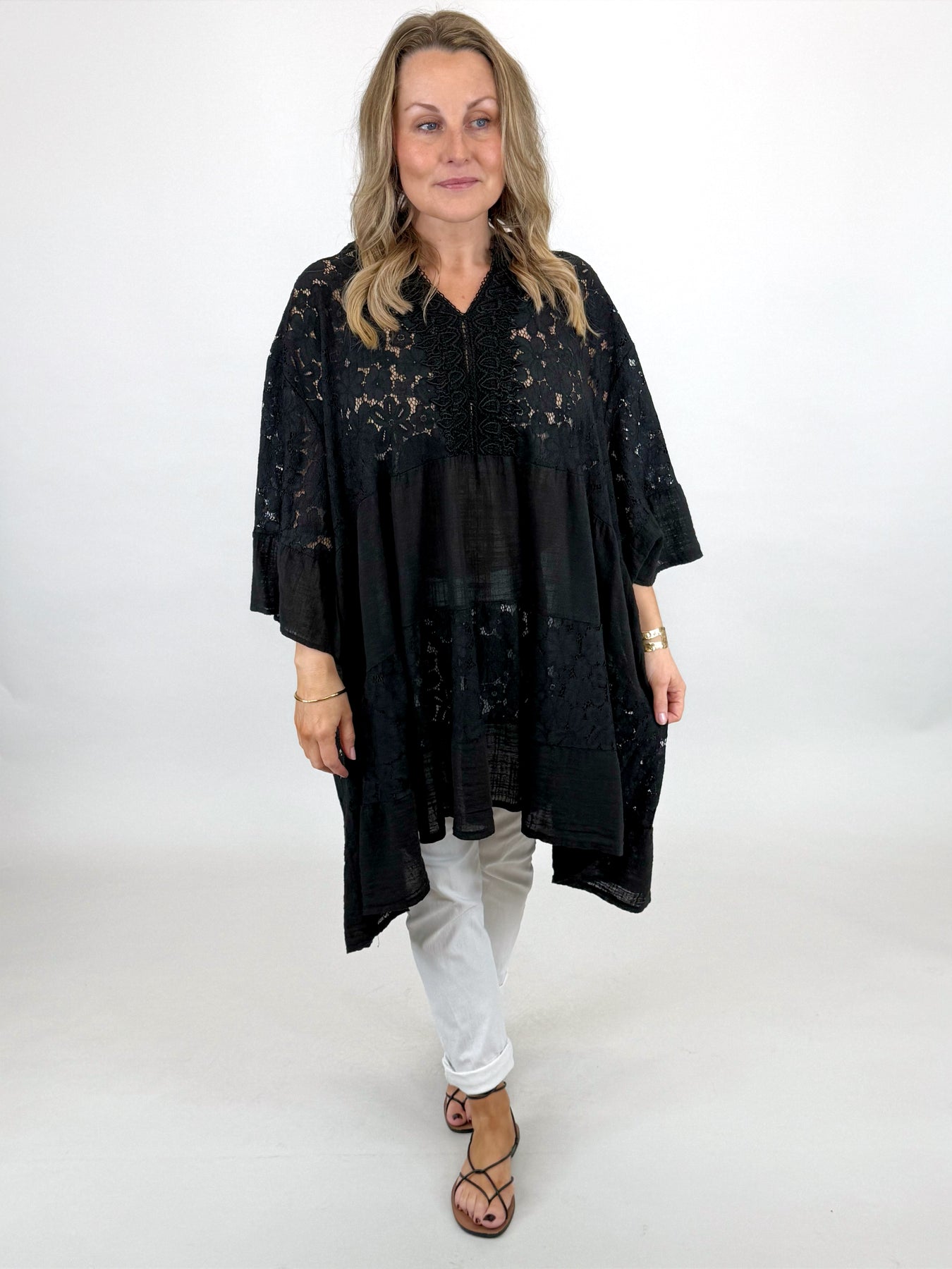 Lagenlook Palermo Lace V- Neck Top | Black. 91268