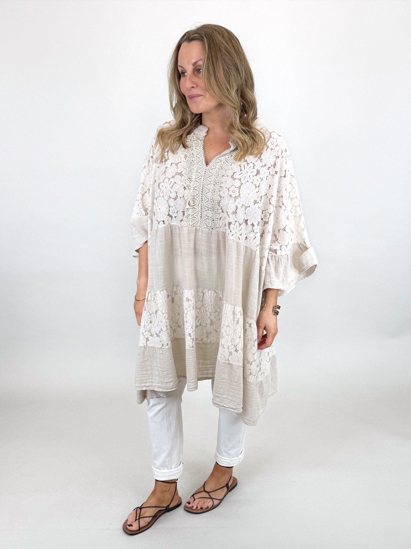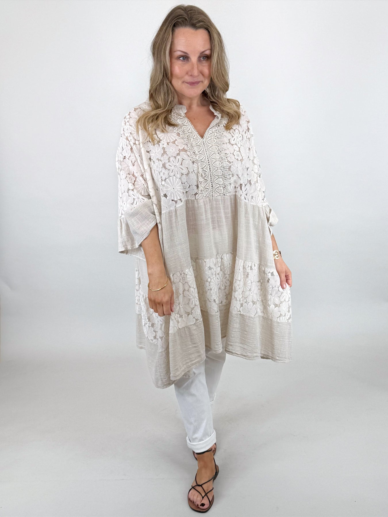 Lagenlook Palermo Lace V- Neck Top | Cream. 91268