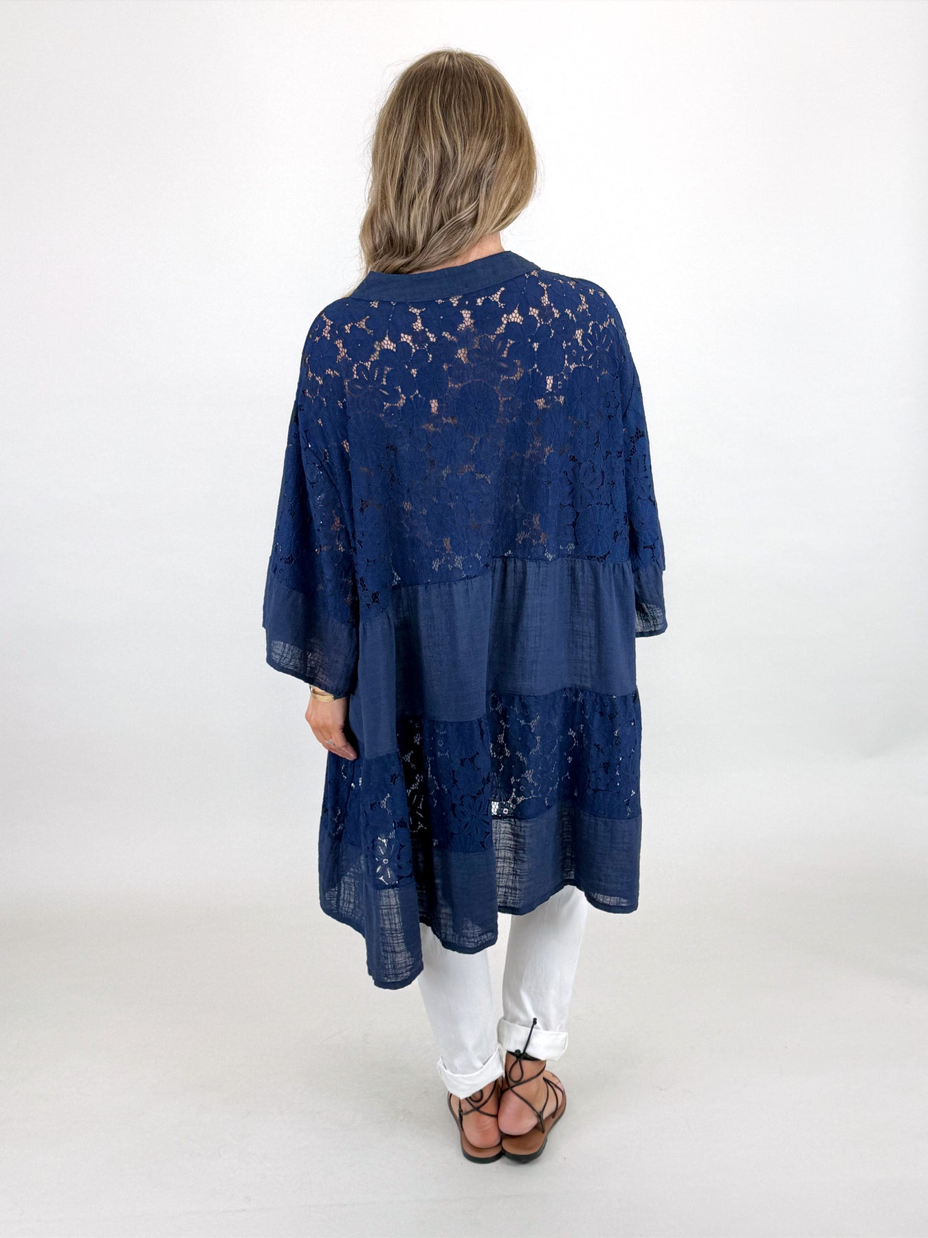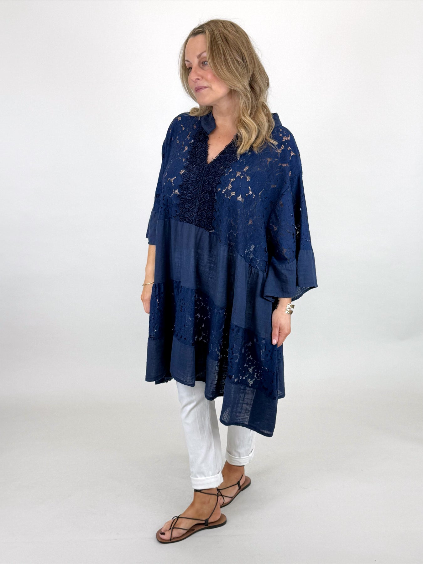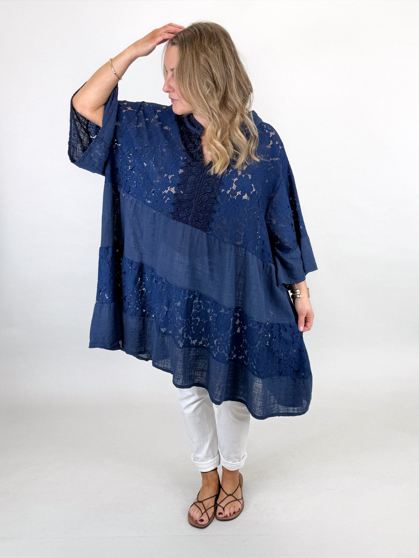 Lagenlook Palermo Lace V- Neck Top | Navy. 91268
