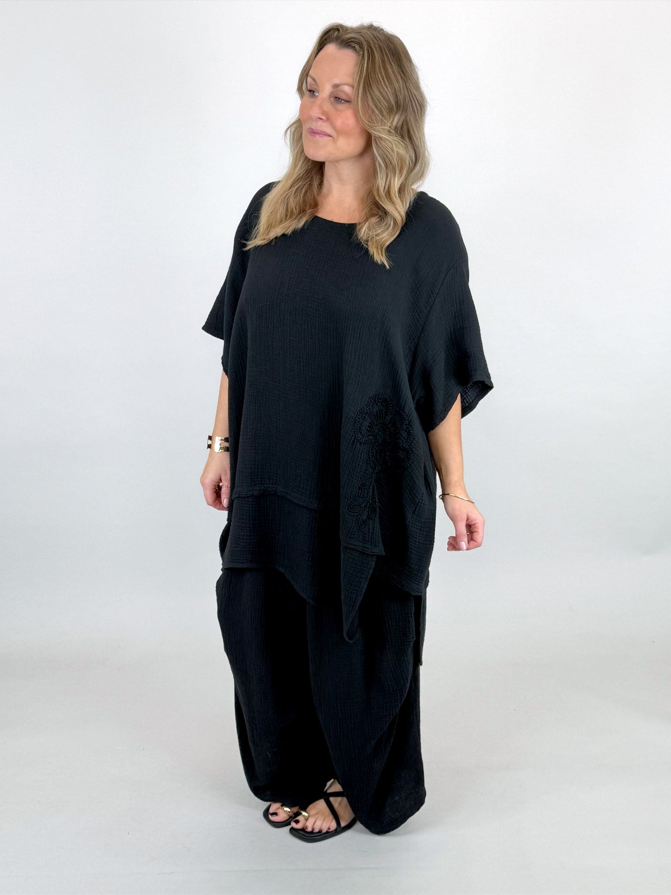 MADE IN ITALY | Cotton Ria Flower Top – Black |6589