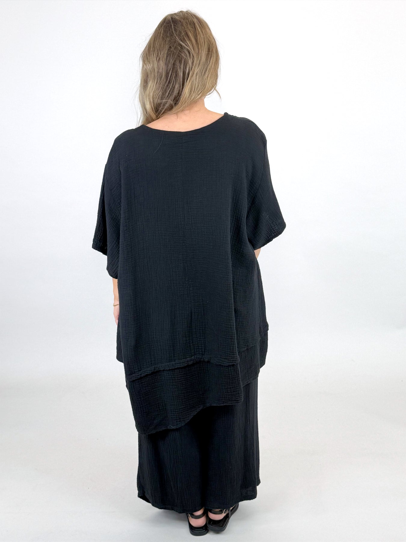 • MADE IN ITALY | Cotton Ria Flower Top – Black |6589