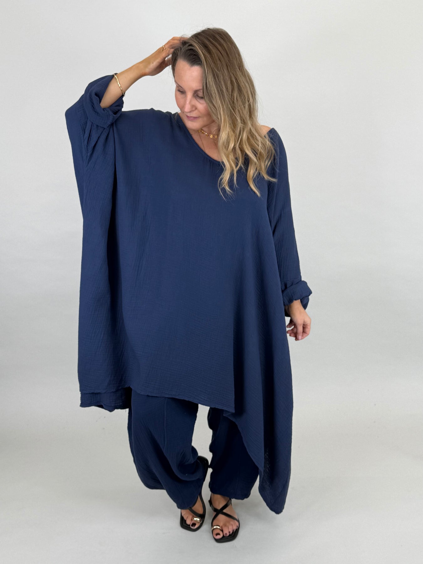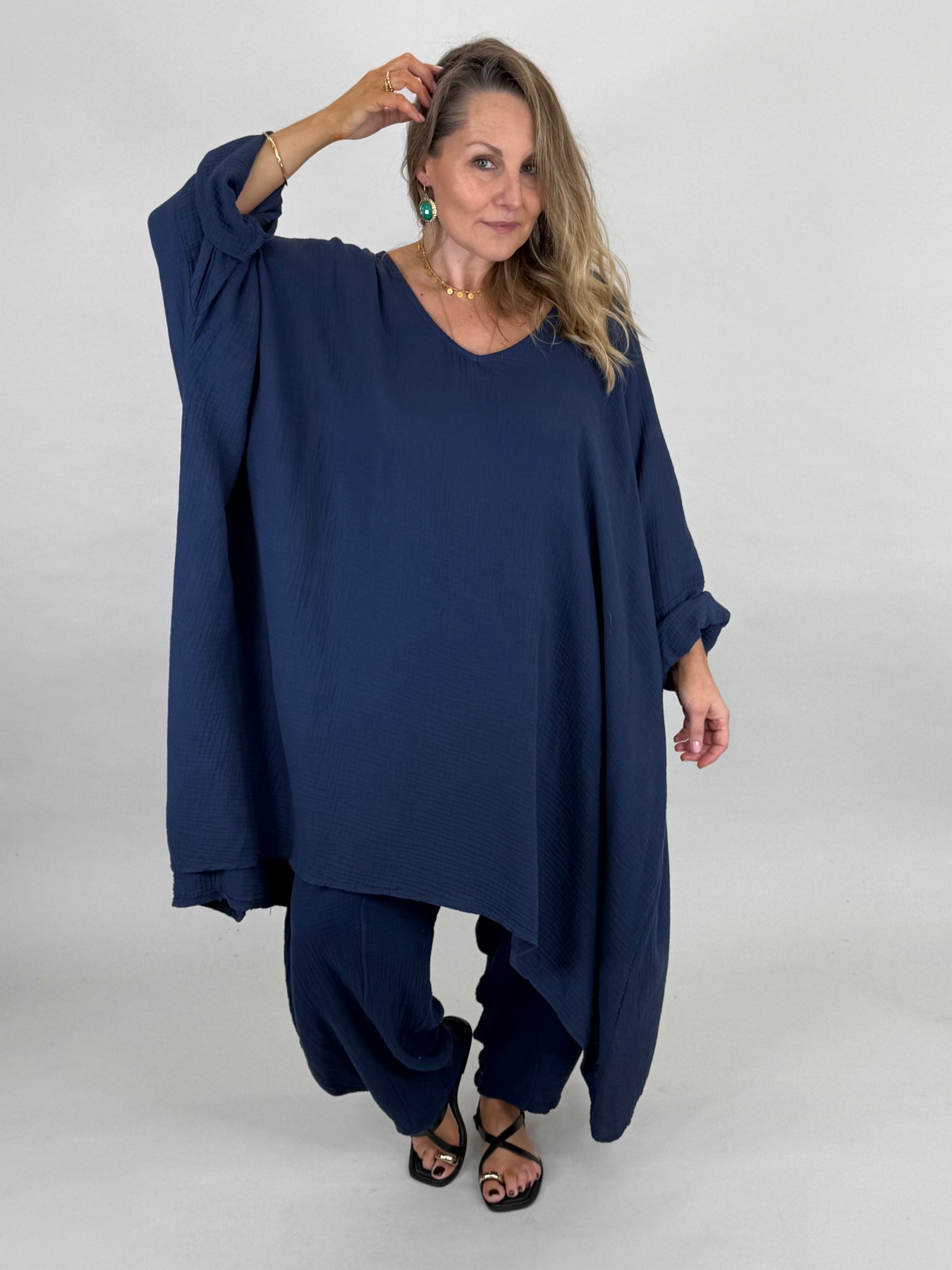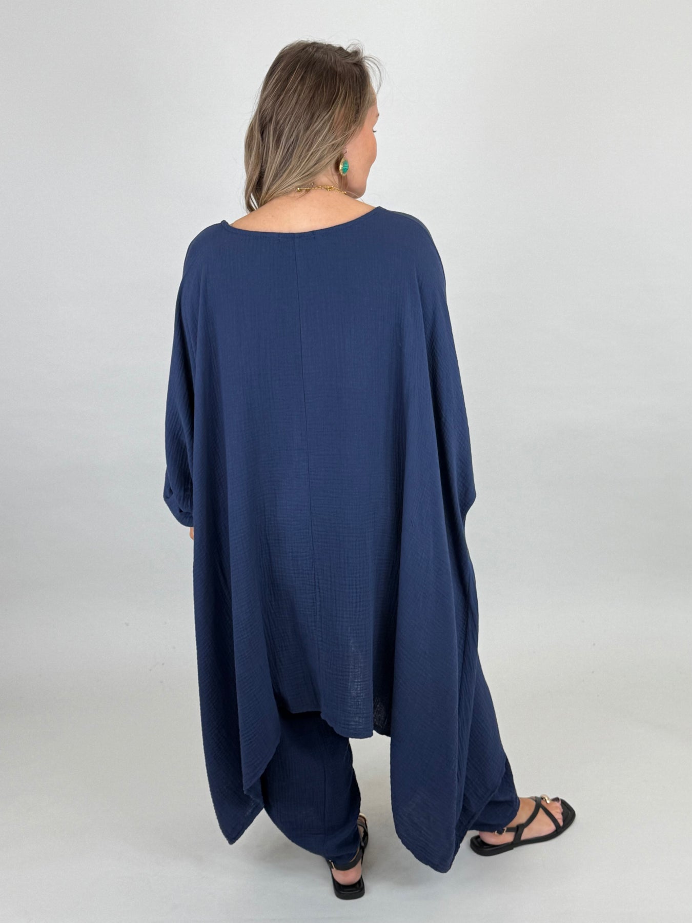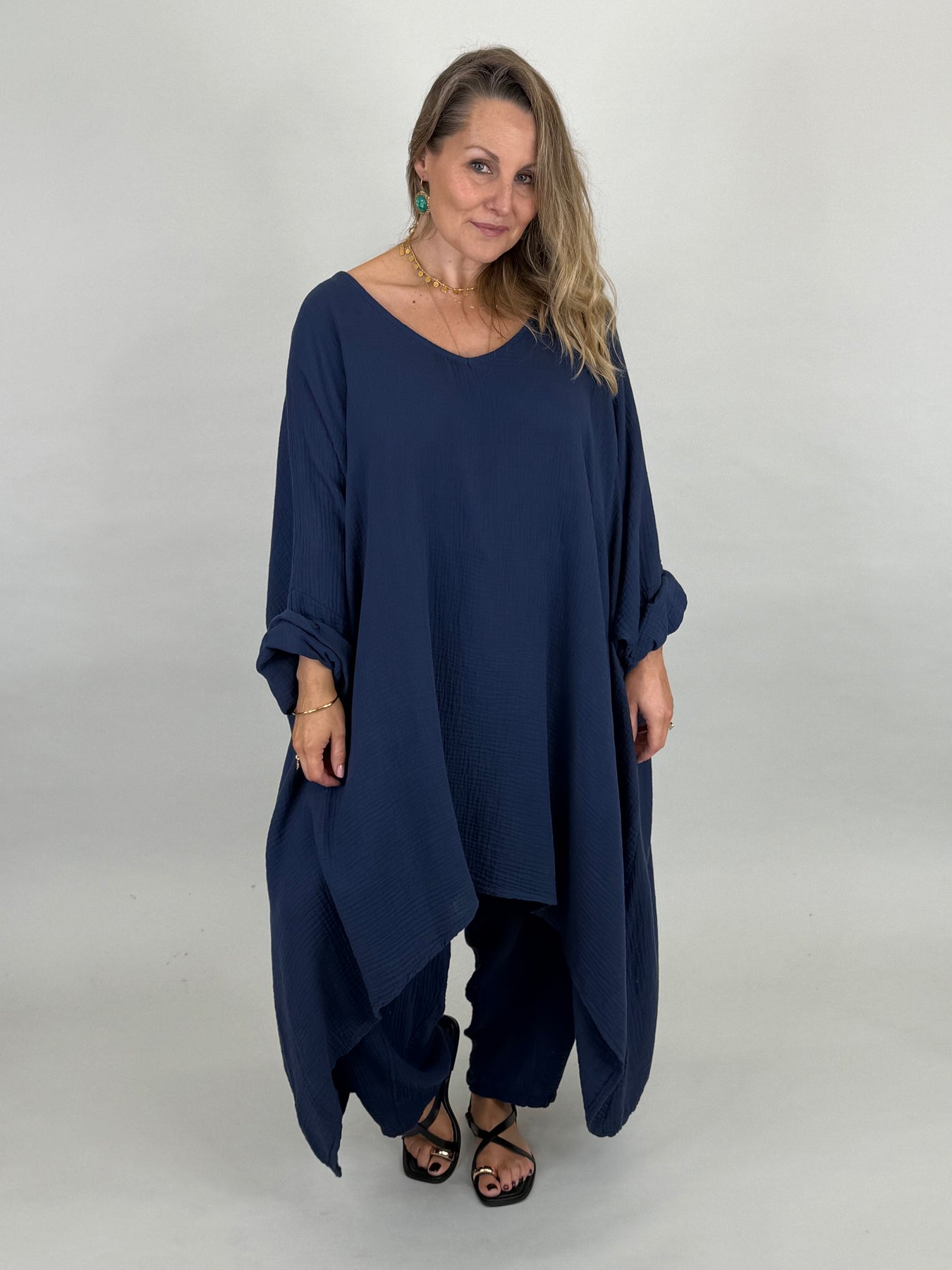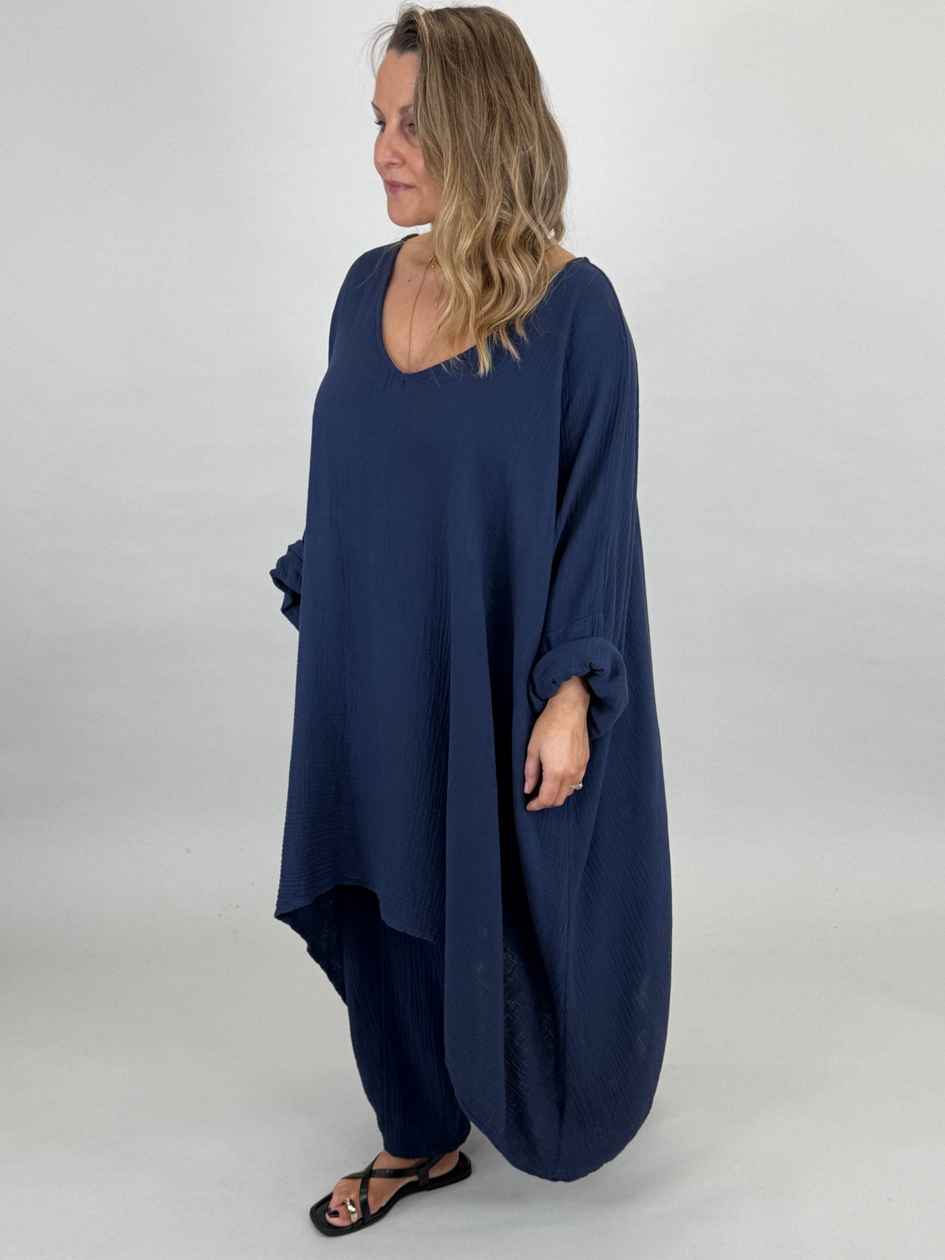 • MADE IN ITALY | Cotton Serena V Neck Top – Navy | One Size 10–30UK