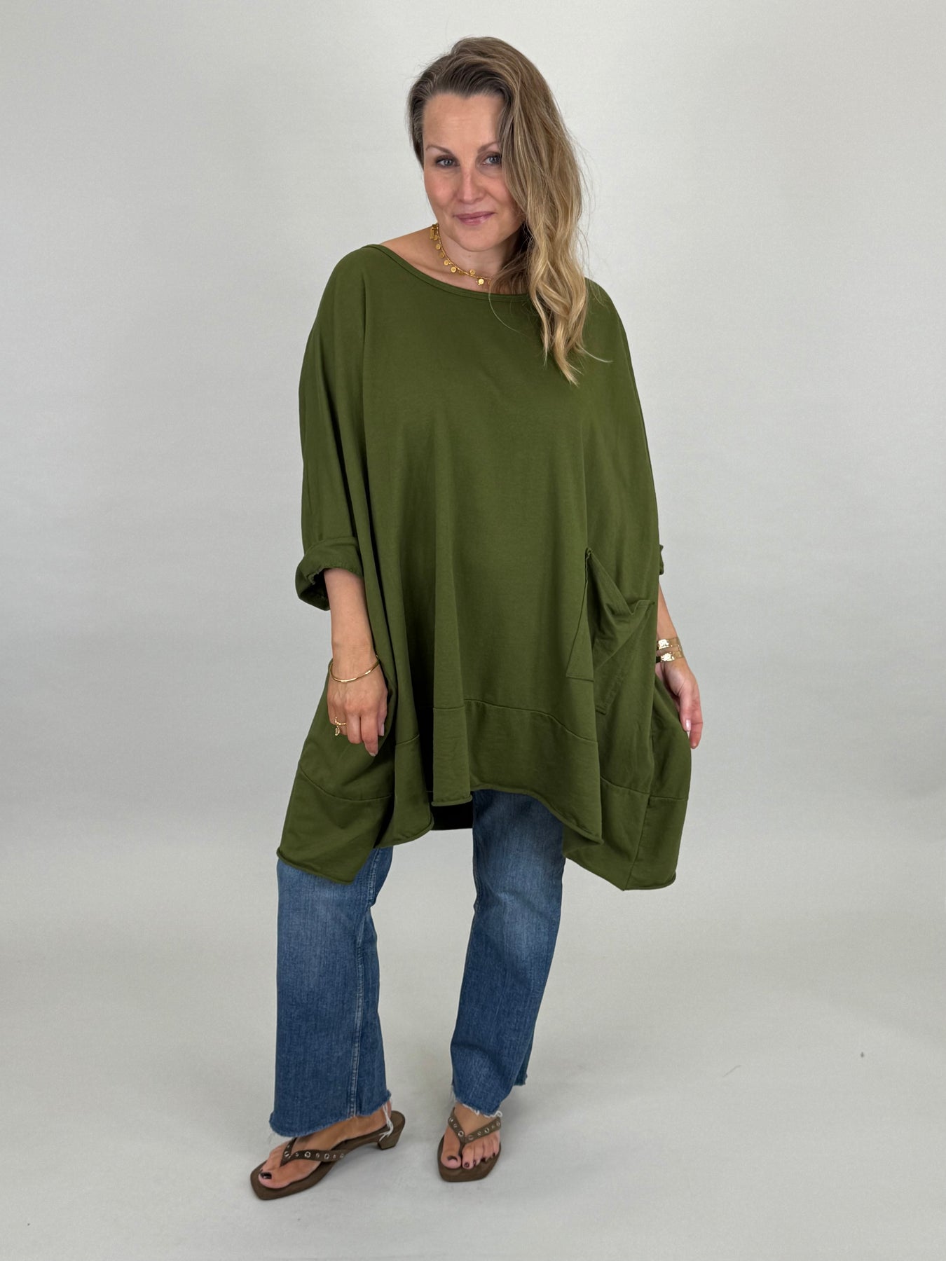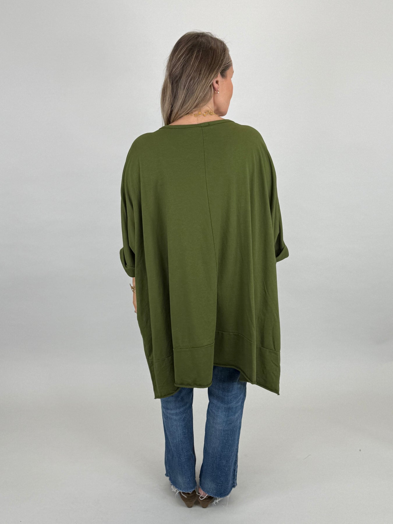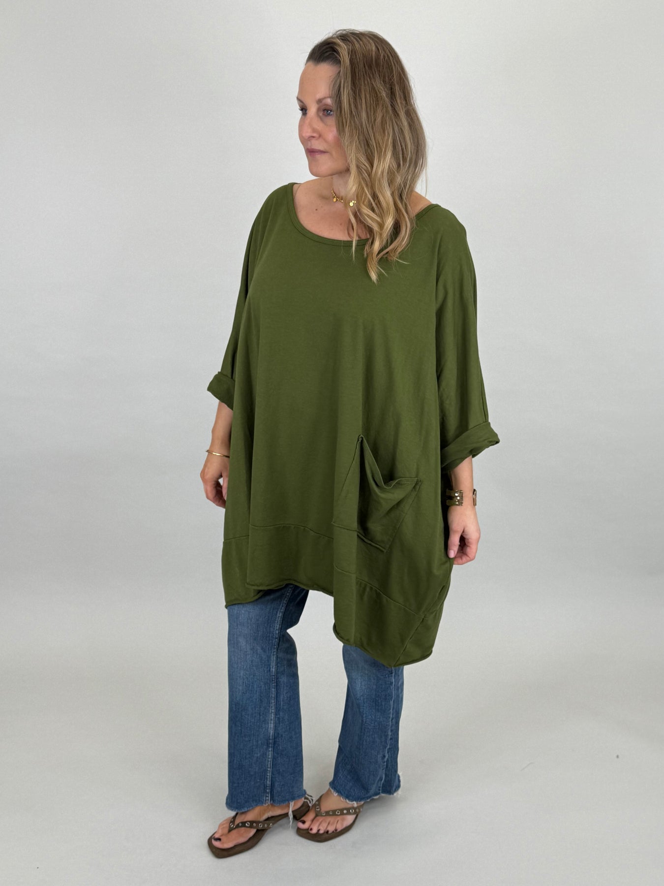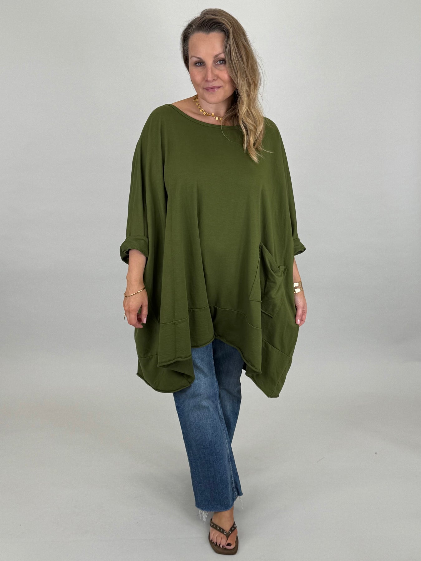 Made in Italy Emily Oversized Pocket Top | Dark Olive| 00238