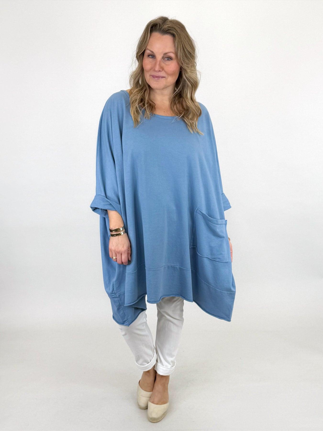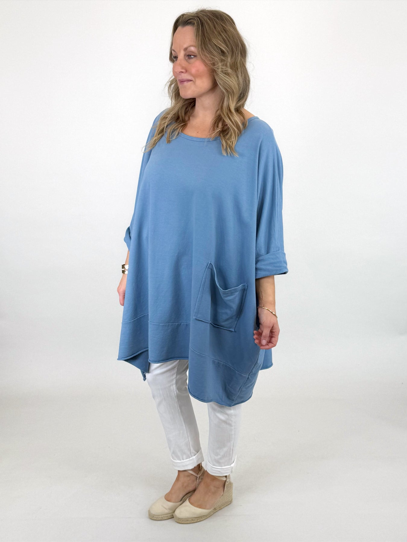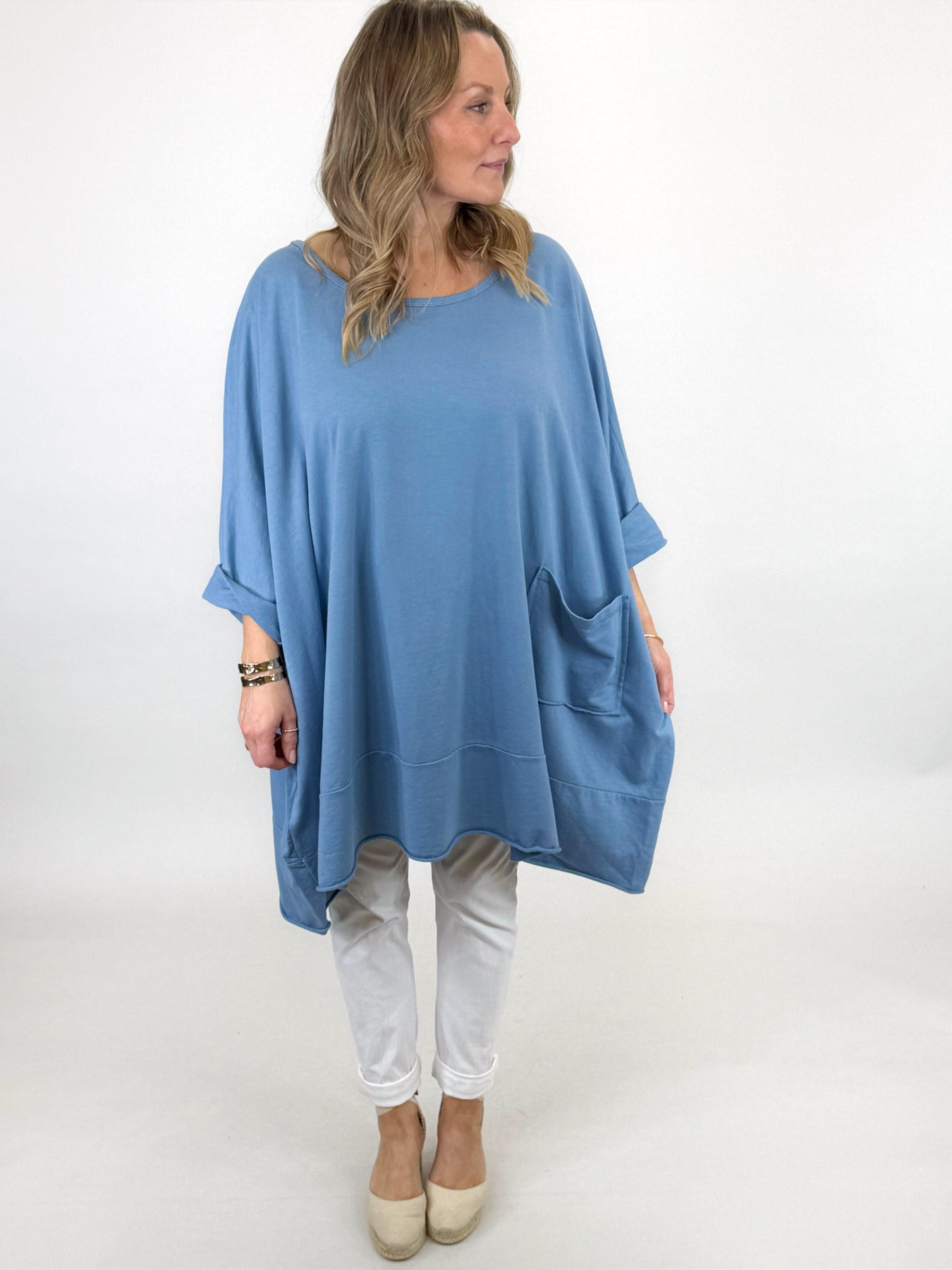 Made in Italy Emily Oversized Pocket Top | Denim| 00238