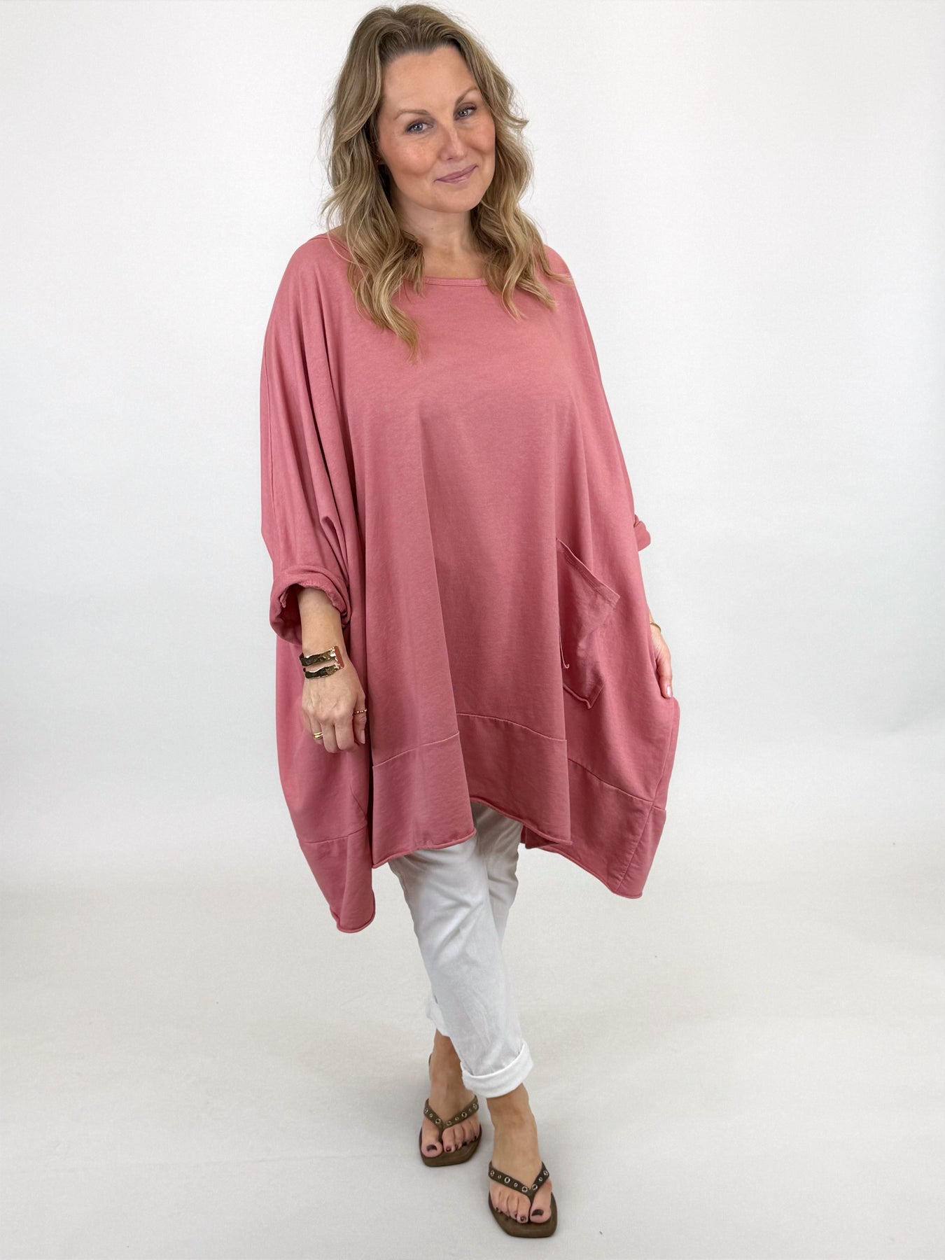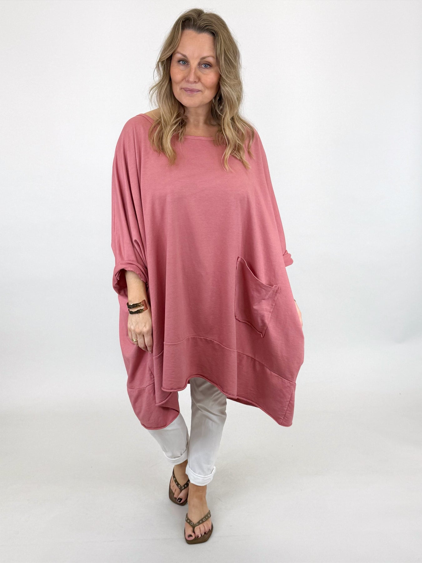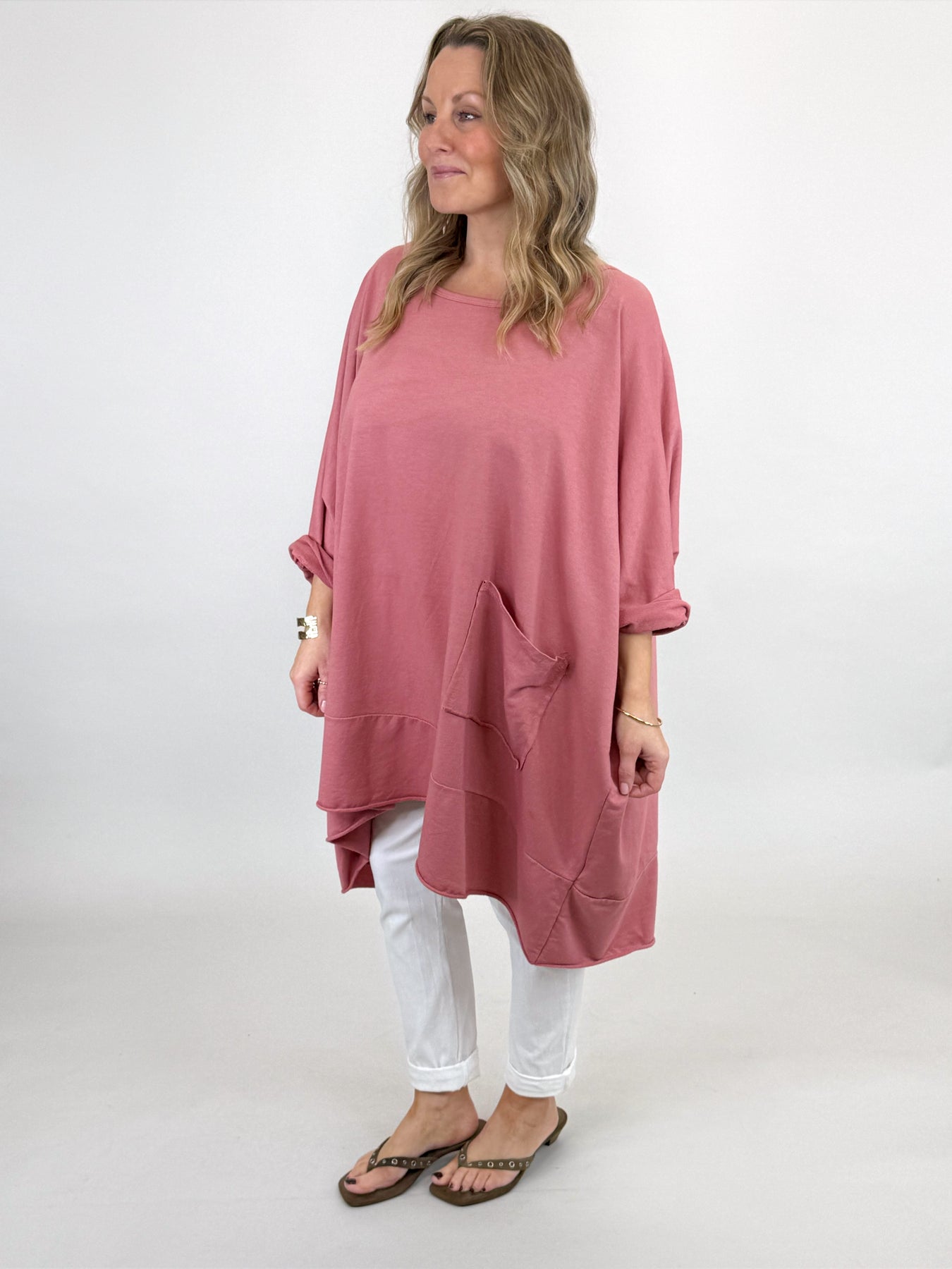 Made in Italy Emily Oversized Pocket Top | Old Rose| 00238