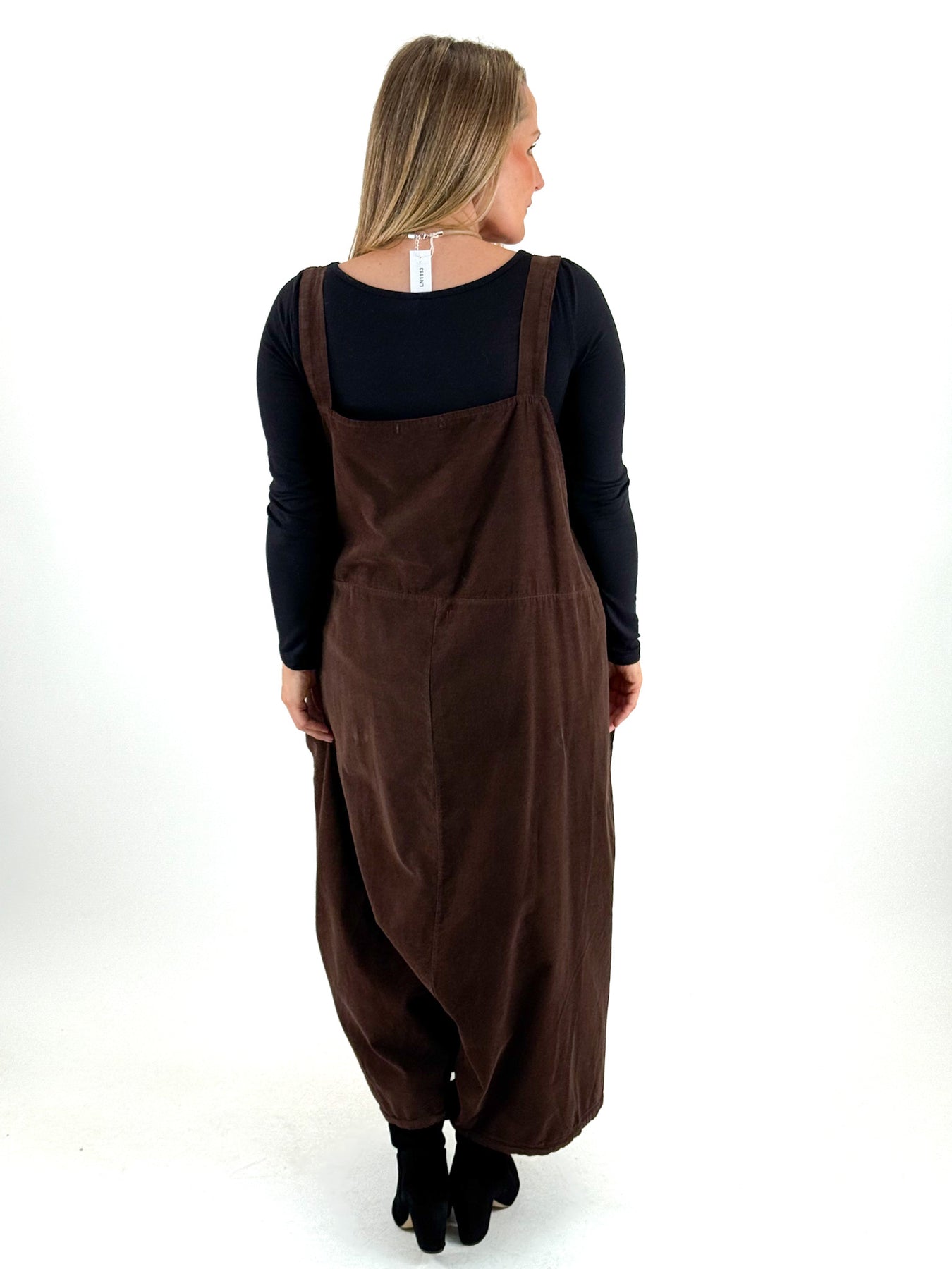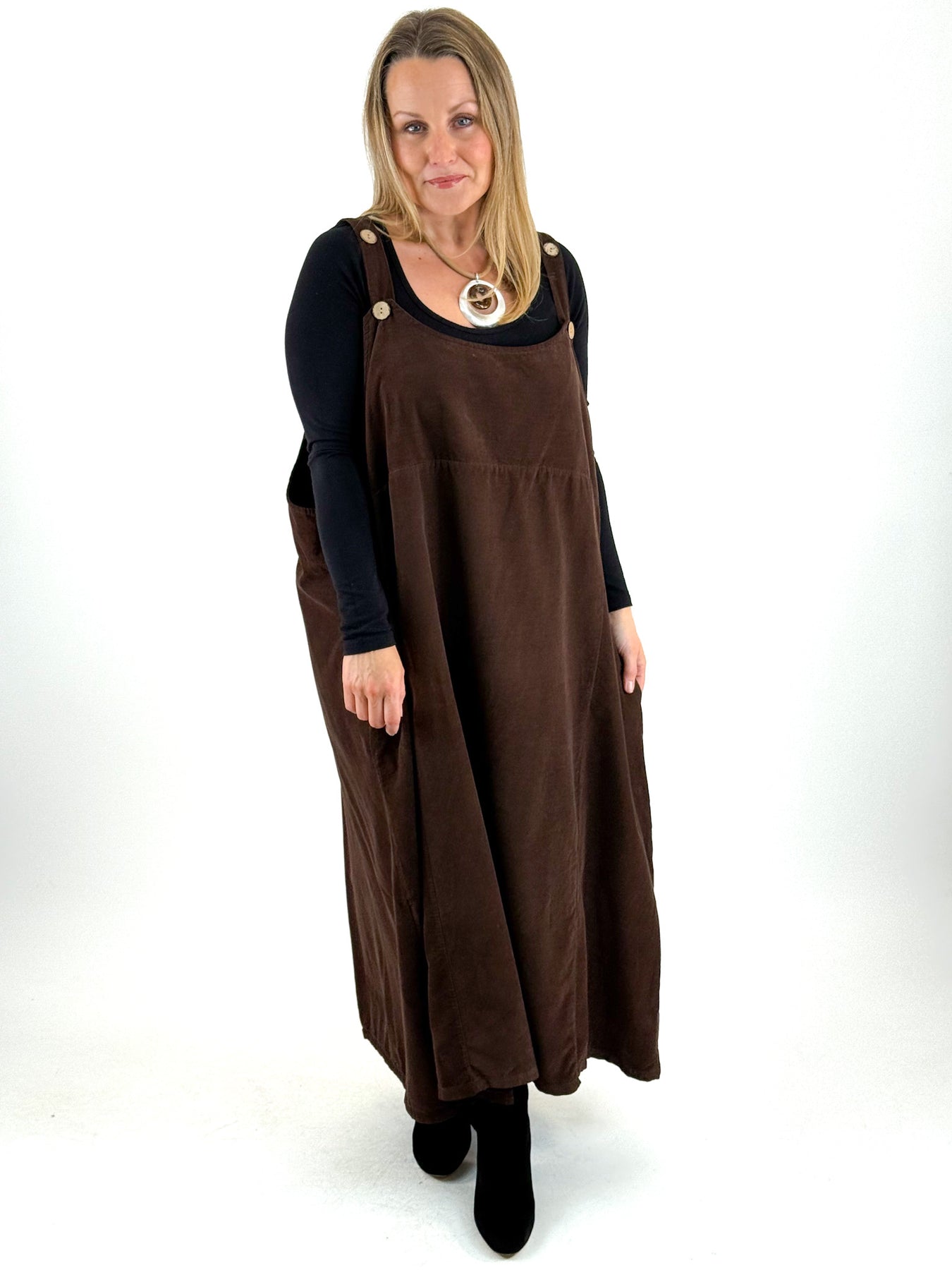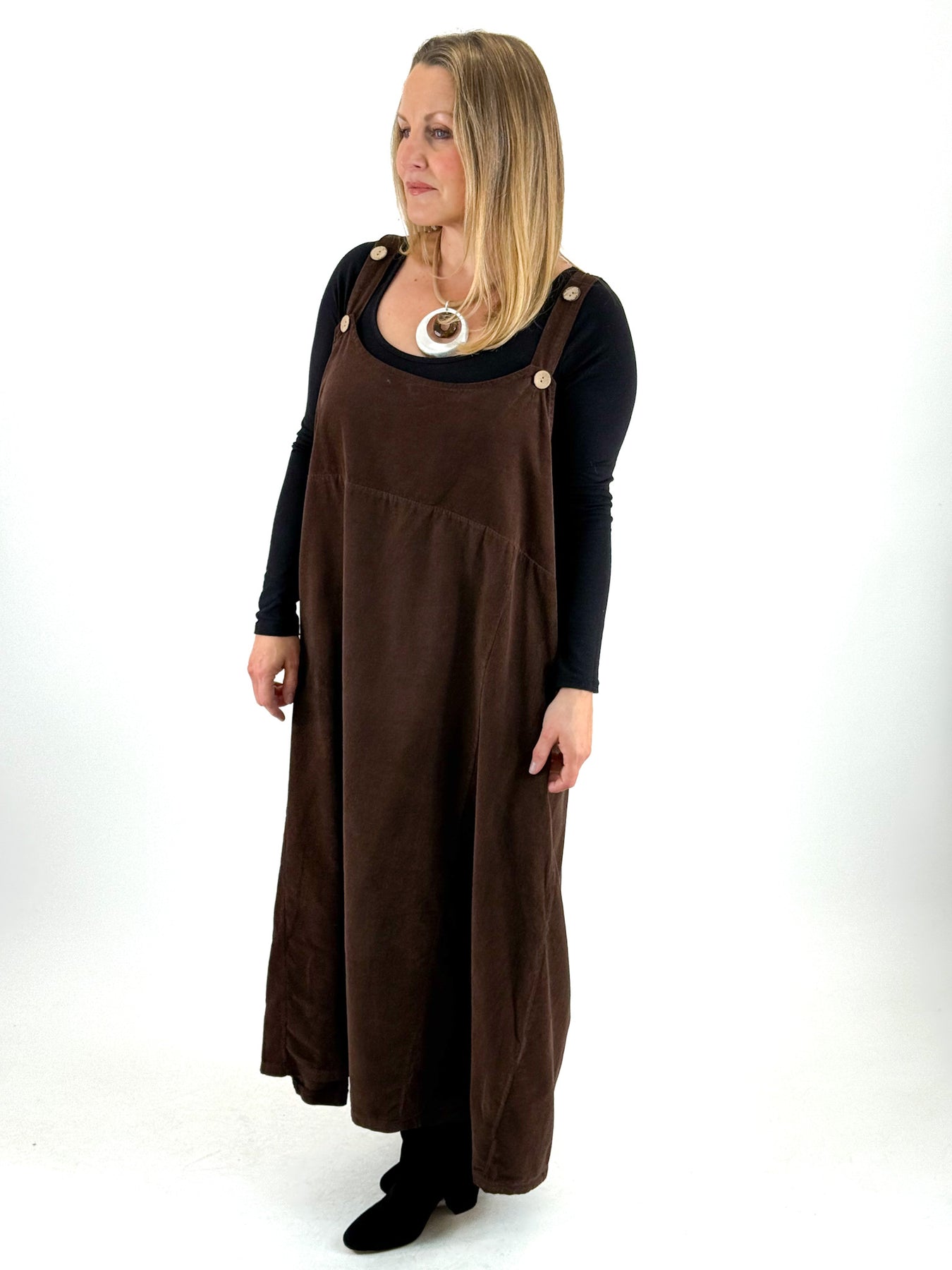 - Made in Italy Lagenlook Penny Pinafore Corduroy Dress in Chocolate. 91706