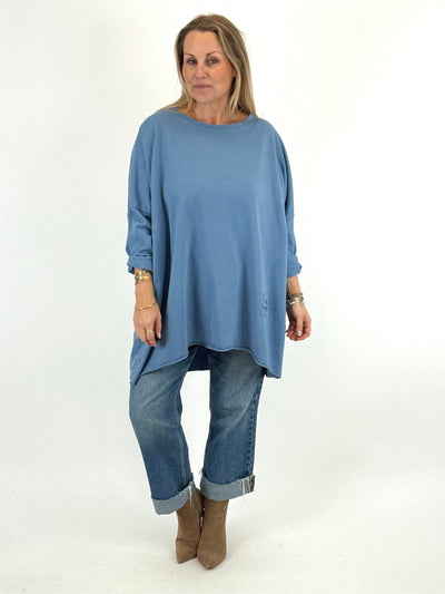 Made in Italy Lagenlook Ruby Plain Sweatshirt Top in Denim. code 01307
