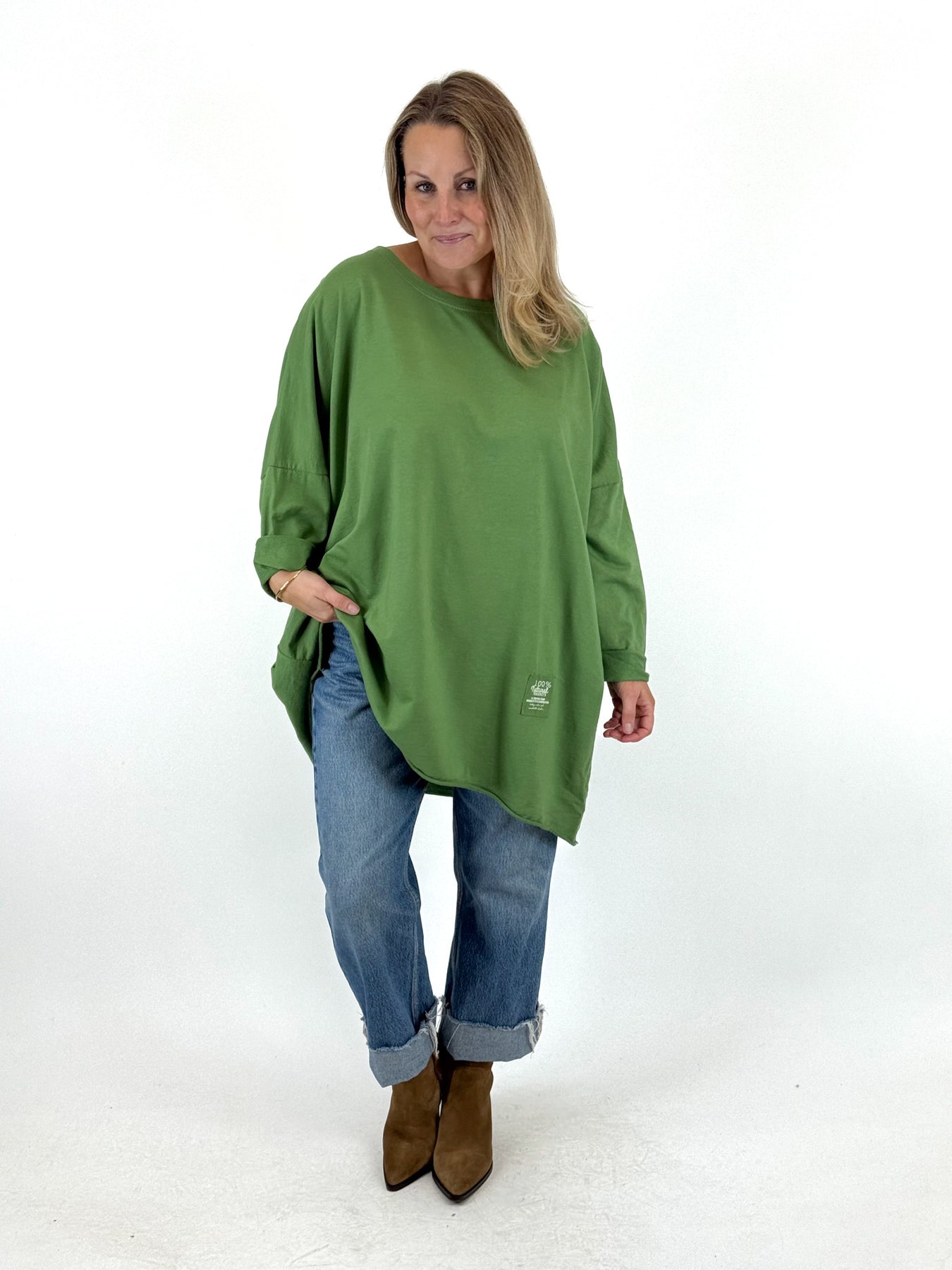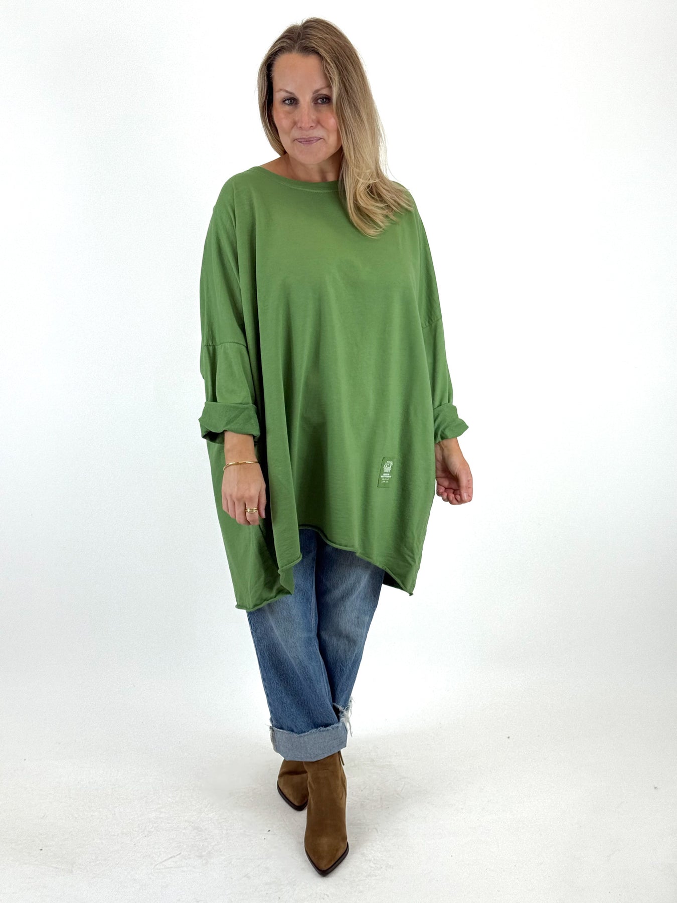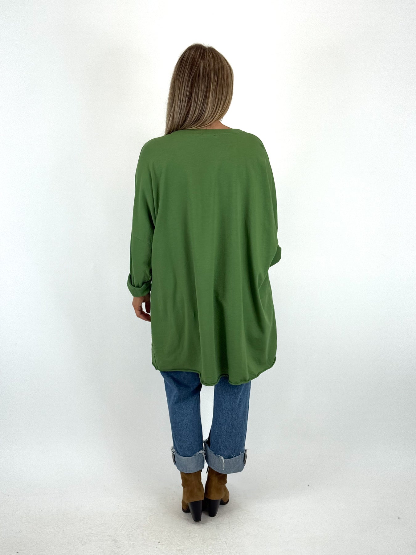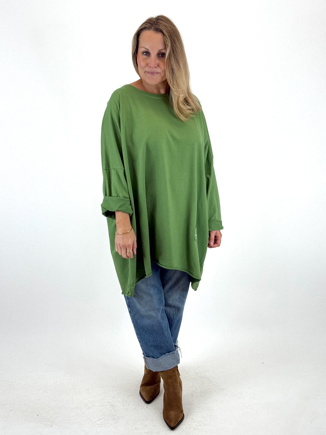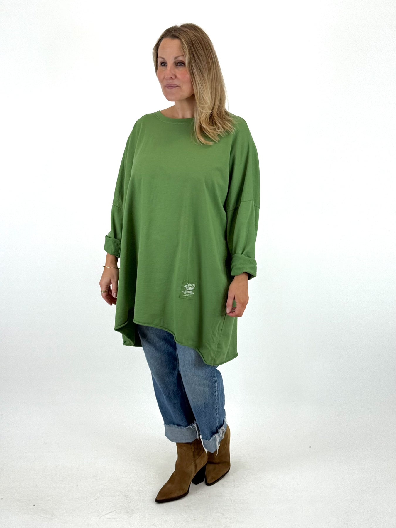 Made in Italy Lagenlook Ruby Plain Sweatshirt Top in Fern Green. 01307