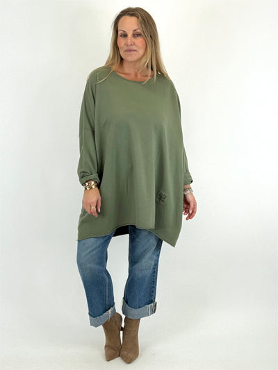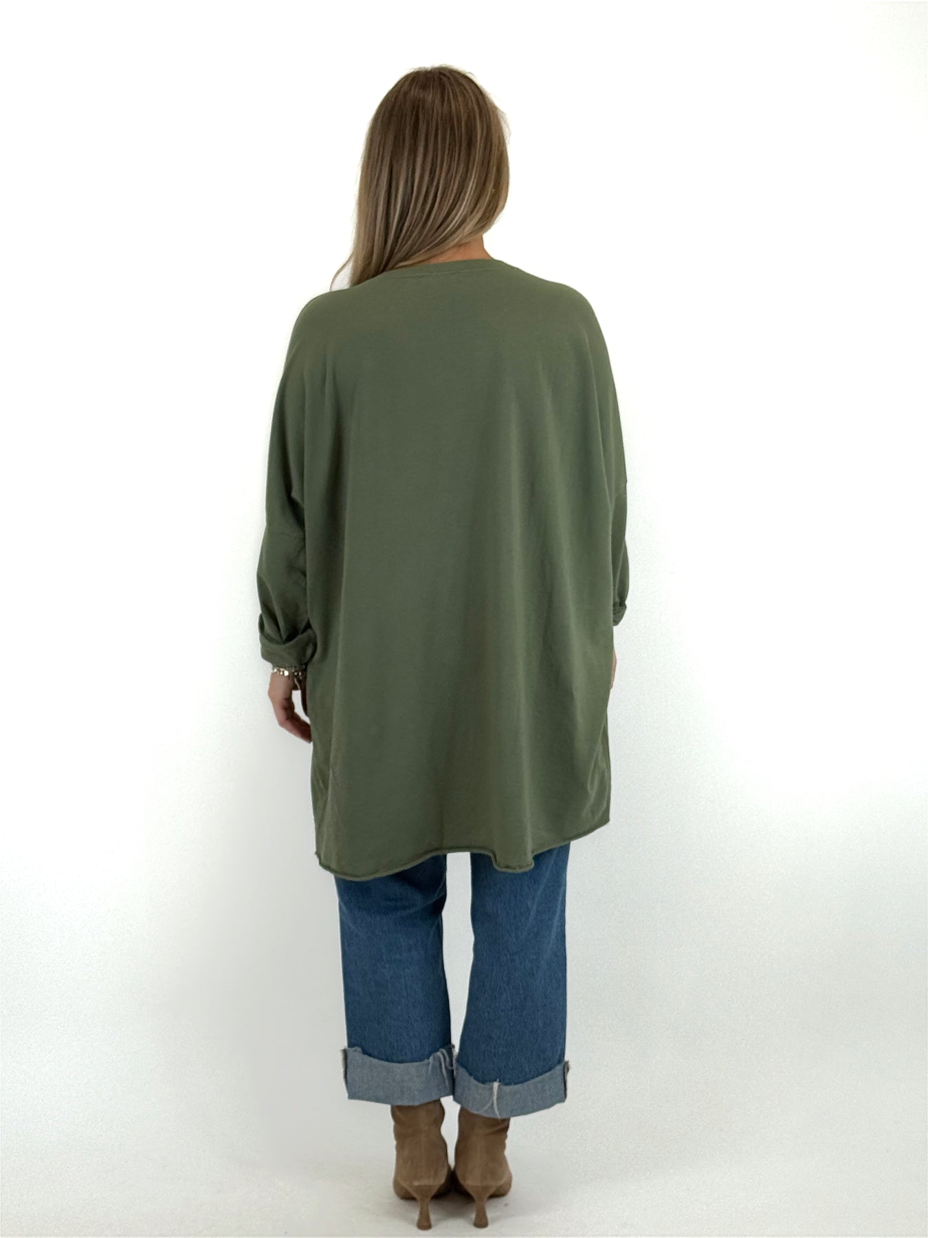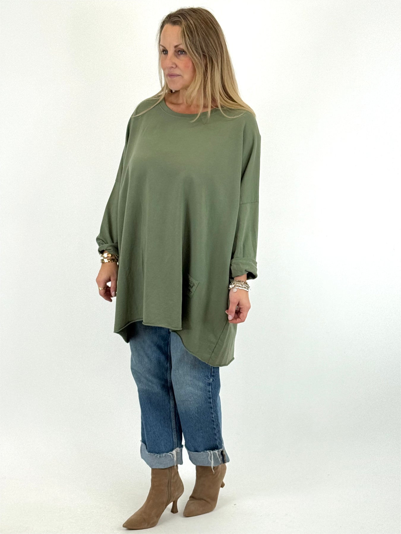 Made in Italy Lagenlook Ruby Plain Sweatshirt Top in Khaki. code 01307