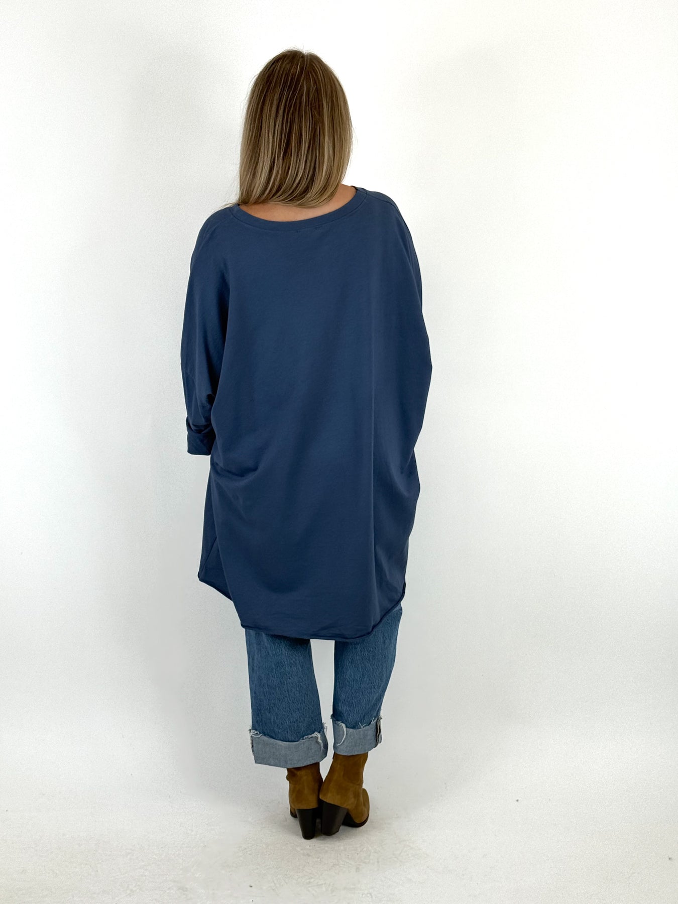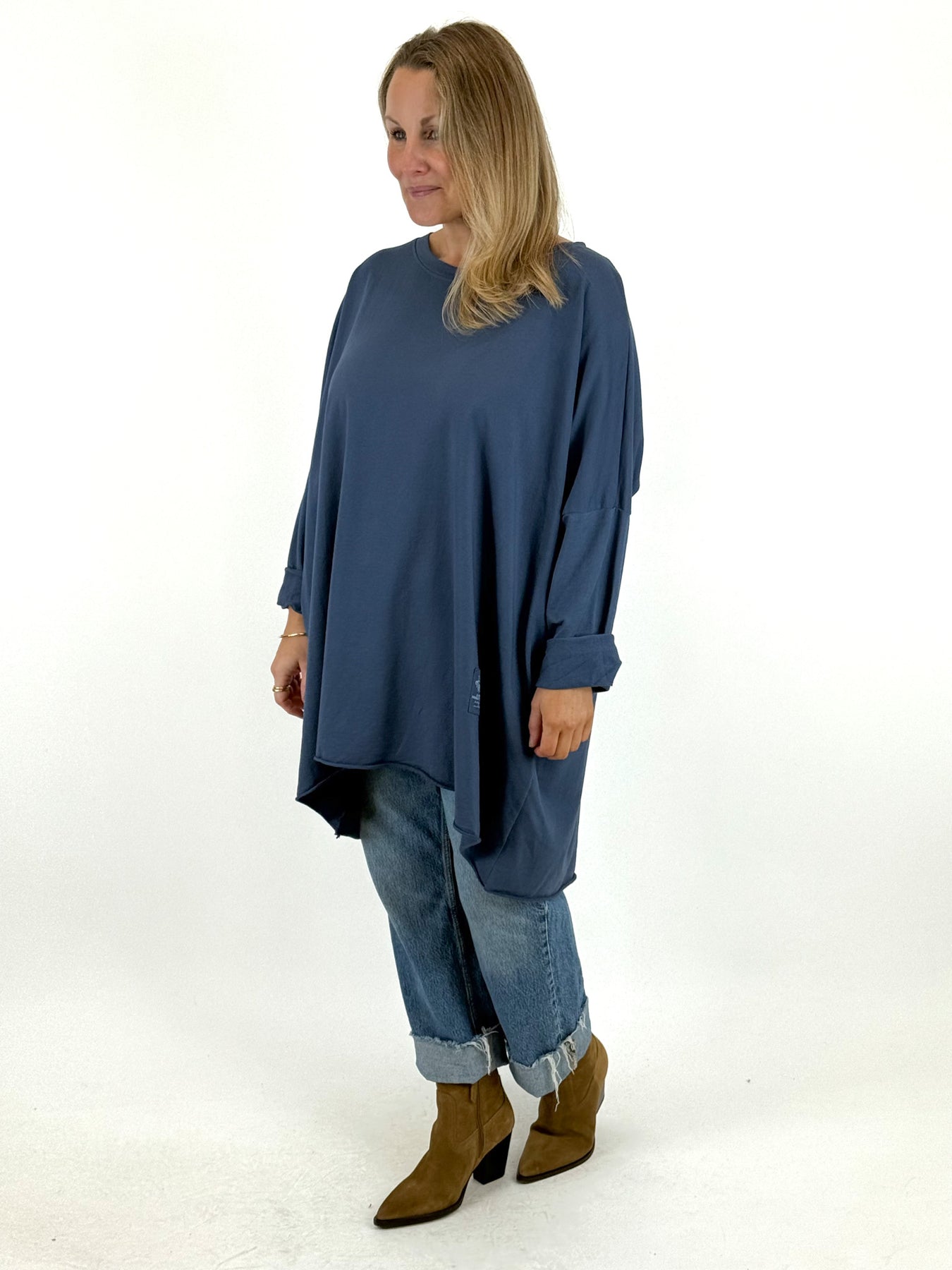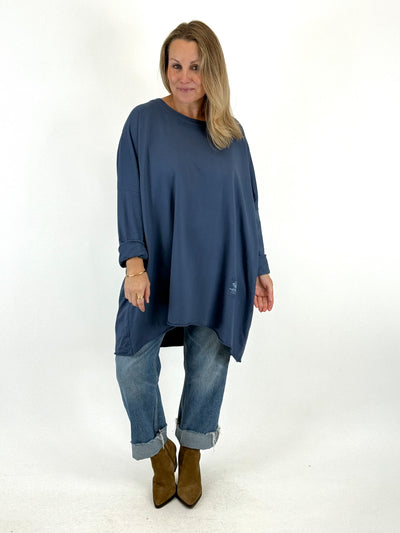 Made in Italy Lagenlook Ruby Plain Sweatshirt Top in New Denim. code 01307