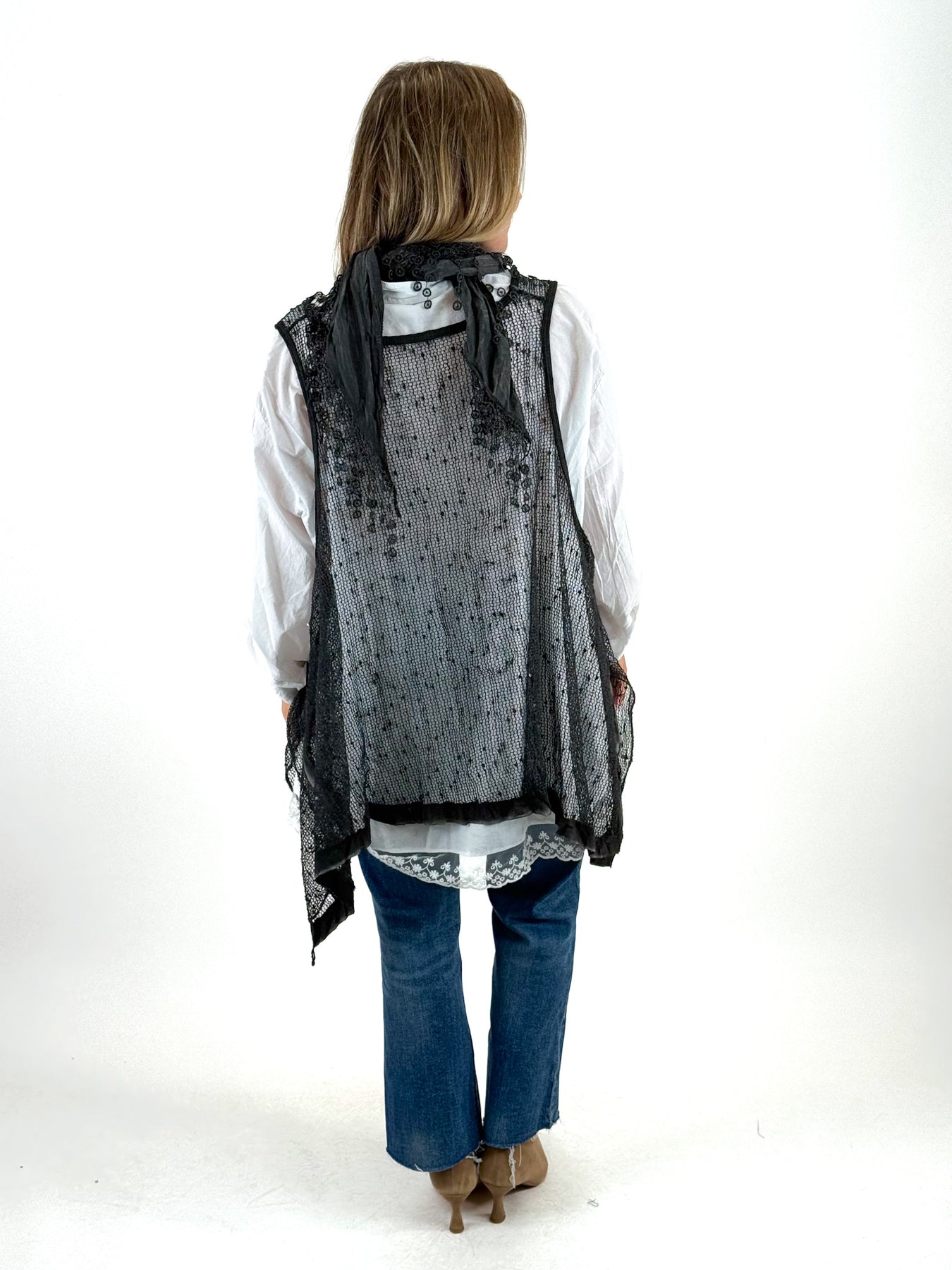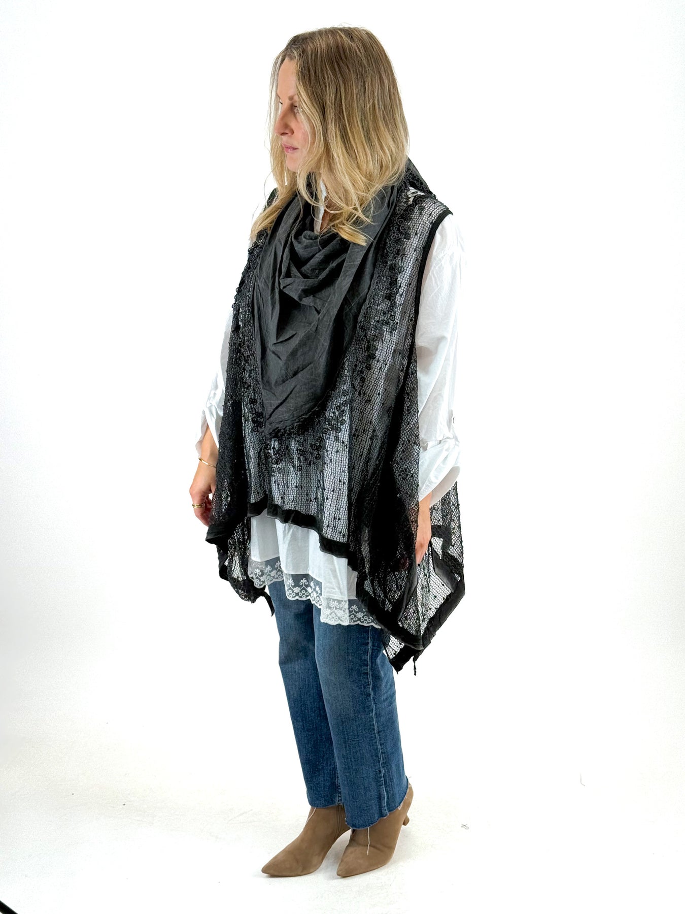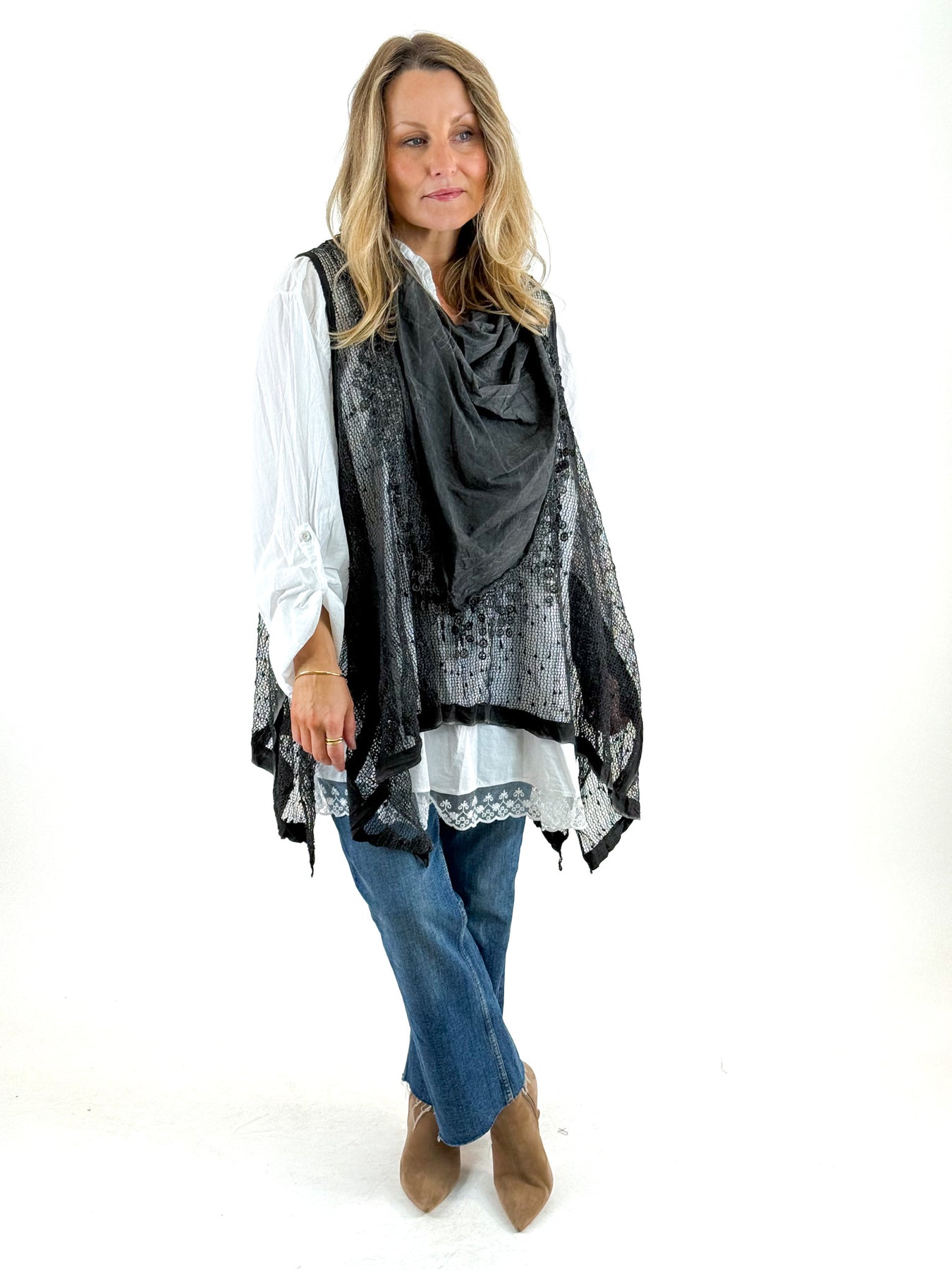 - Made in Italy Lagenlook Scarf Popcorn Shirt Top in Black Coal. 7990