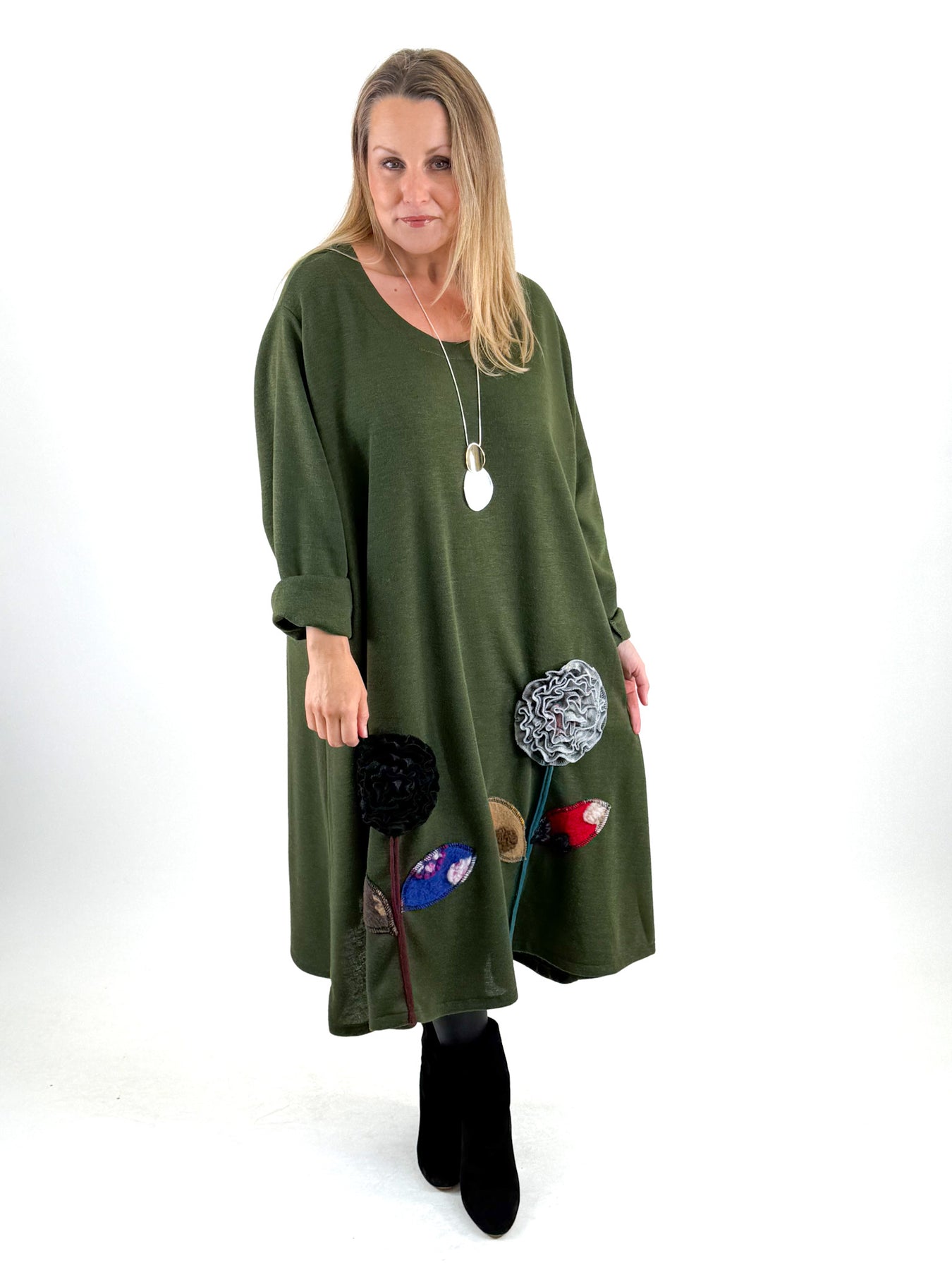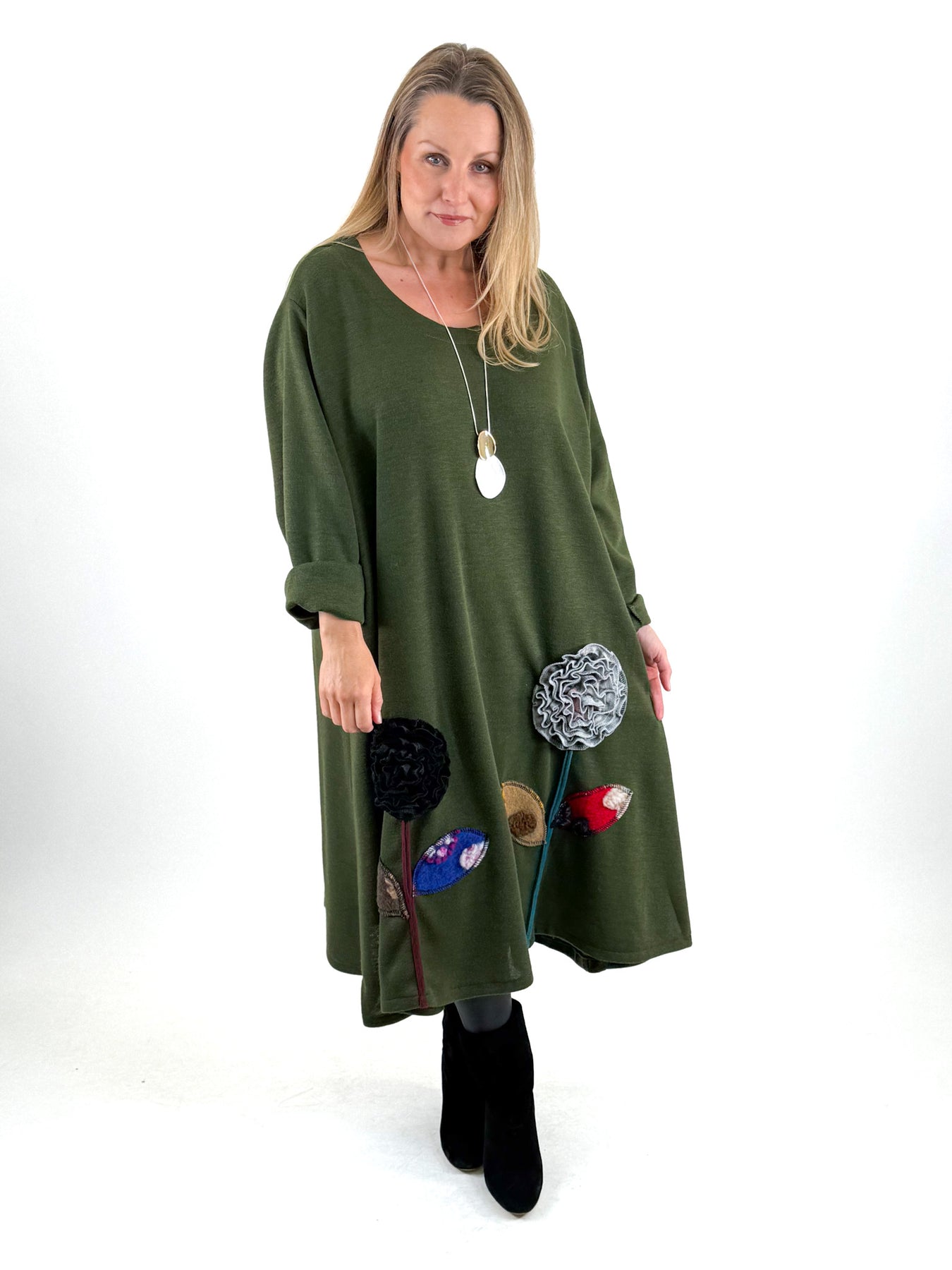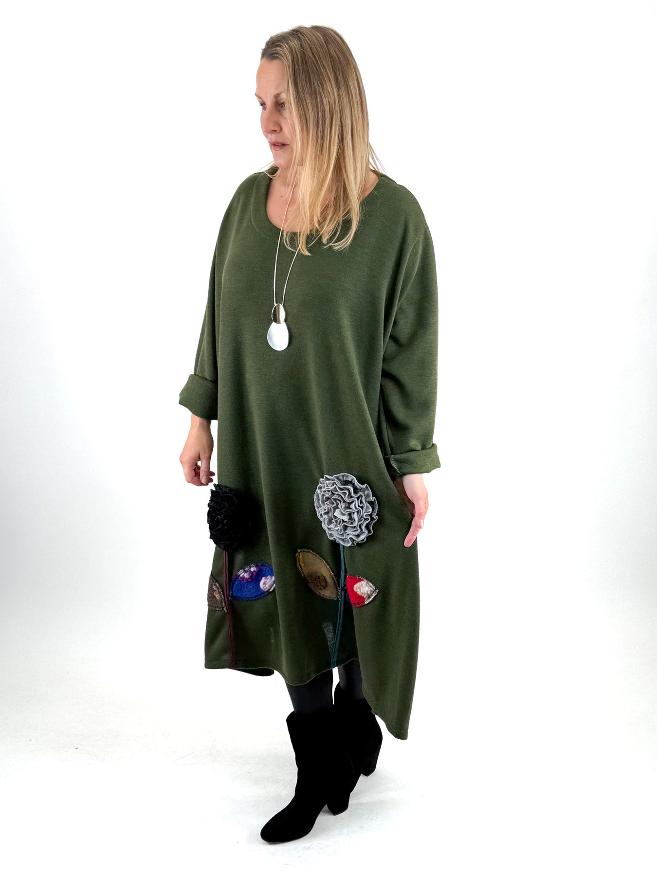 - Made in italy Lagenlook Victoria Flower Hem Top in Forest. code 90861