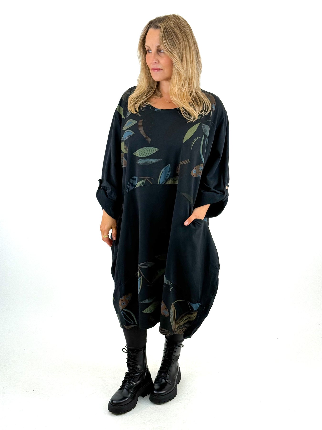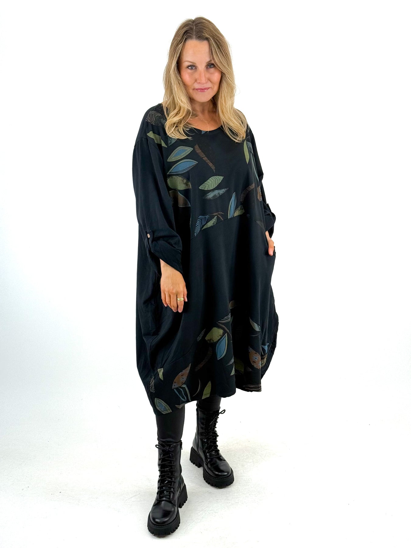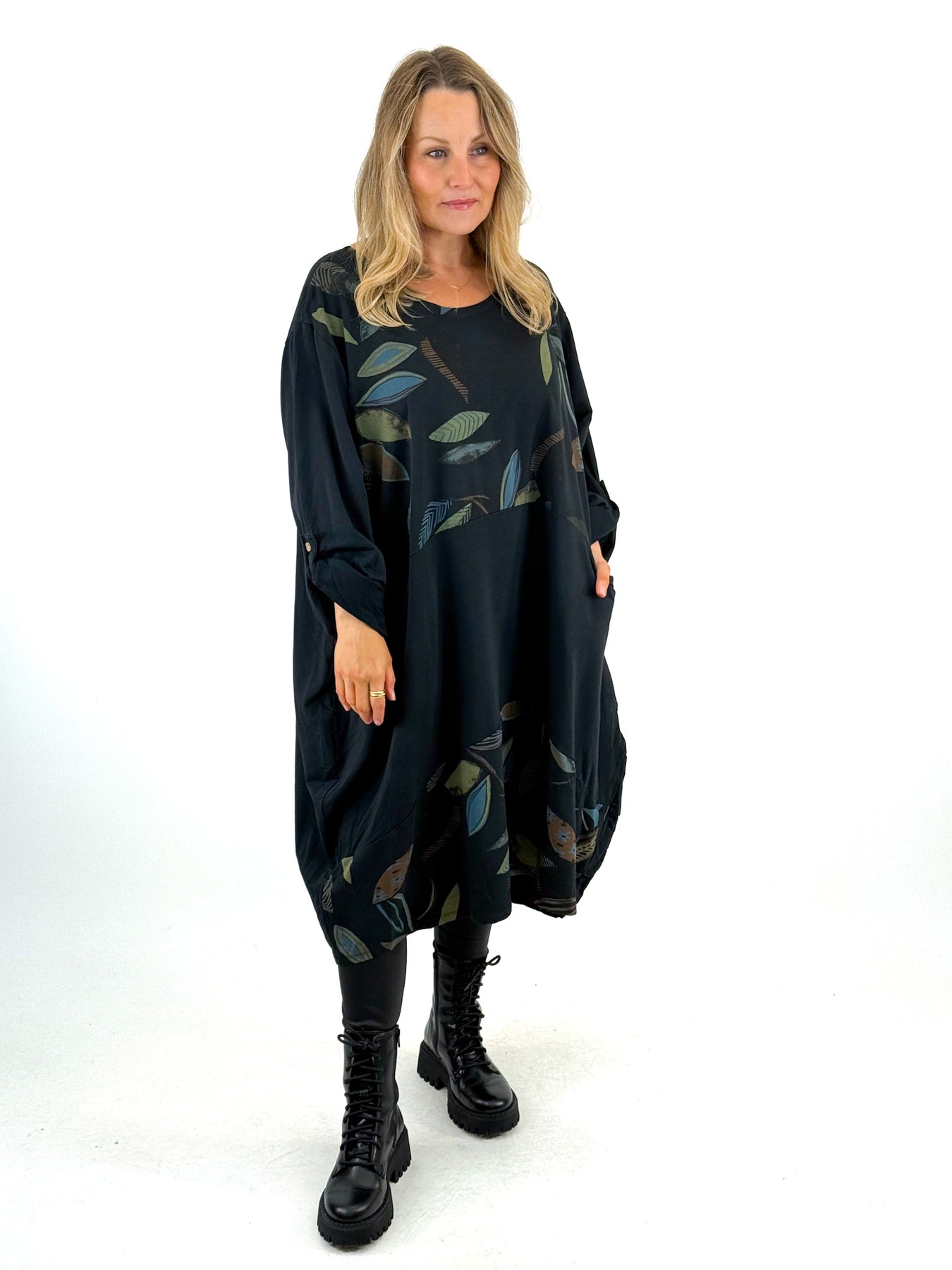 - Made in Italy Lagenlook Winter Leaf Tunic in Black. 9436